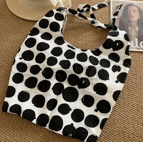 【バッグ】配色 キャンバスショルダーバッグ 斜めがけ 韓国風 ドット柄 大容量 カジュアルバッグ