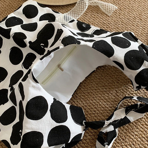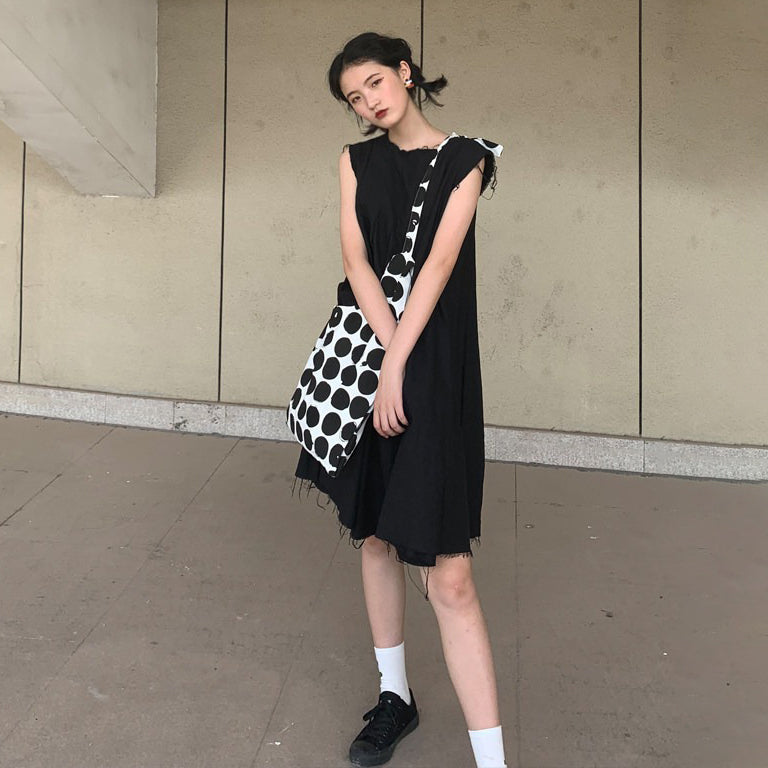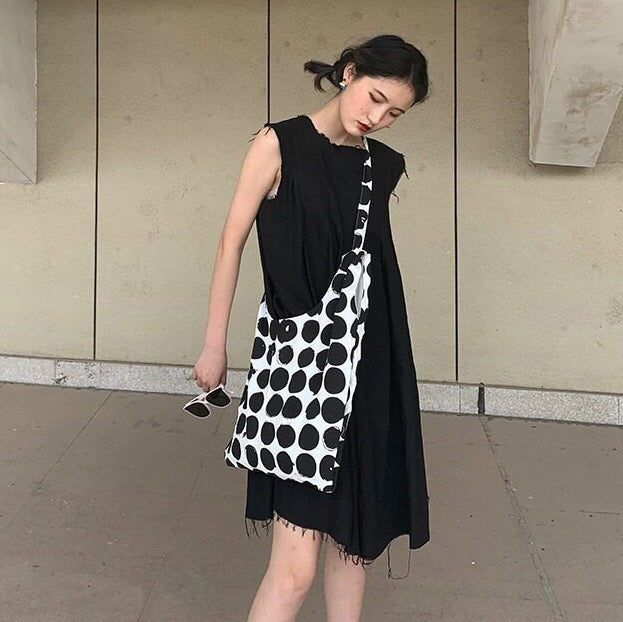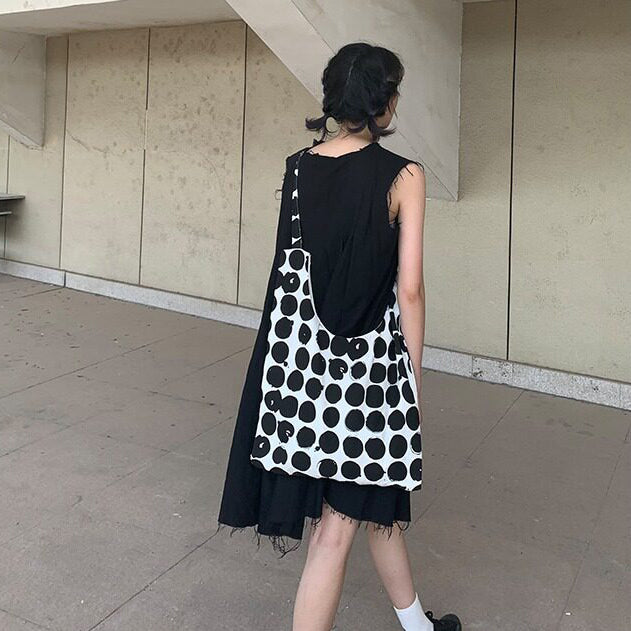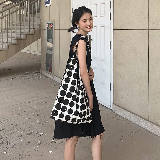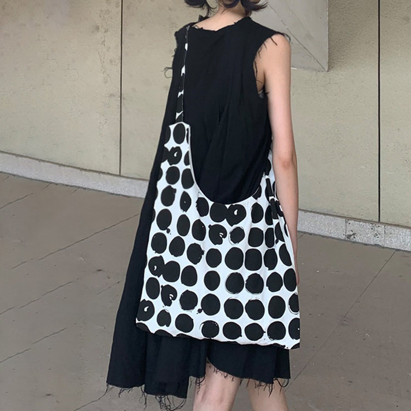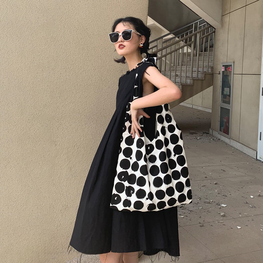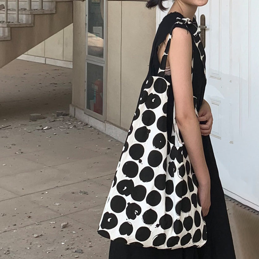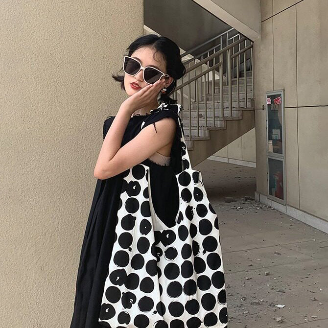 【商品名】【バッグ】配色 キャンバスショルダーバッグ 斜めがけ 韓国風 ドット柄 大容量 カジュアルバッグ