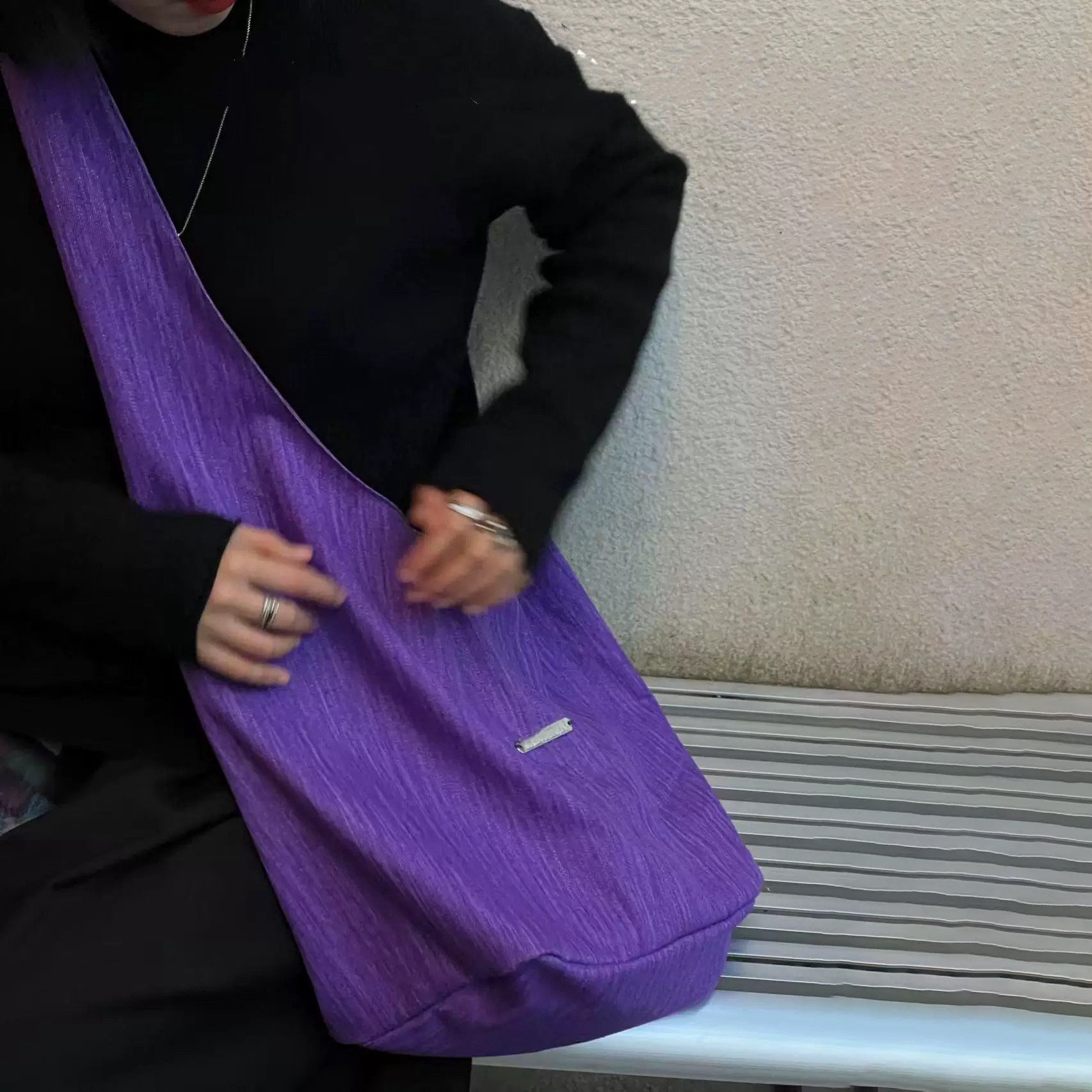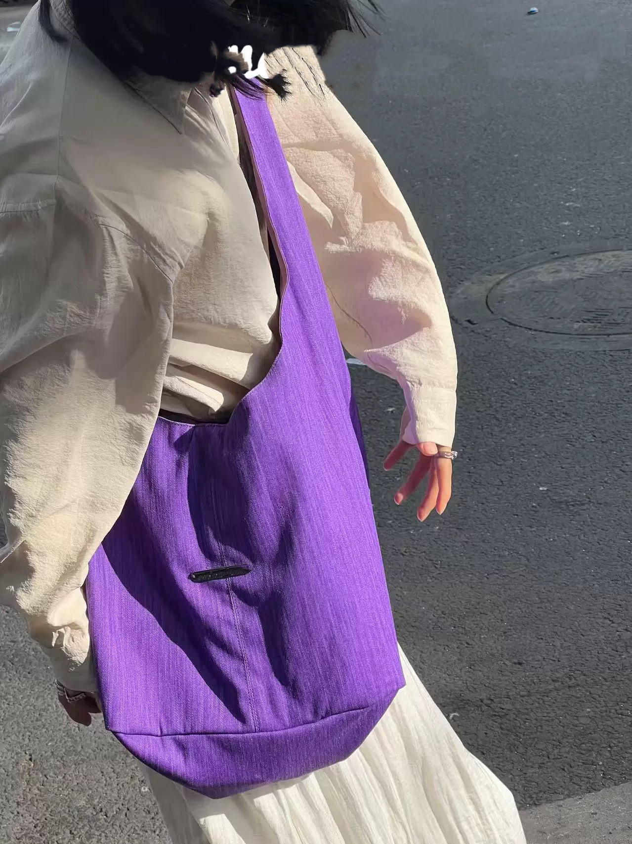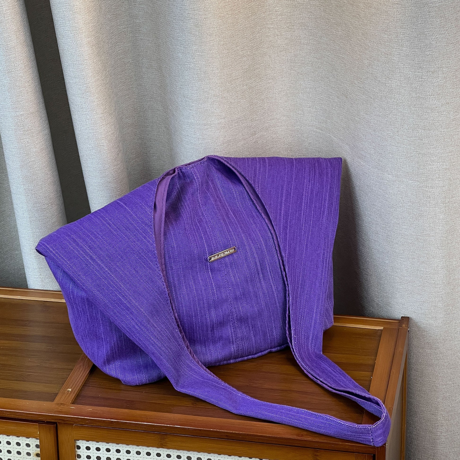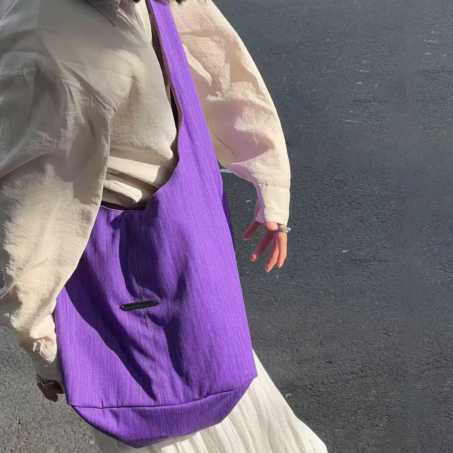 【バッグ】韓国風ゆるシルエット ワンショルダー斜めがけキャンバスバッグ パープルトート 大容量