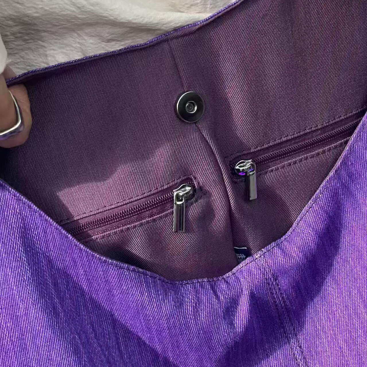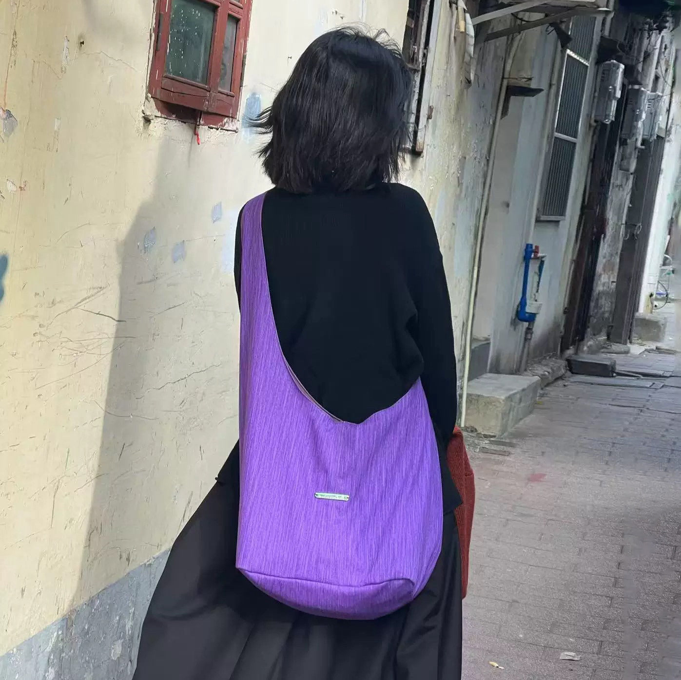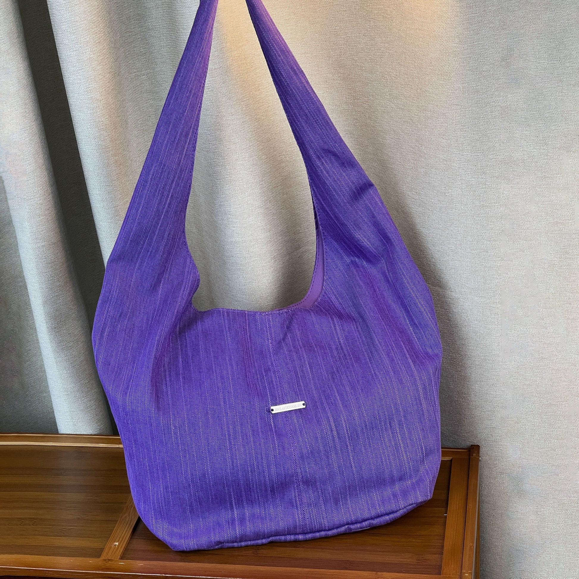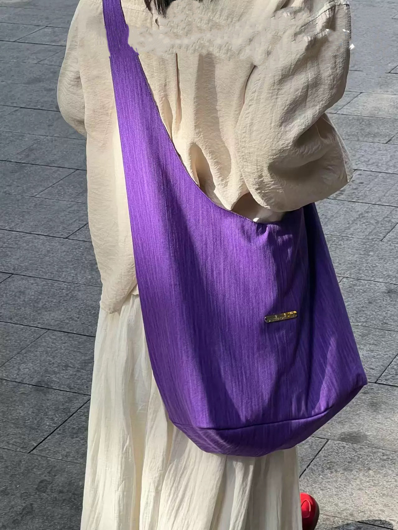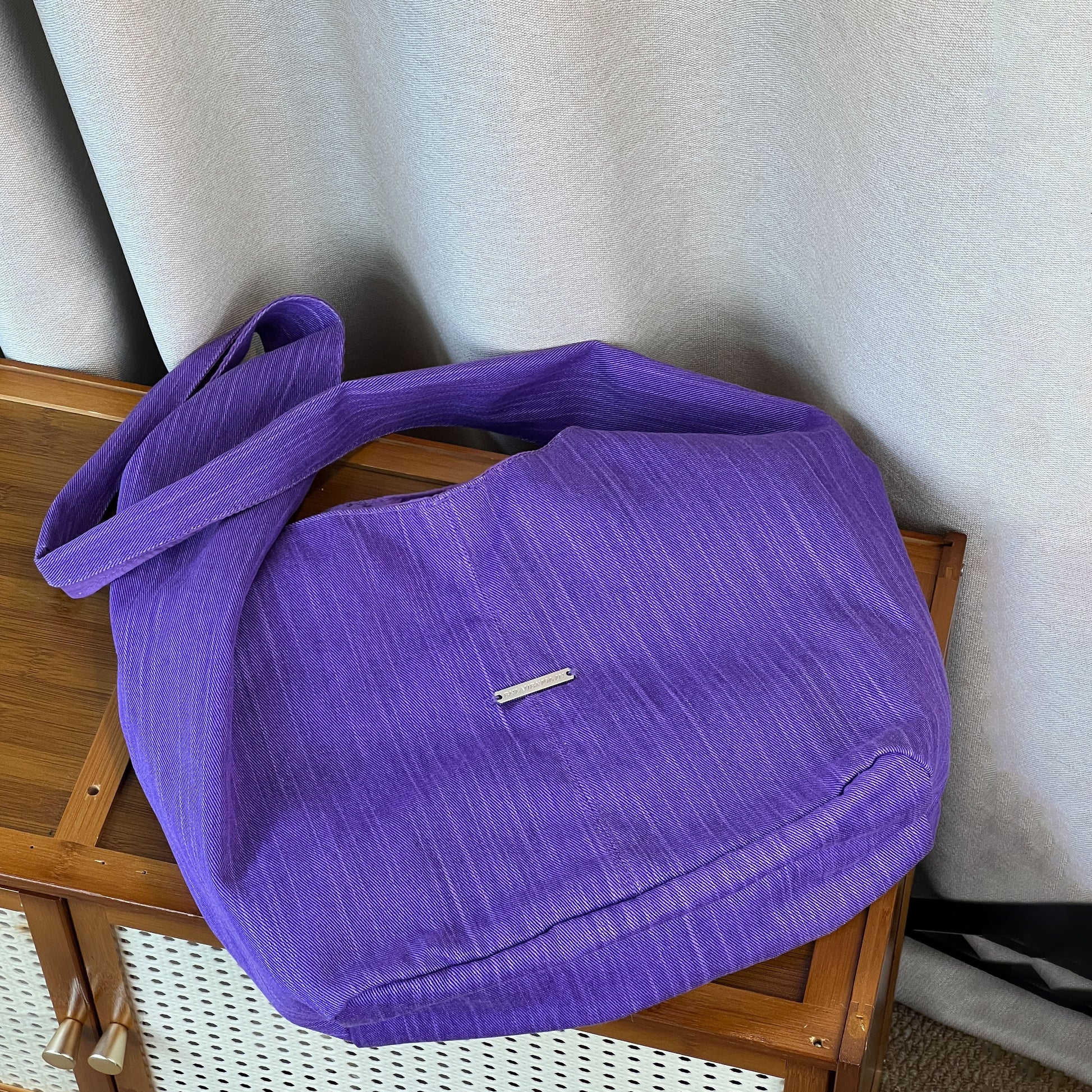 【バッグ】韓国風ゆるシルエット ワンショルダー斜めがけキャンバスバッグ パープルトート 大容量