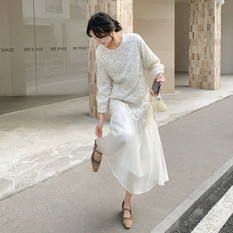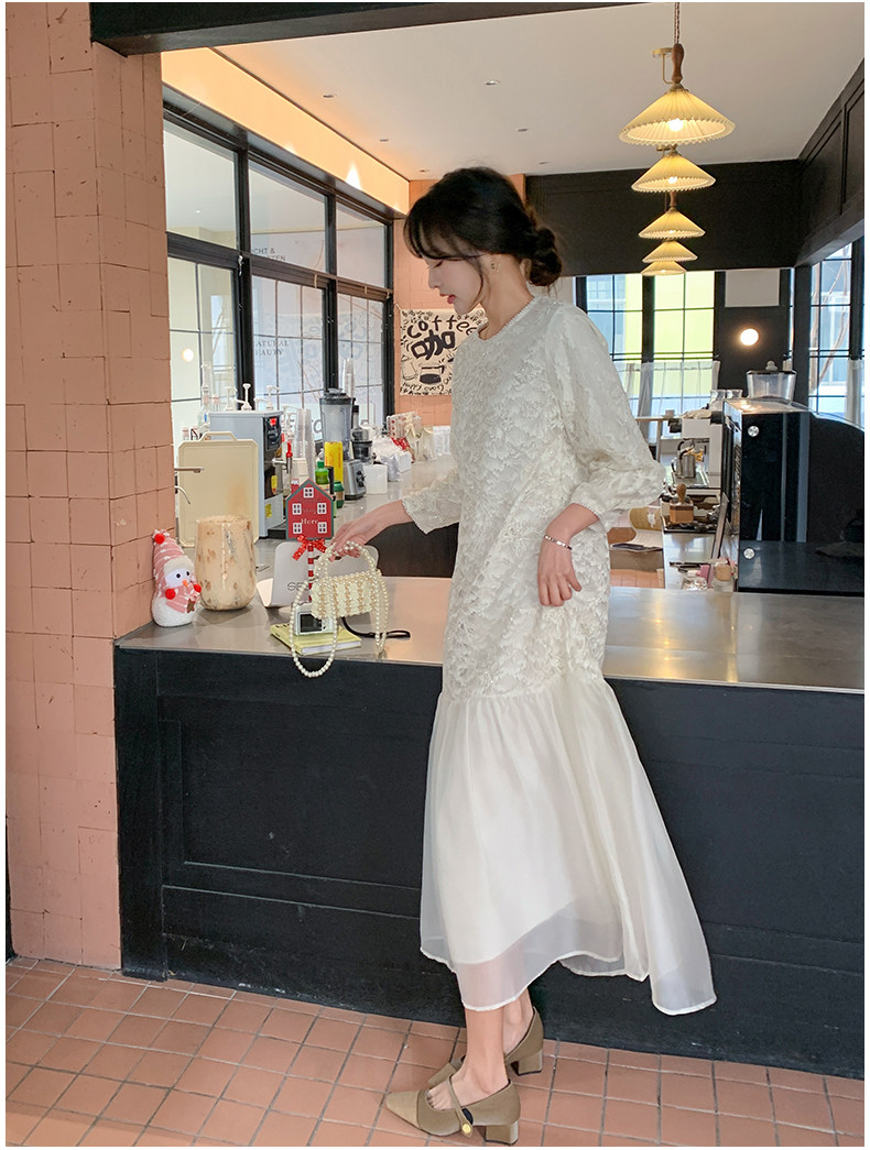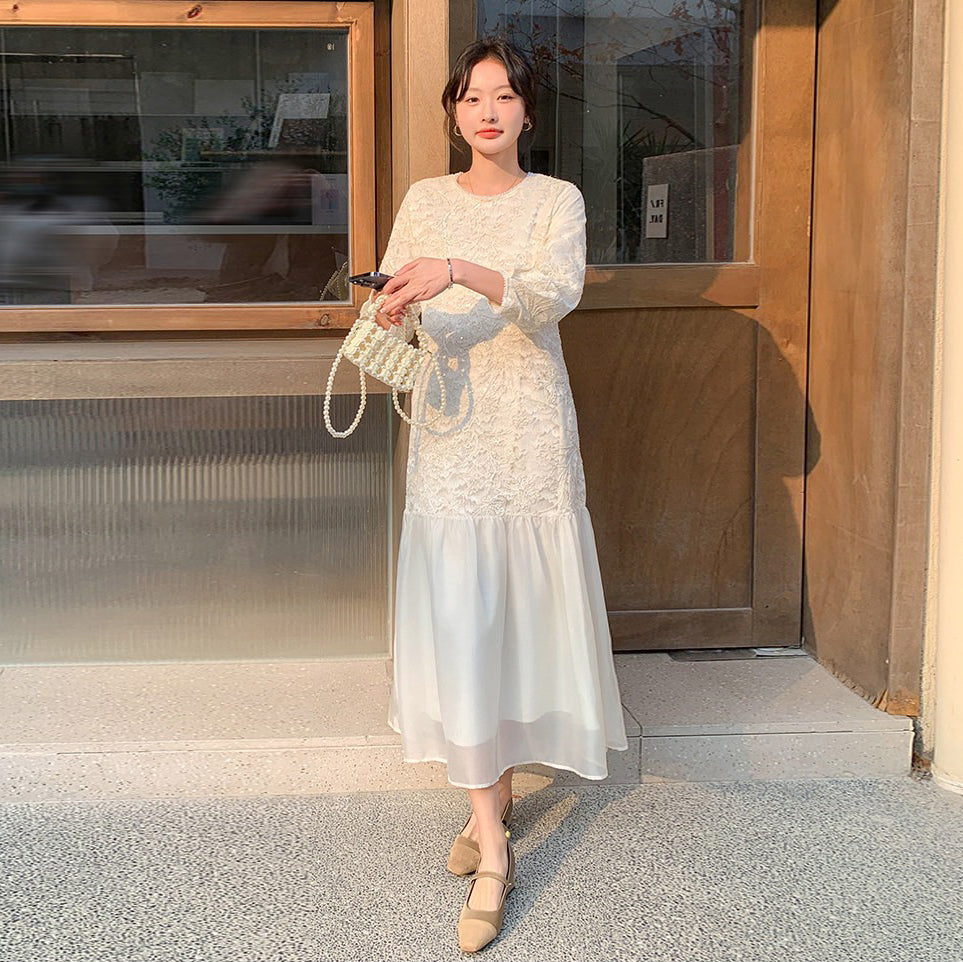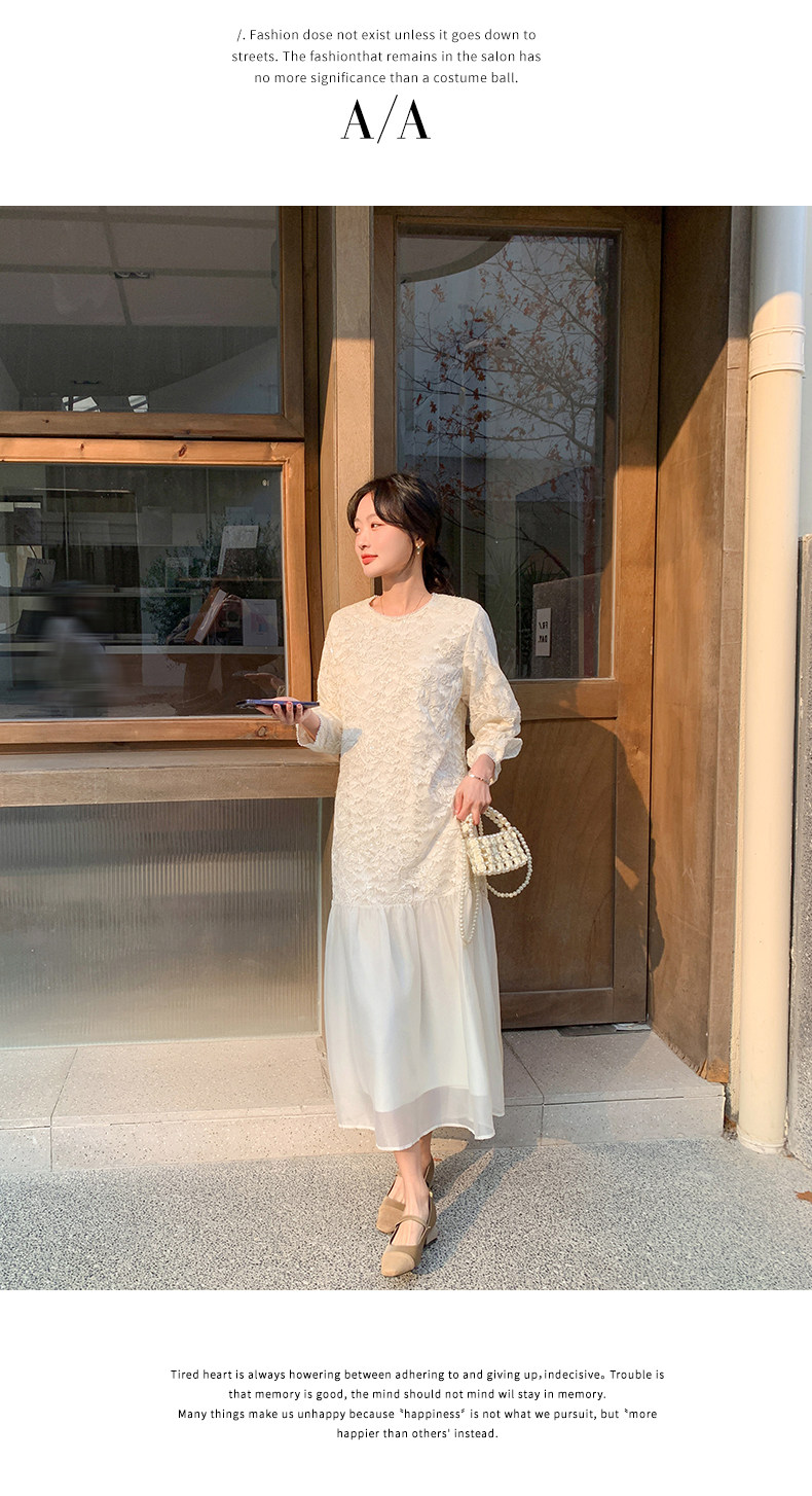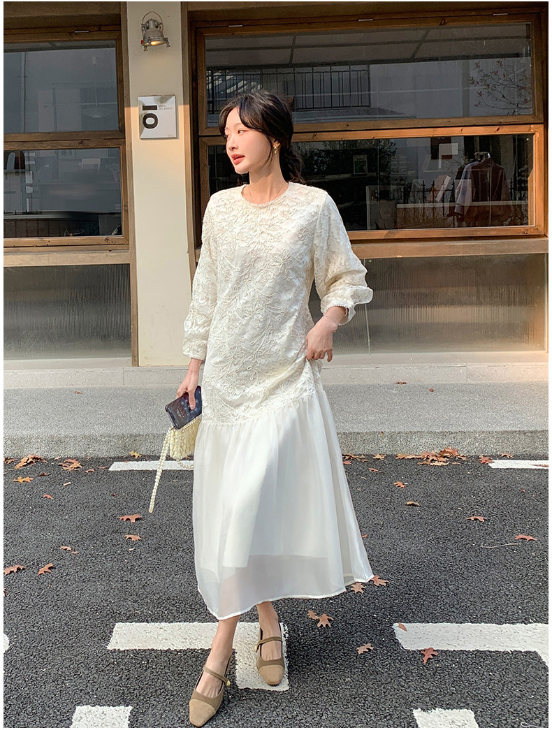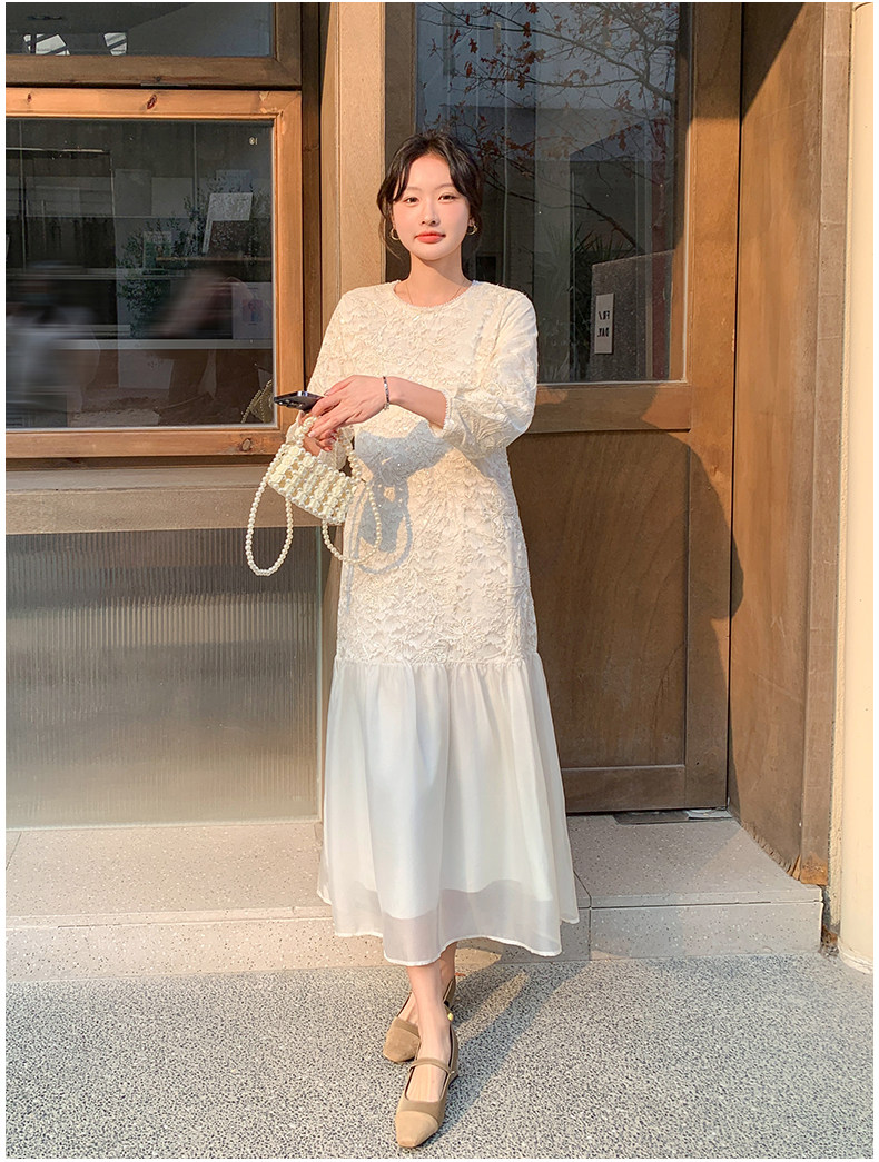 【ワンピース】フレンチ風フェミニンレースワンピース レディース 気品ある軽奢感 花柄長袖ミディドレス【JZシリーズ】