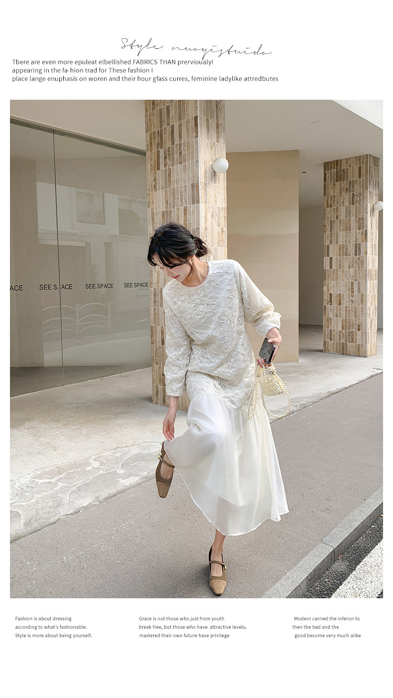 【商品名】【ワンピース】フレンチ風フェミニンレースワンピース レディース 気品ある軽奢感 花柄長袖ミディドレス【JZシリーズ】