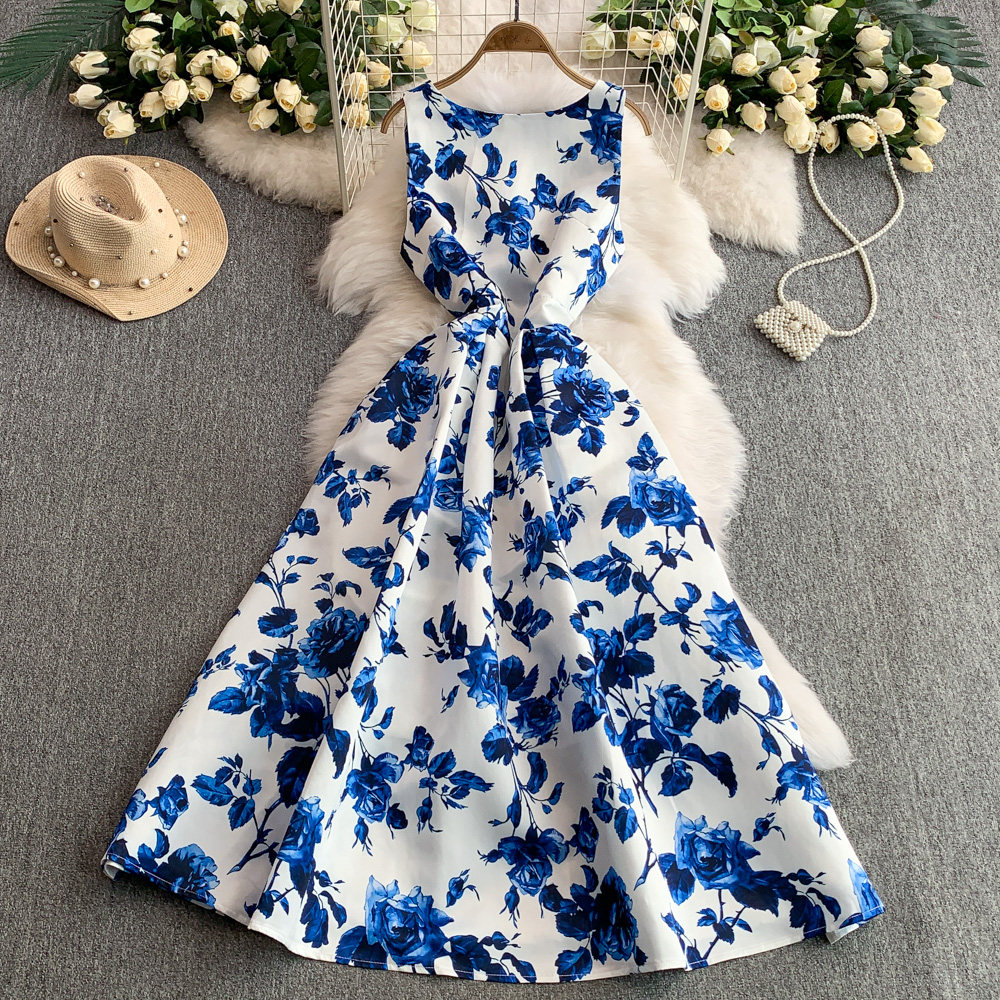 ✨パーティー・お呼ばれ【ワンピース】 花柄ノースリーブワンピース ウエストマーク フレアロングドレス【SHシリーズ】