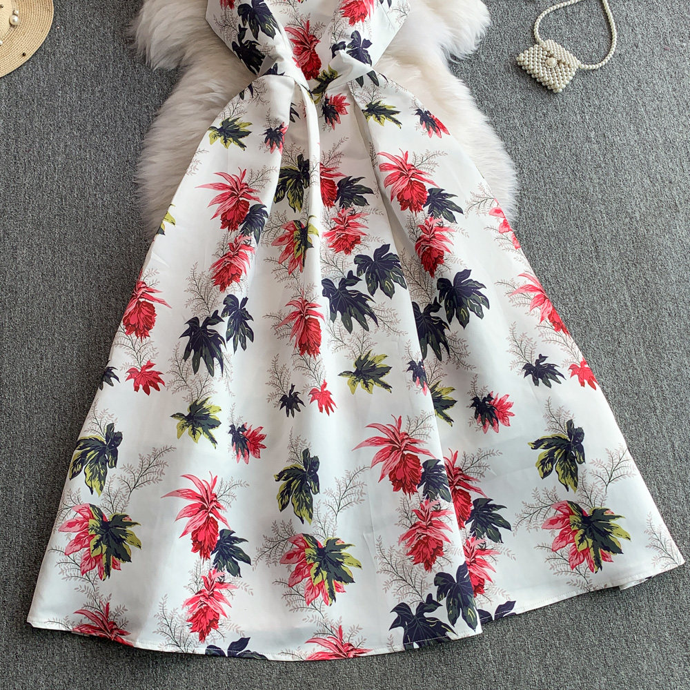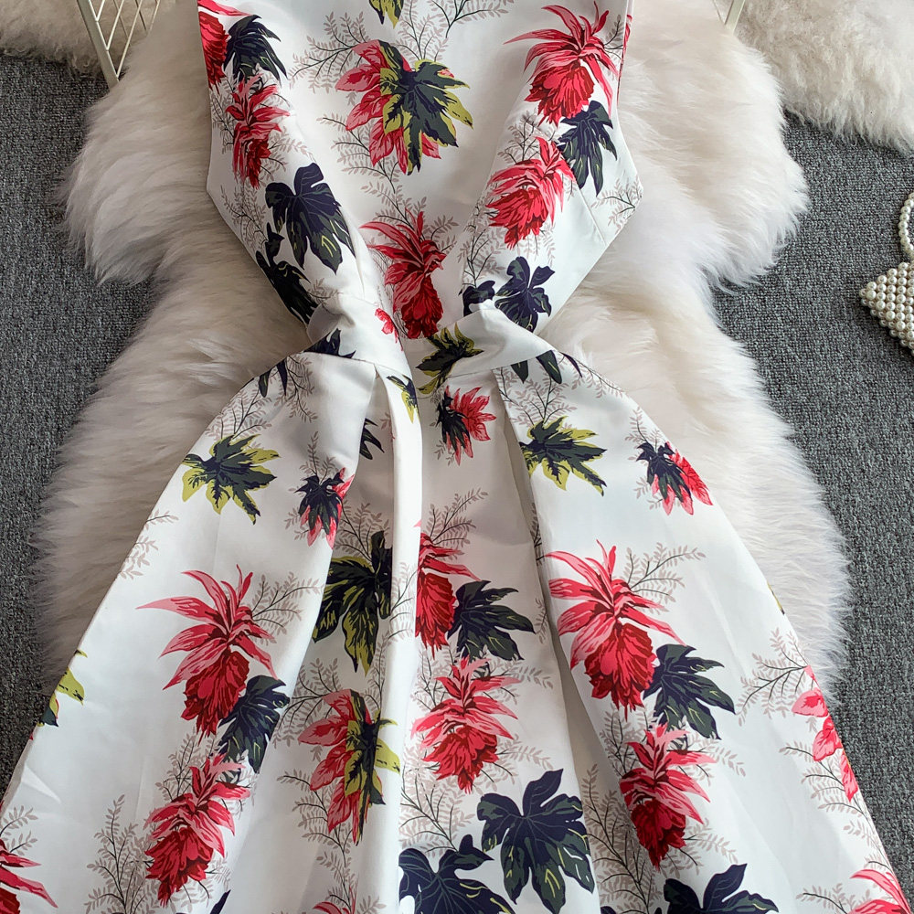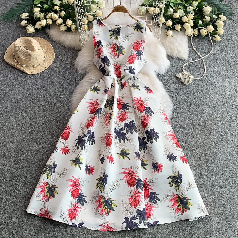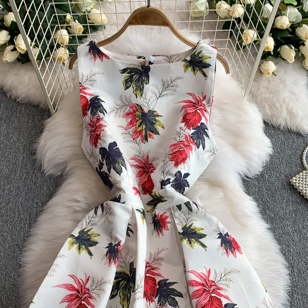 ✨パーティー・お呼ばれ【ワンピース】 花柄華やかプリント ノースリーブワンピース ウエストマーク Aラインロングドレス【SHシリーズ】