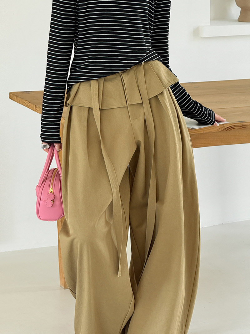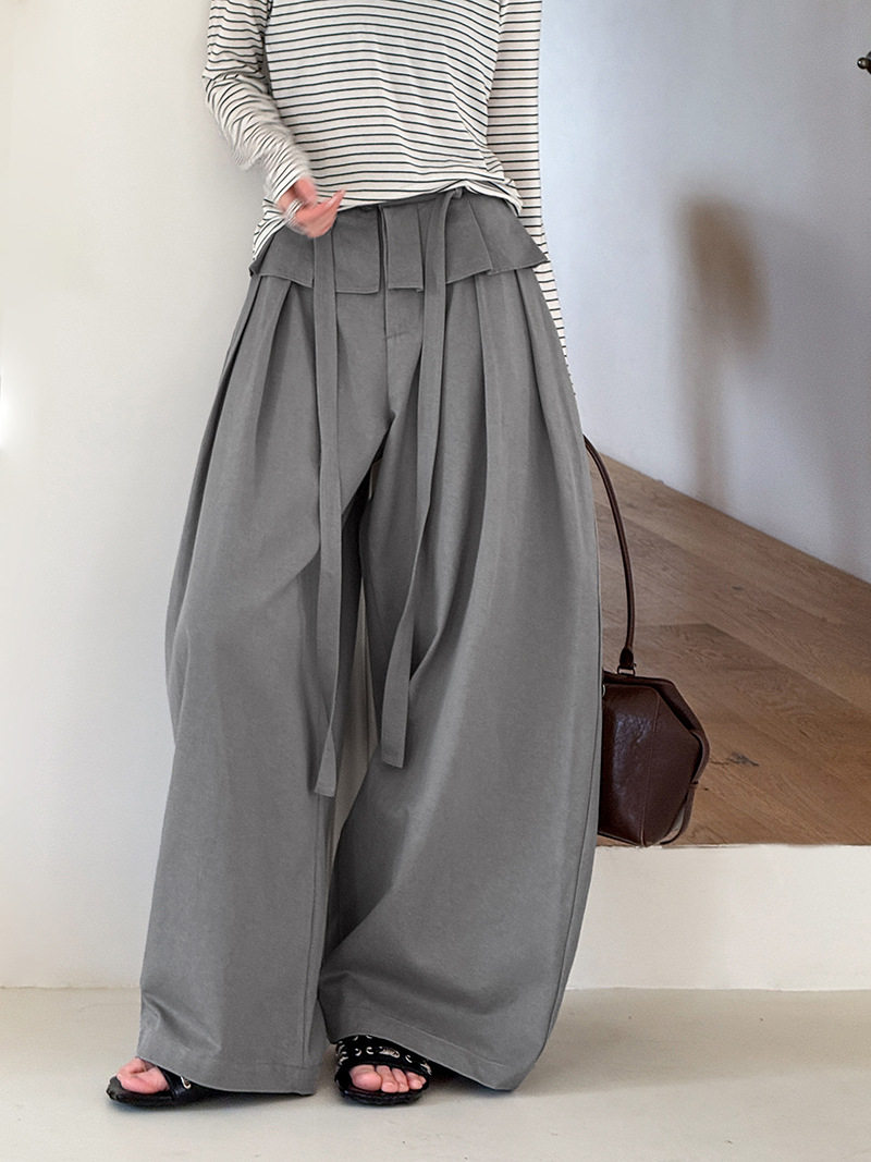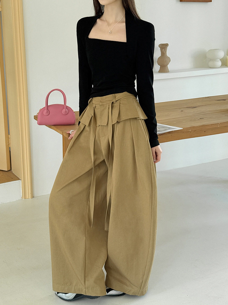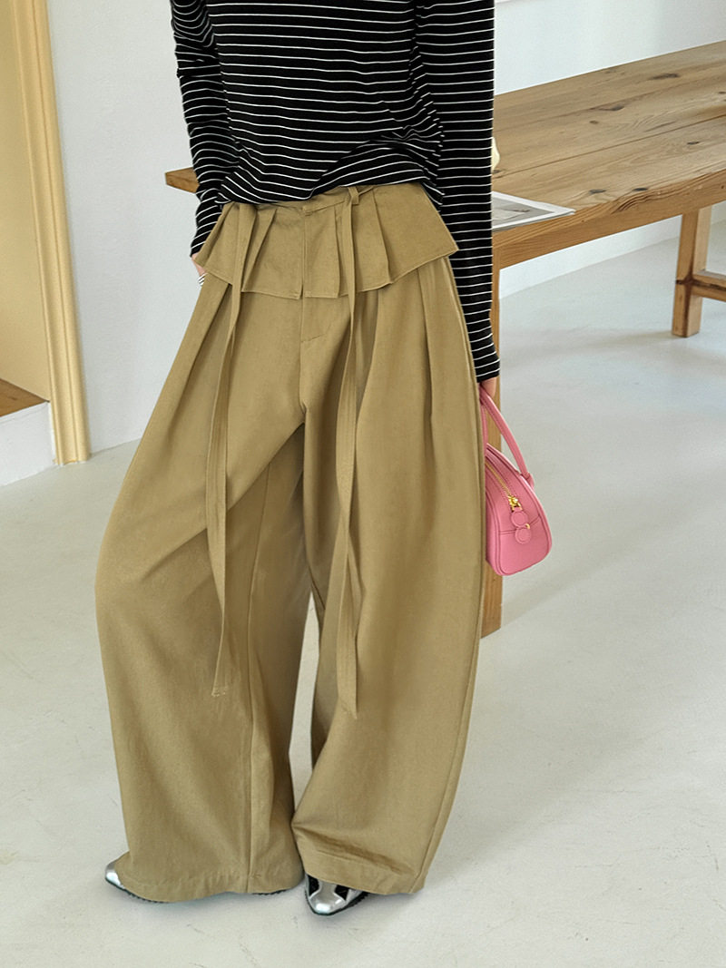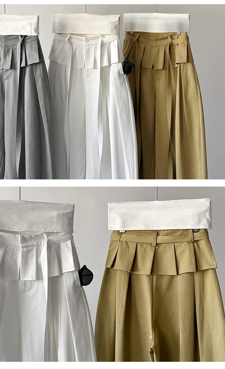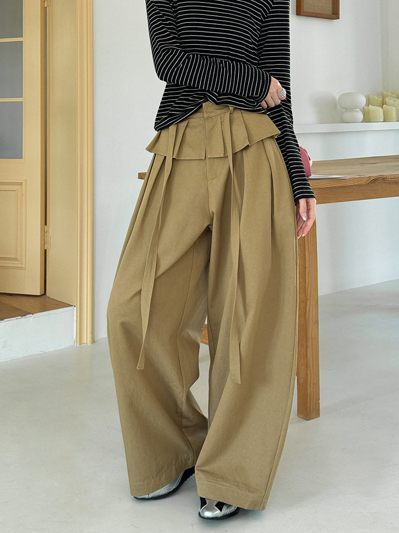 【商品名】【ボトムス】デザイン感 フェイクレイヤード レース切替 ハイウエストワイドパンツ レディース 春新作 ゆったり カジュアルスラックス【JZシリーズ】