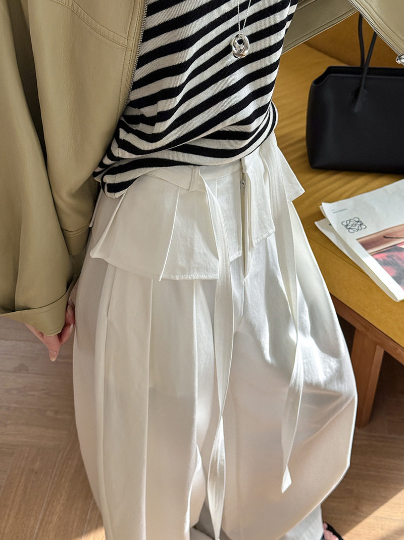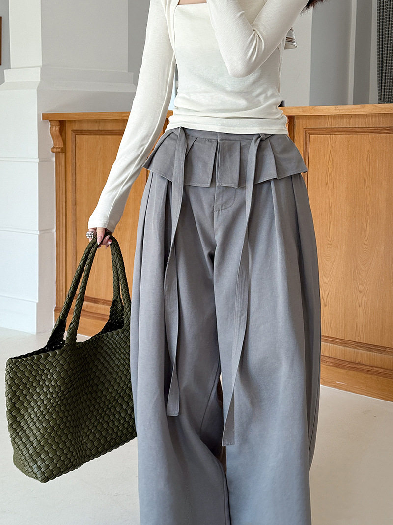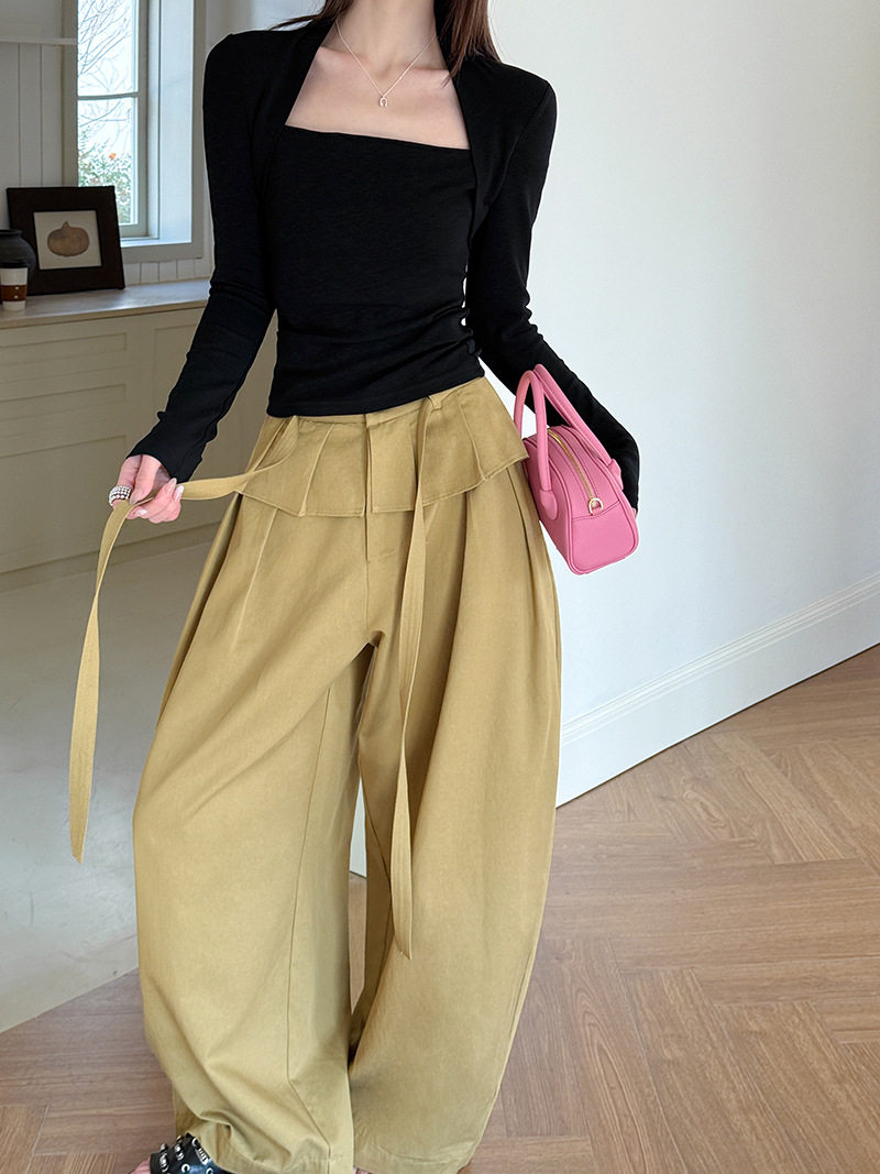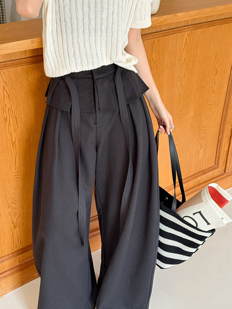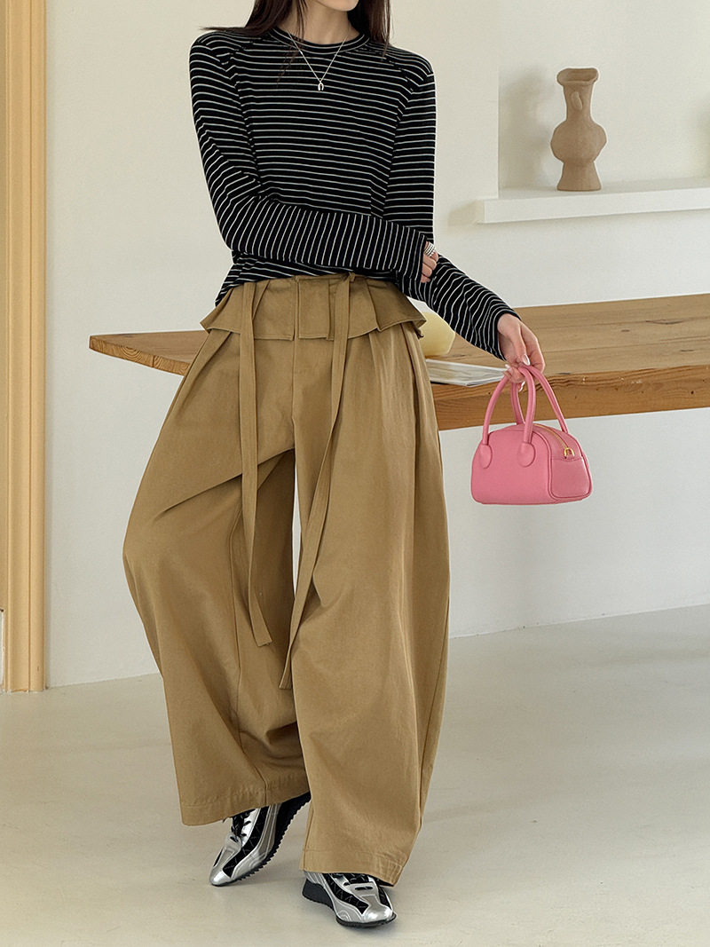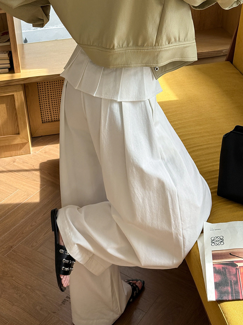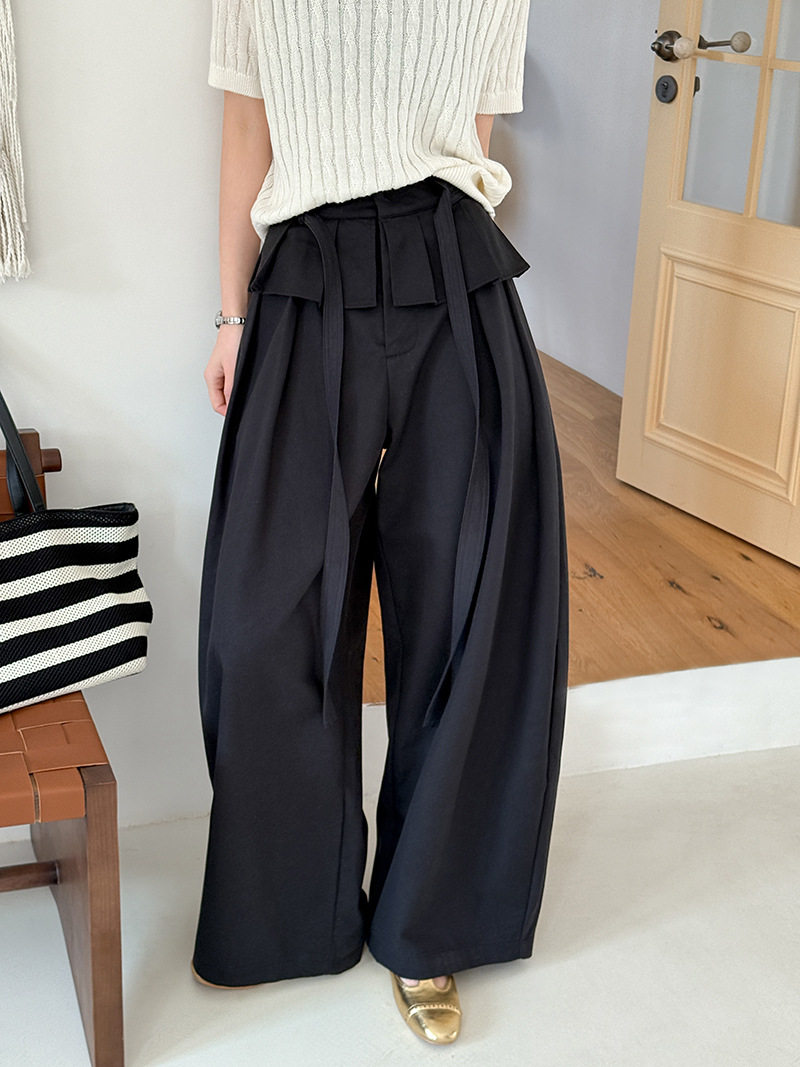 【商品名】【ボトムス】デザイン感 フェイクレイヤード レース切替 ハイウエストワイドパンツ レディース 春新作 ゆったり カジュアルスラックス【JZシリーズ】