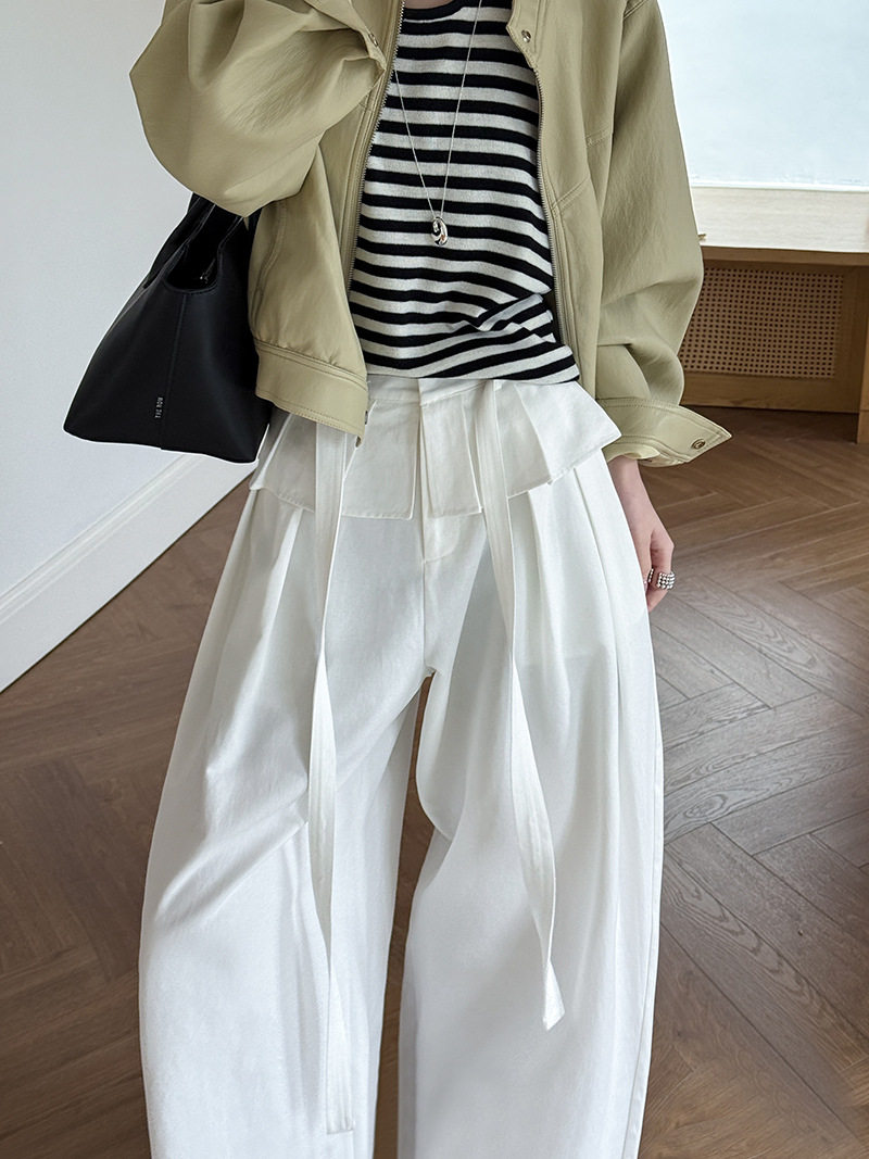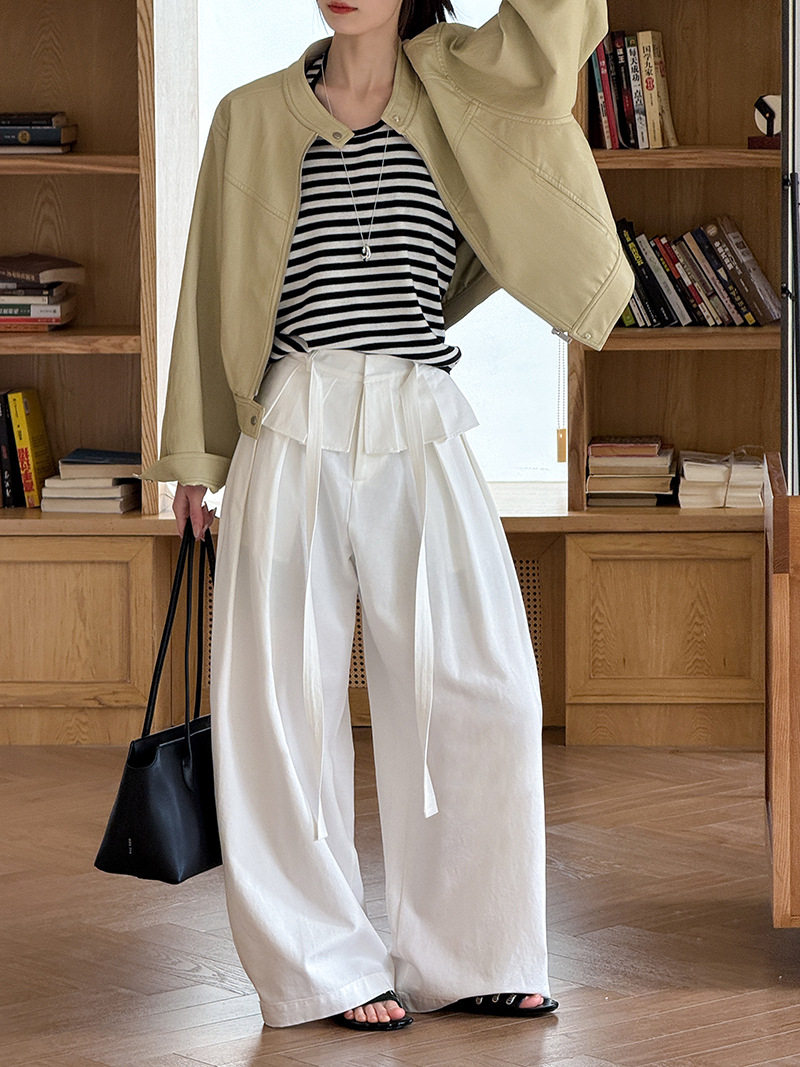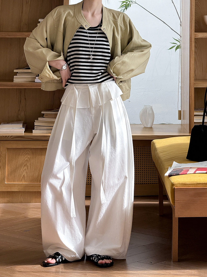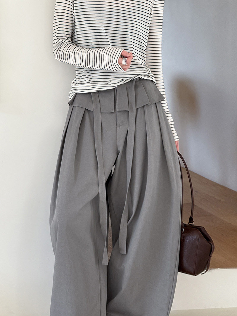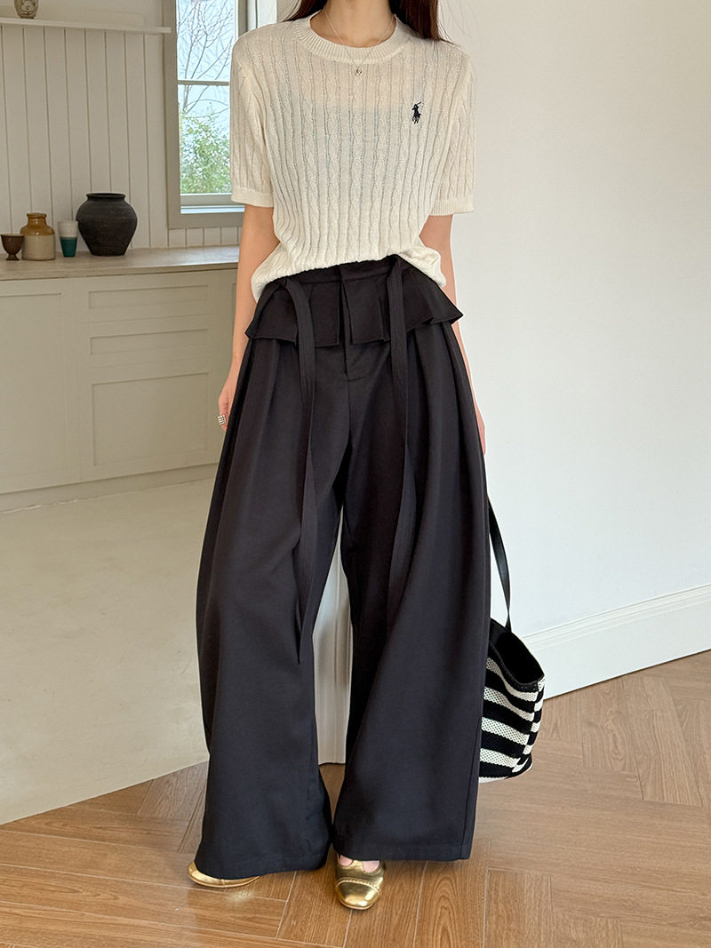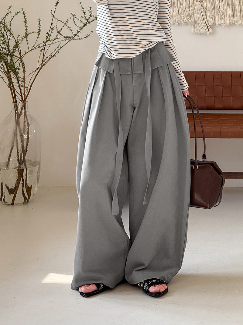 【商品名】【ボトムス】デザイン感 フェイクレイヤード レース切替 ハイウエストワイドパンツ レディース 春新作 ゆったり カジュアルスラックス【JZシリーズ】