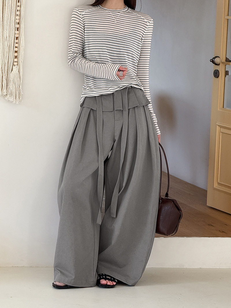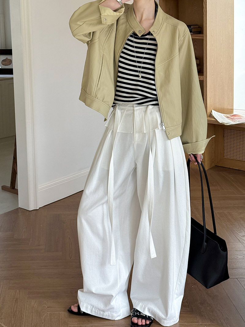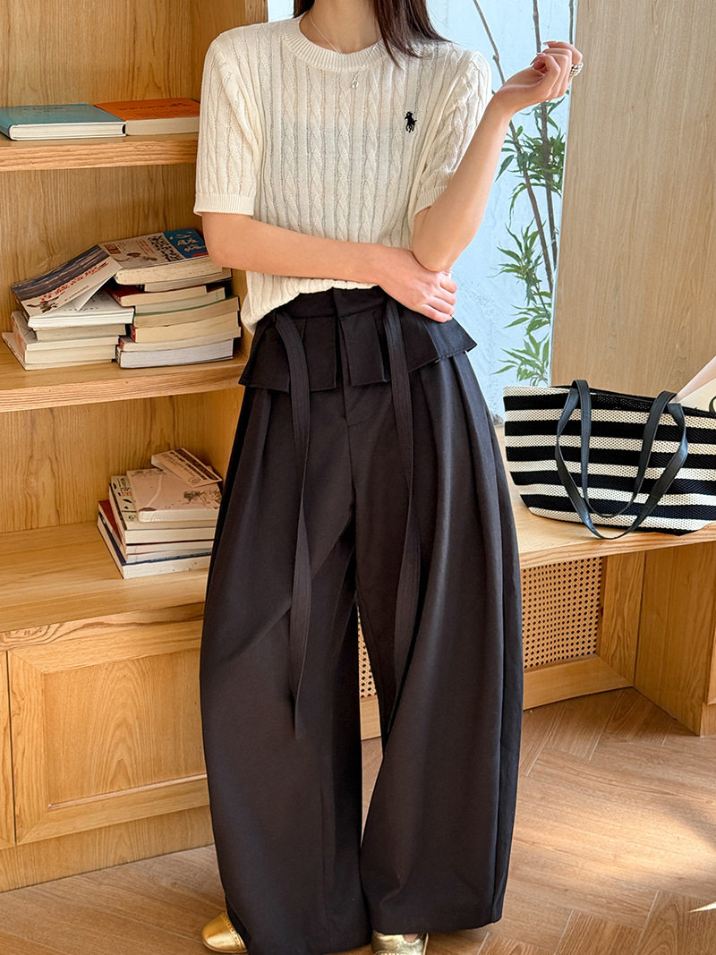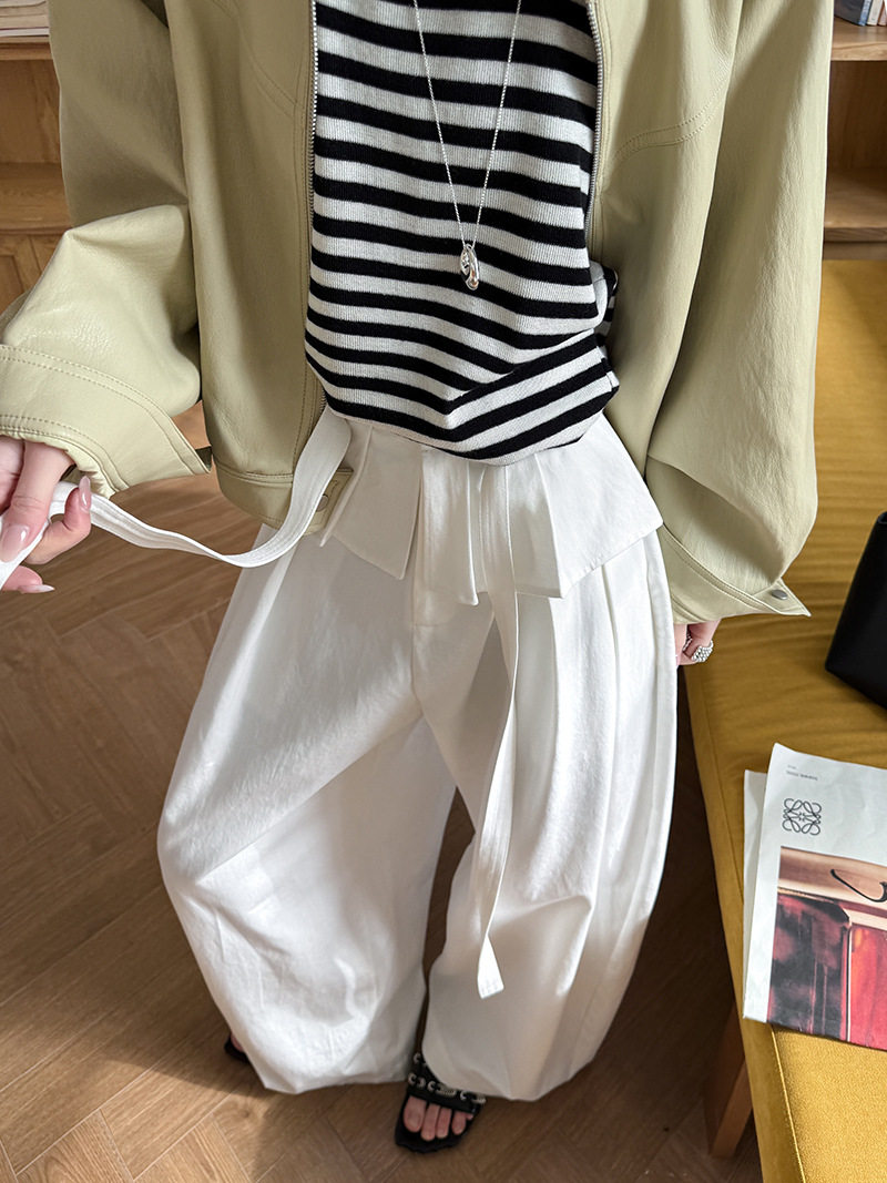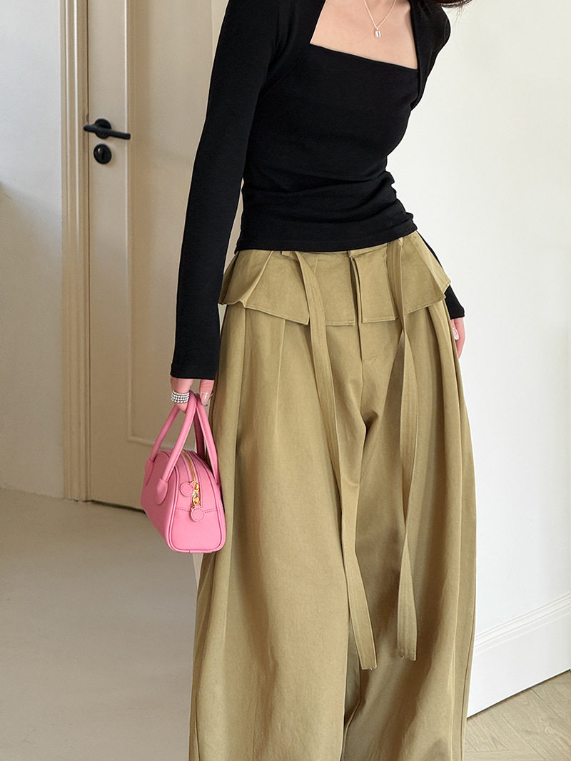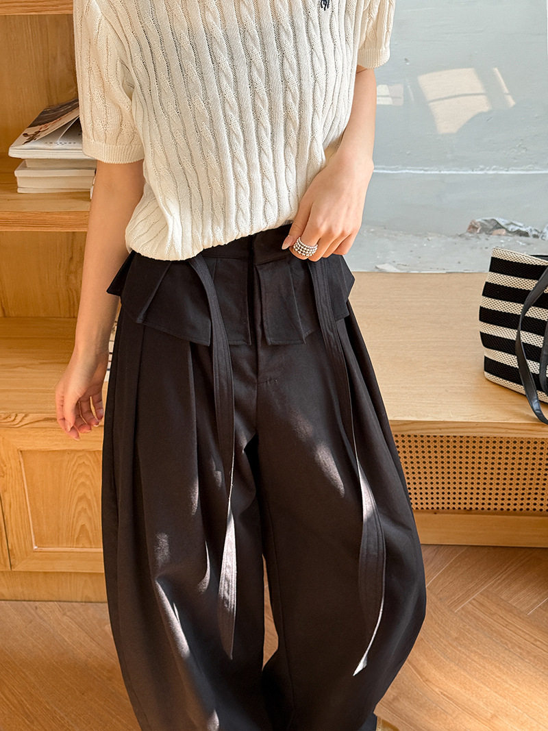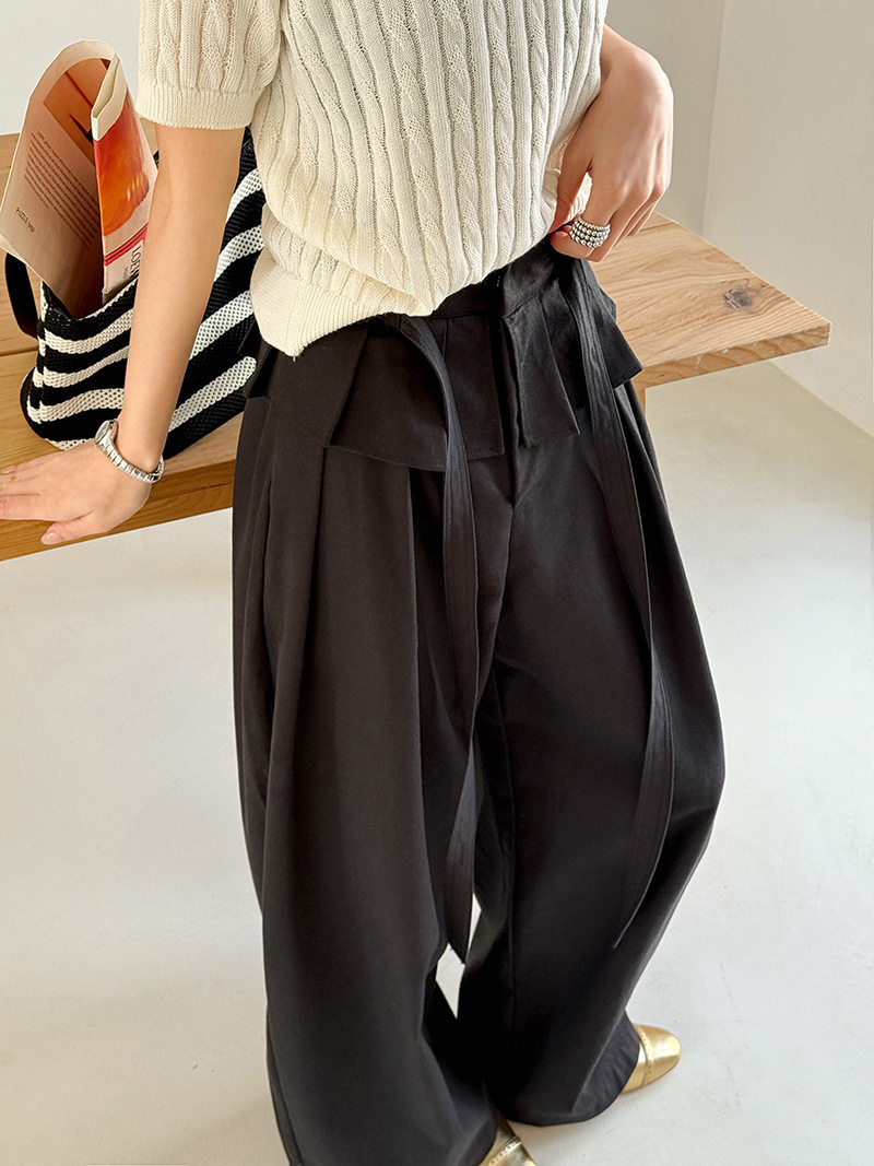 【商品名】【ボトムス】デザイン感 フェイクレイヤード レース切替 ハイウエストワイドパンツ レディース 春新作 ゆったり カジュアルスラックス【JZシリーズ】