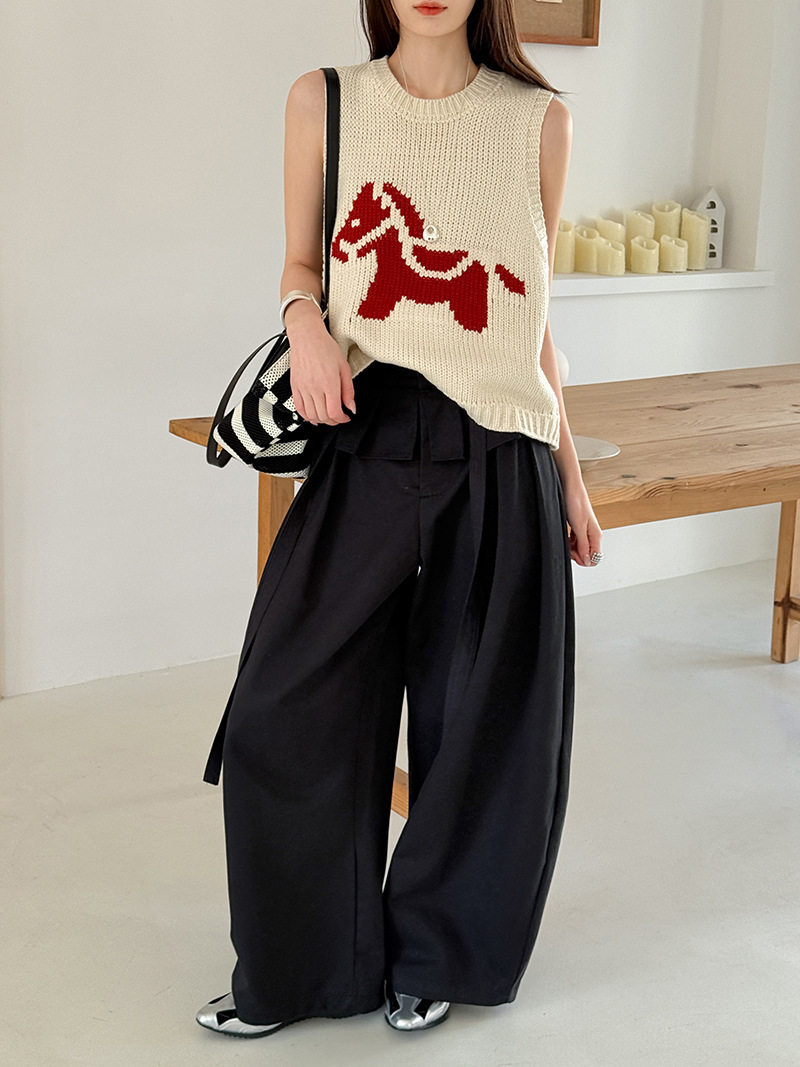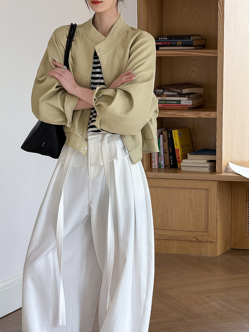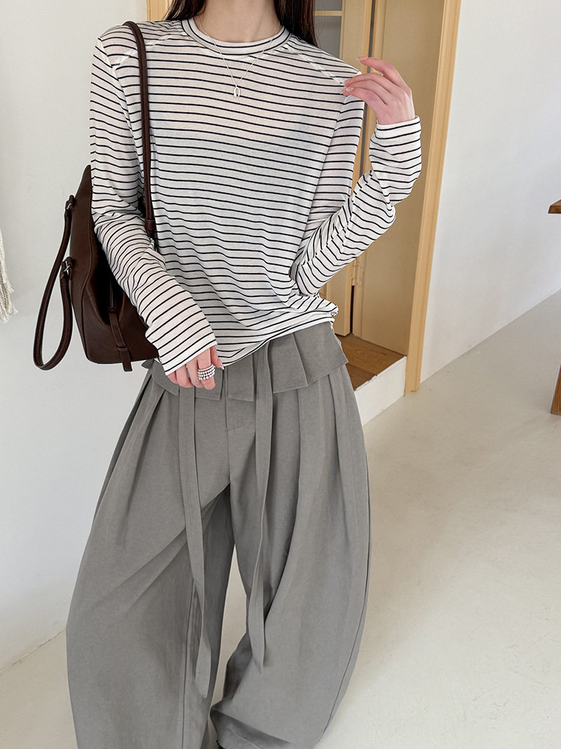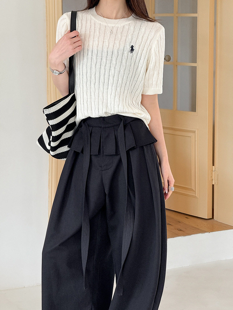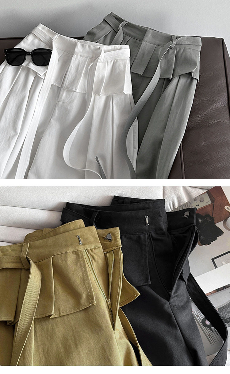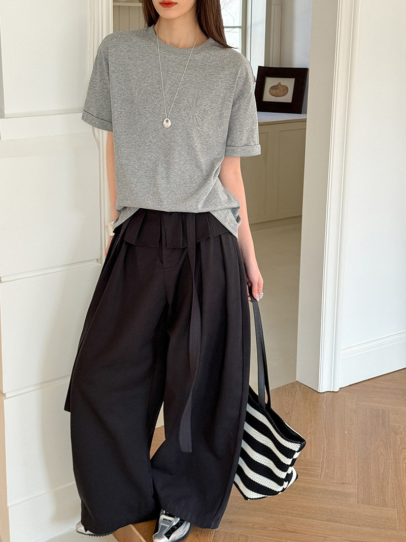 【商品名】【ボトムス】デザイン感 フェイクレイヤード レース切替 ハイウエストワイドパンツ レディース 春新作 ゆったり カジュアルスラックス【JZシリーズ】