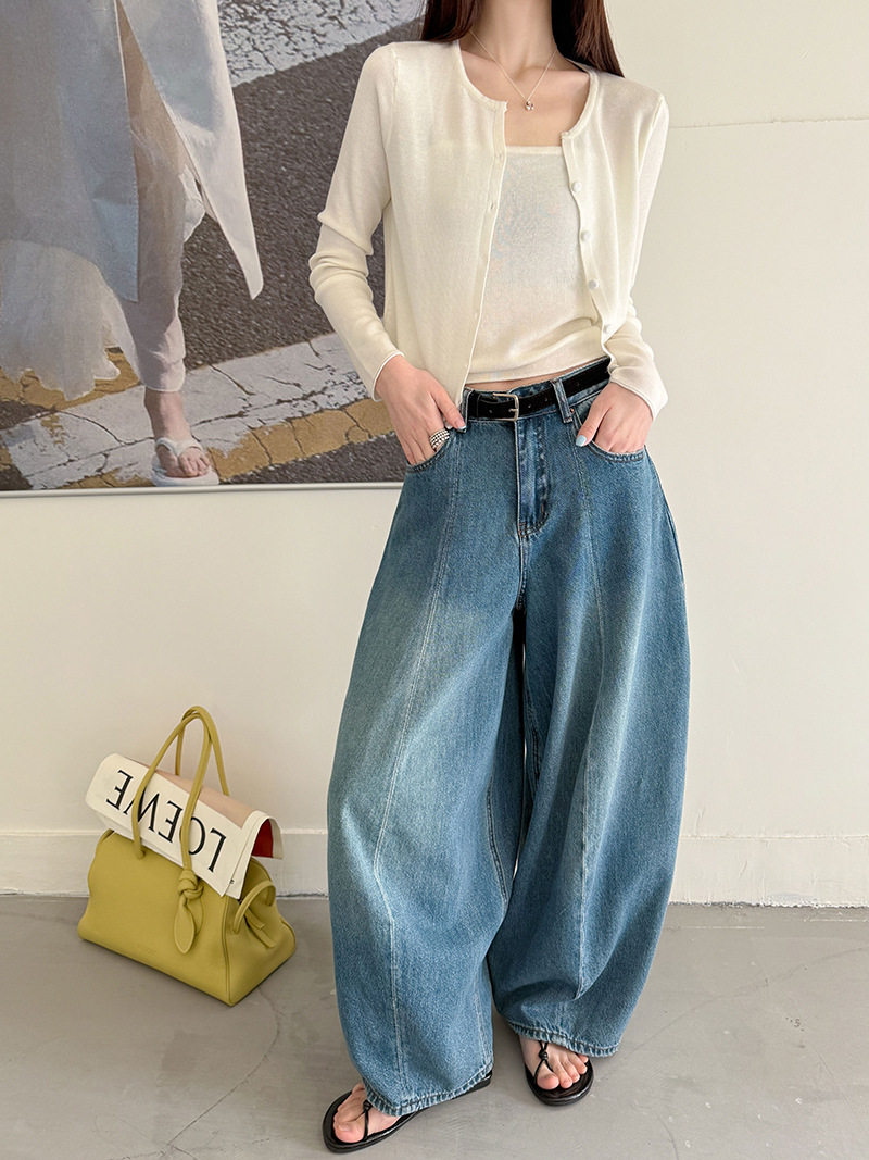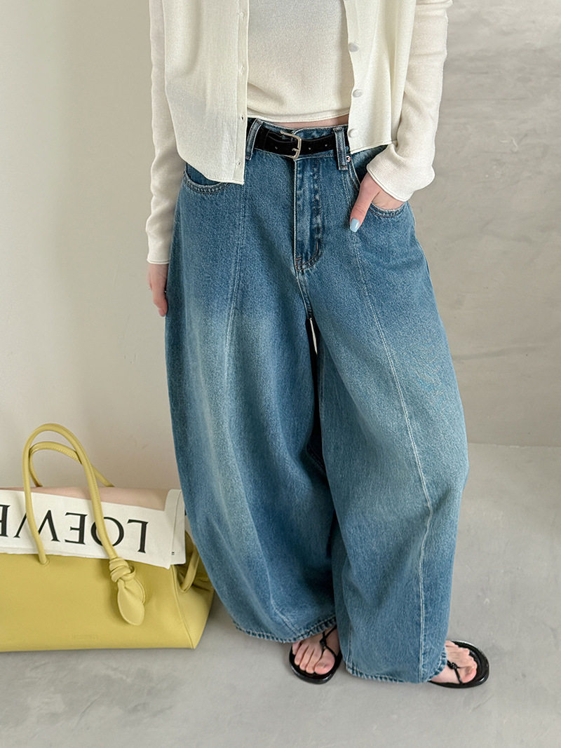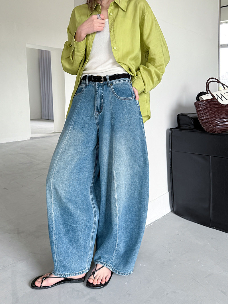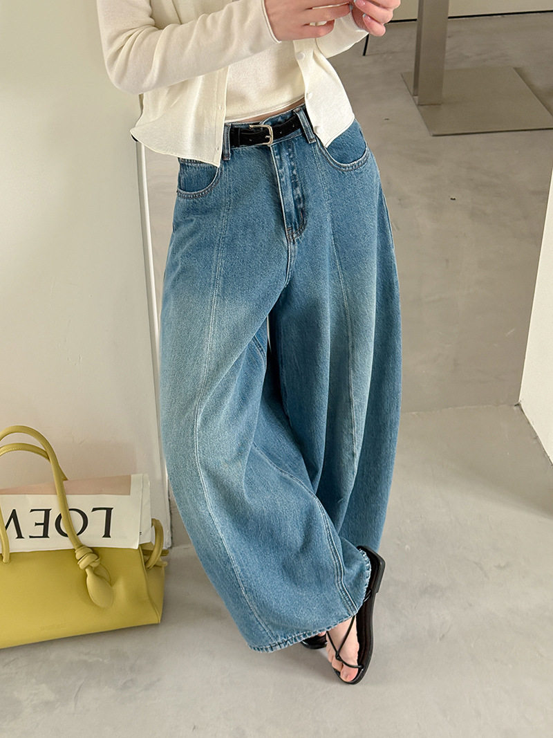 【ボトムス】バルーンデニムパンツ レディース 春新作 ゆったり 体型カバー カジュアル シンプル 無地【JZシリーズ】