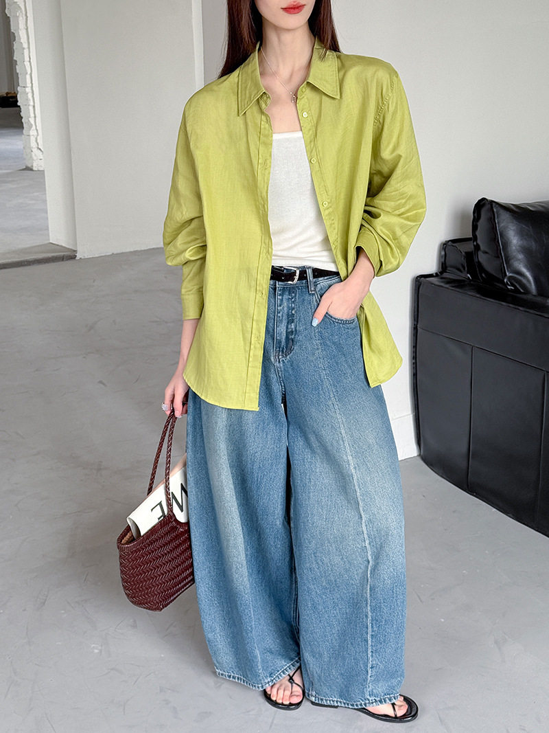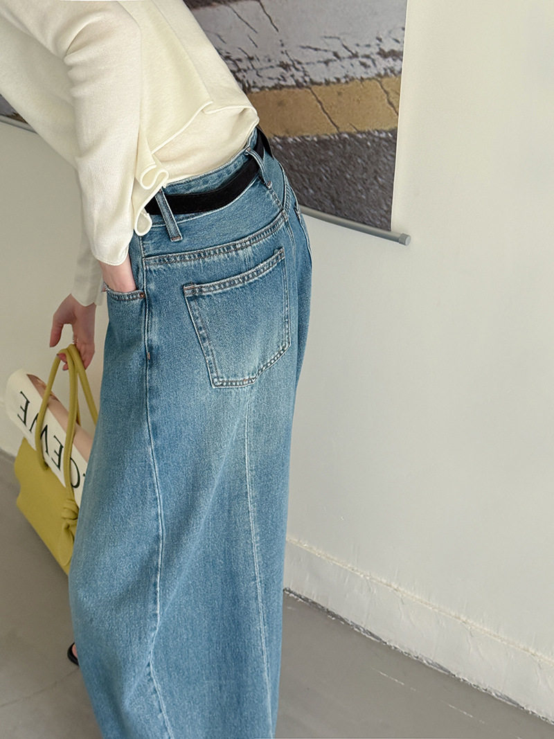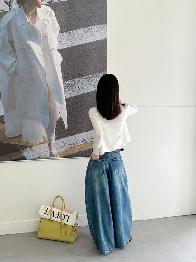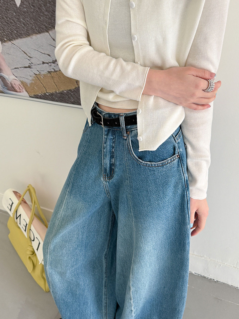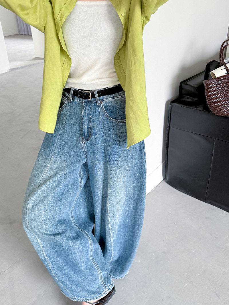 【ボトムス】バルーンデニムパンツ レディース 春新作 ゆったり 体型カバー カジュアル シンプル 無地【JZシリーズ】