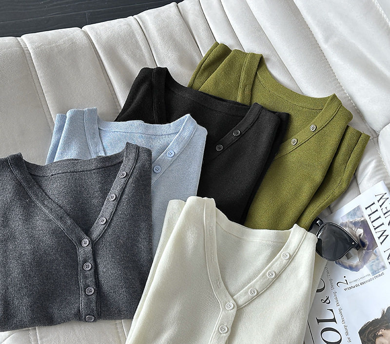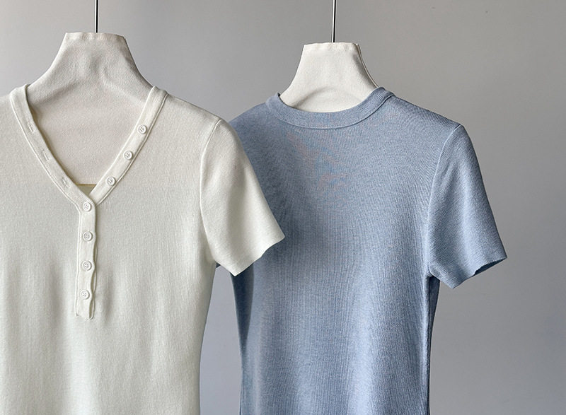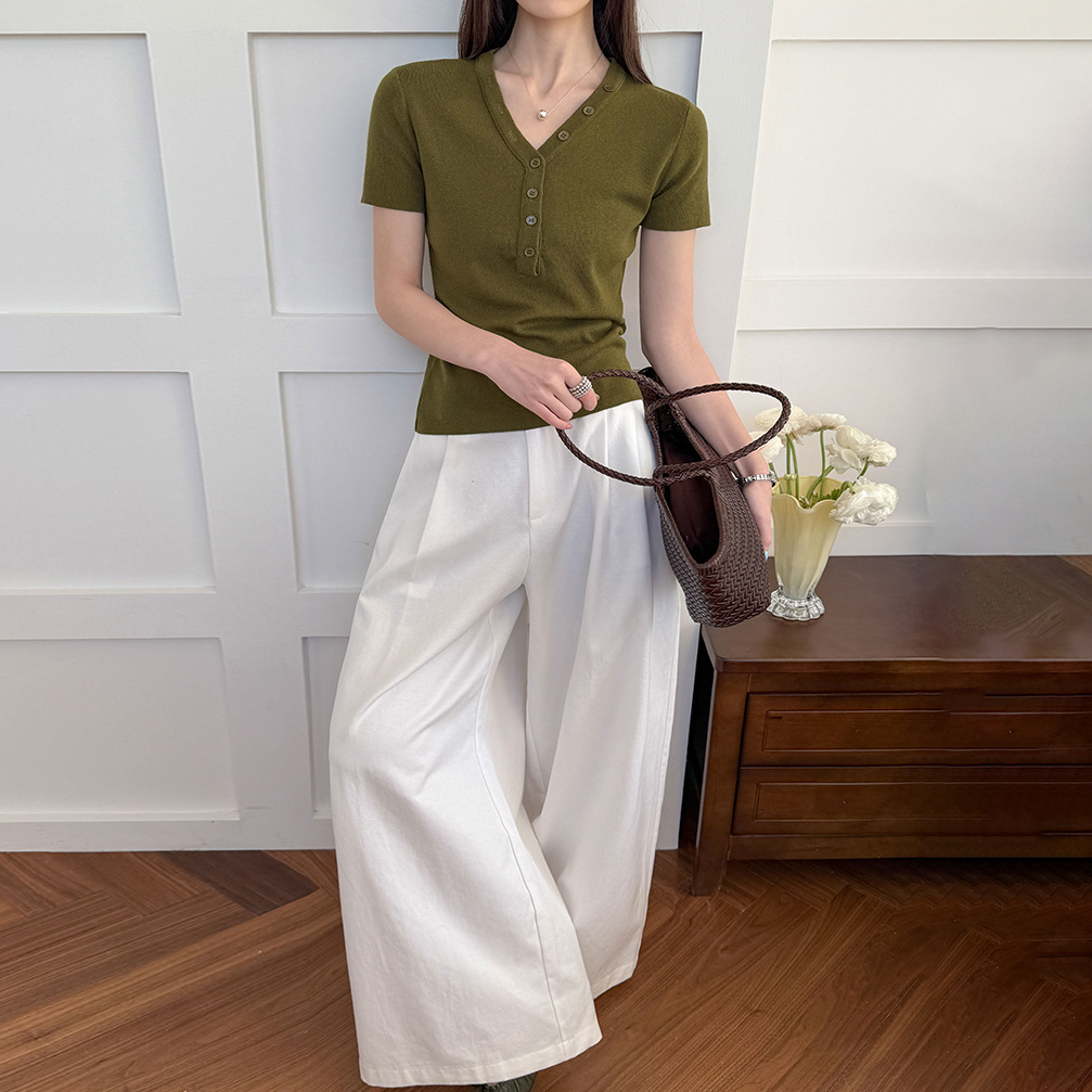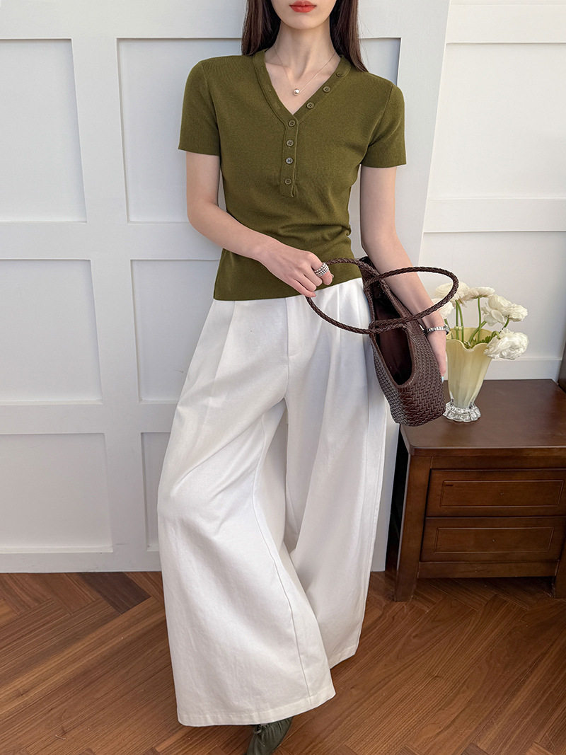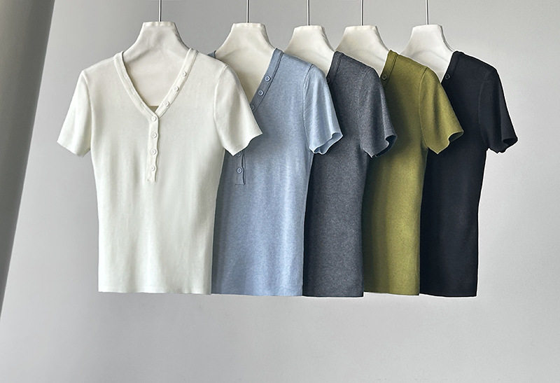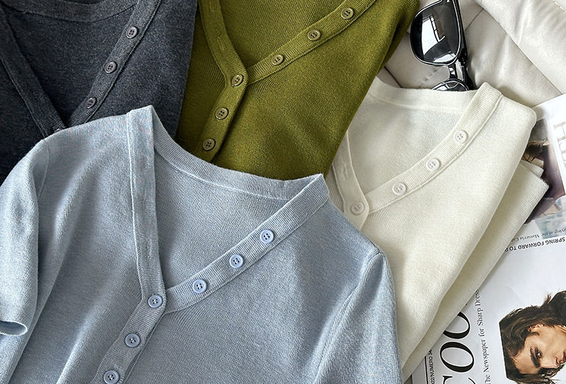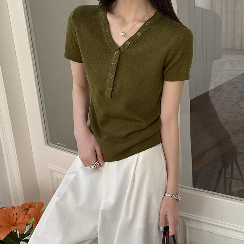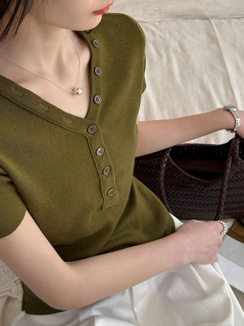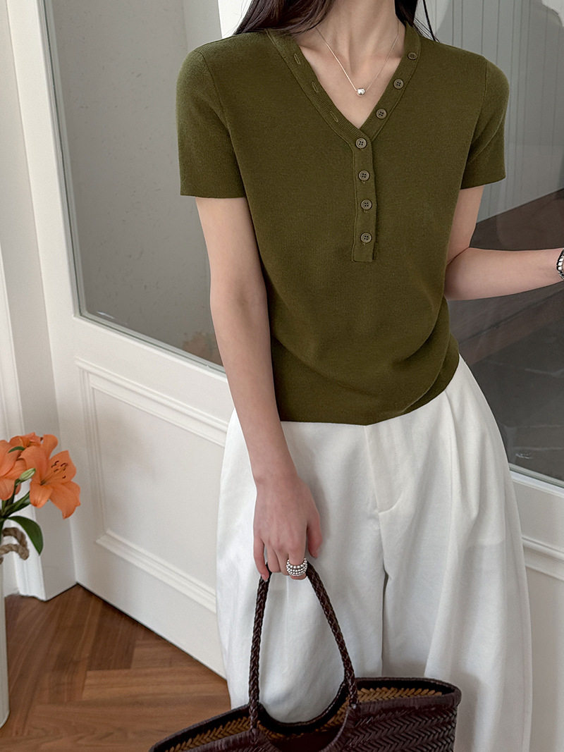 【トップス】Vネック ニットトップス レディース 春新作 半袖 フィット 体型カバー きれいめ カジュアル【JZシリーズ】