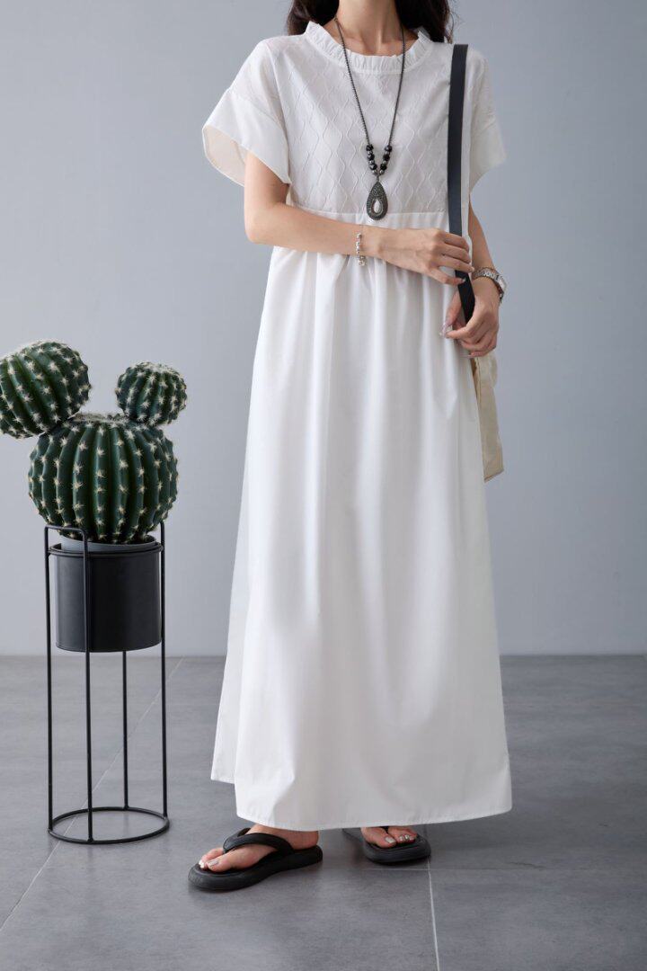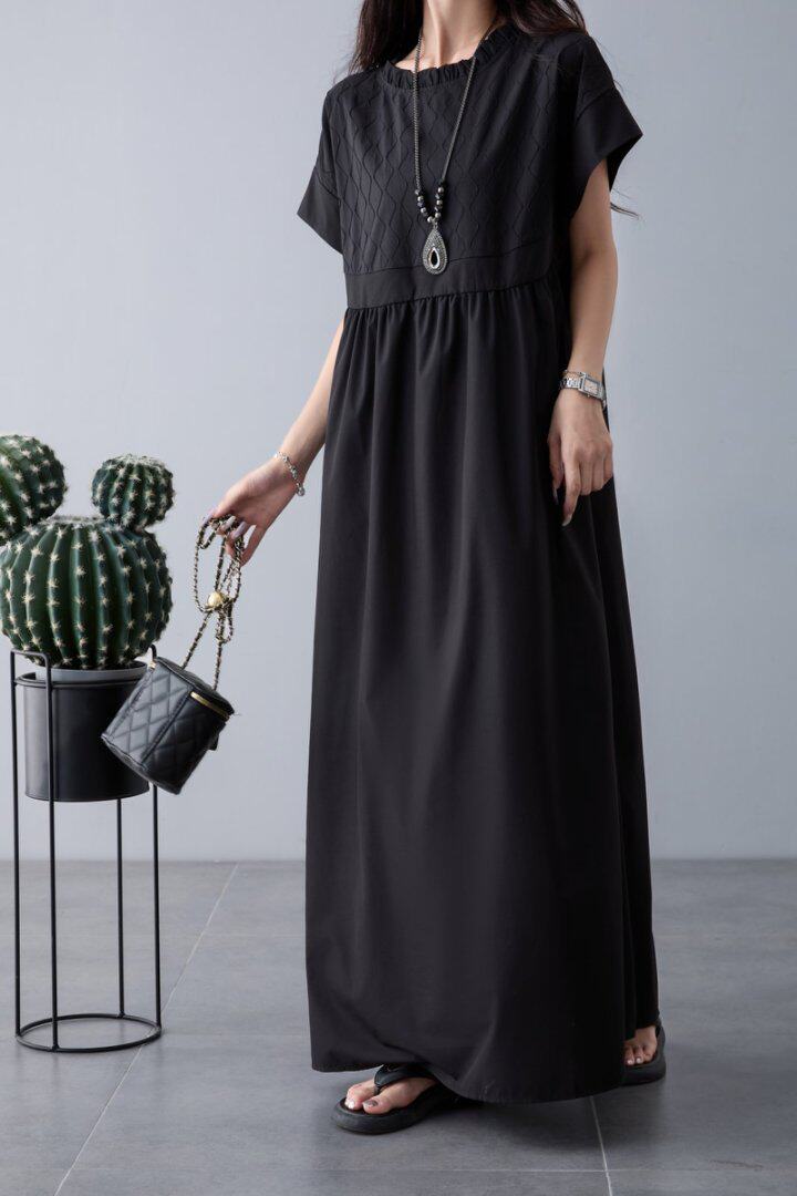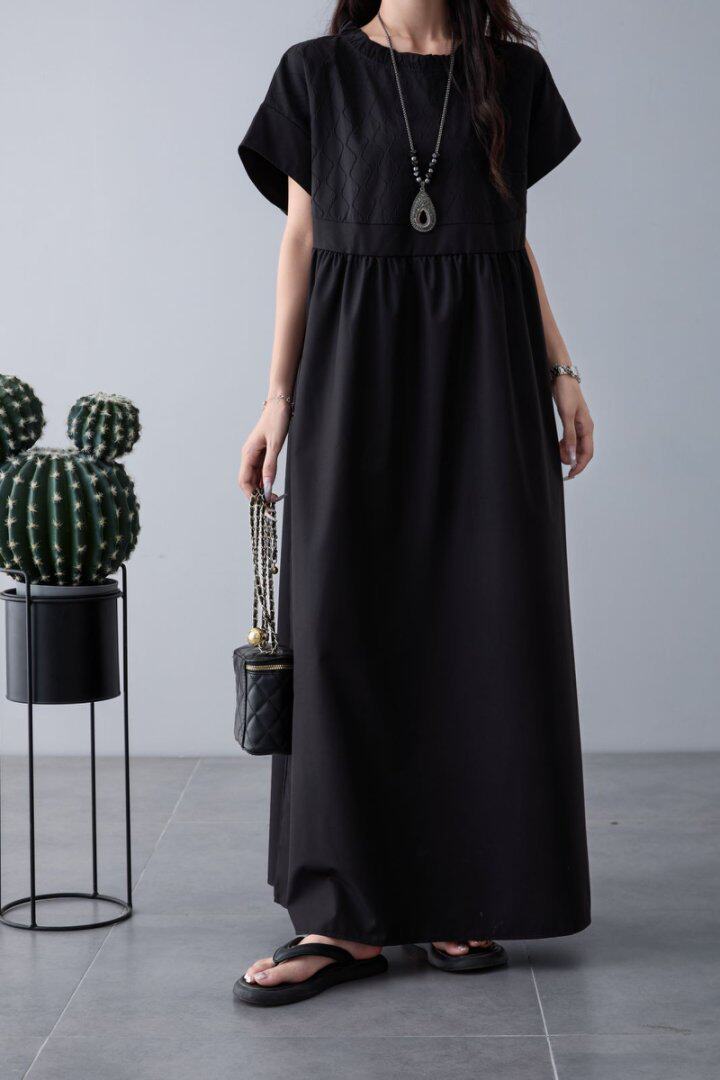 【ワンピース】春夏 人気 新作 大きいサイズ レディース 花柄 丸首 ロング半袖ワンピース ゆったり フレア【JZシリーズ】