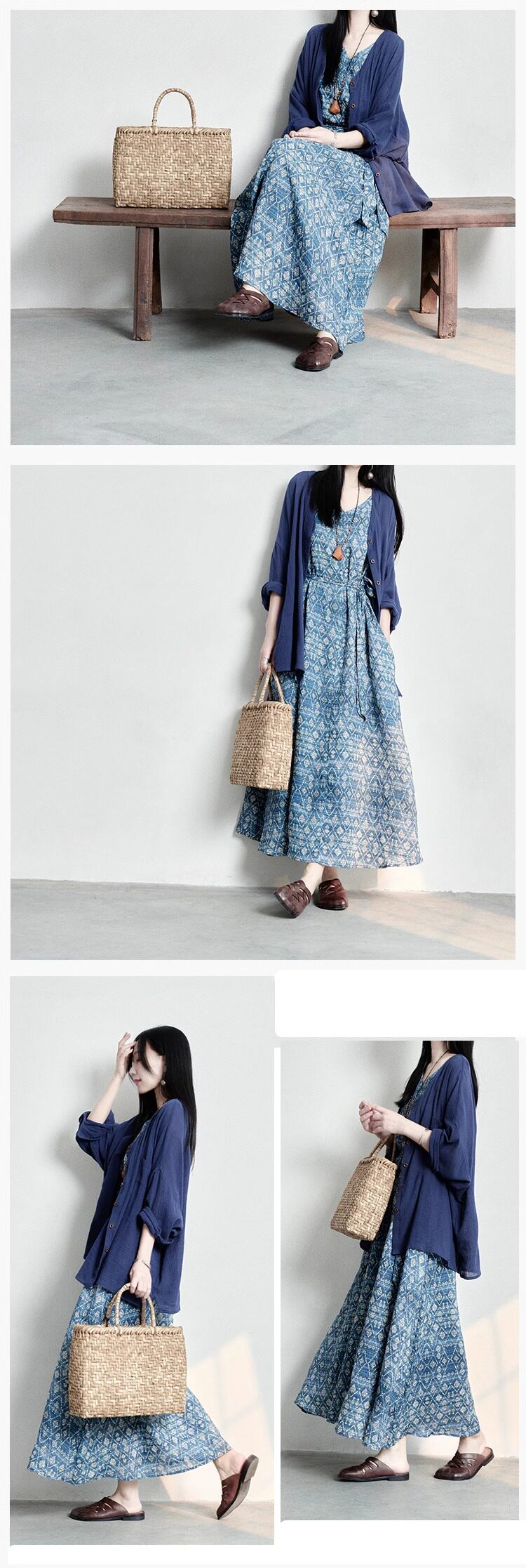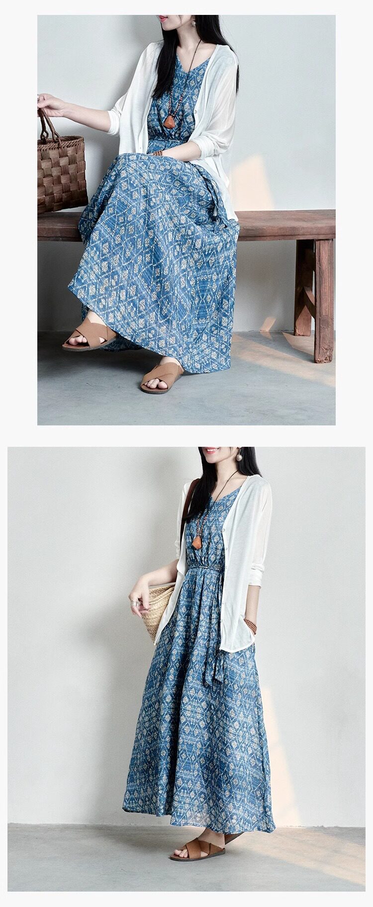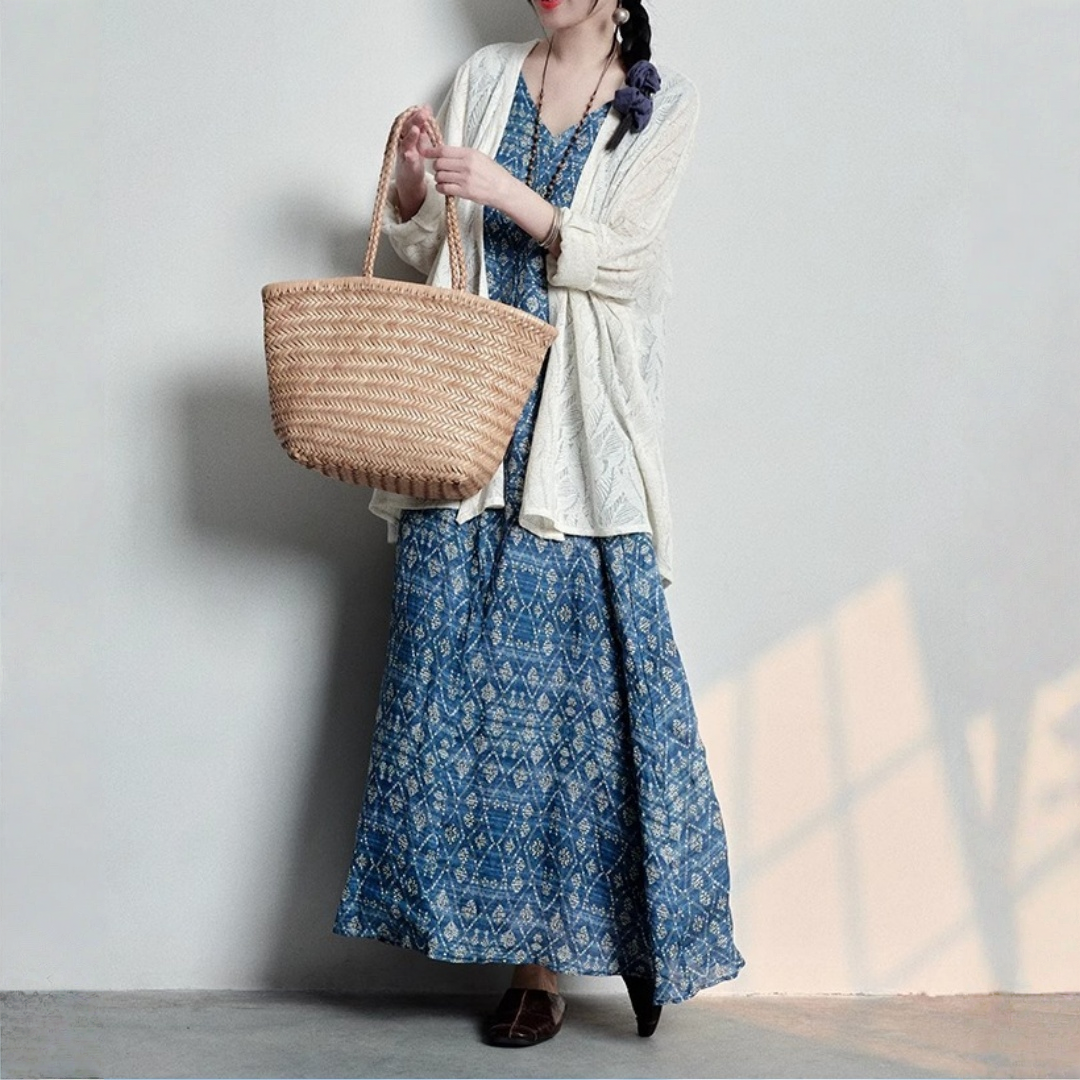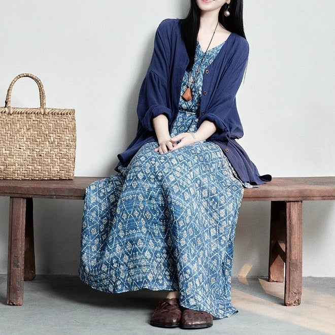 【商品名】【ワンピース】Vネック レトロ プリント ノースリーブ ワンピース 【SHシリーズ】