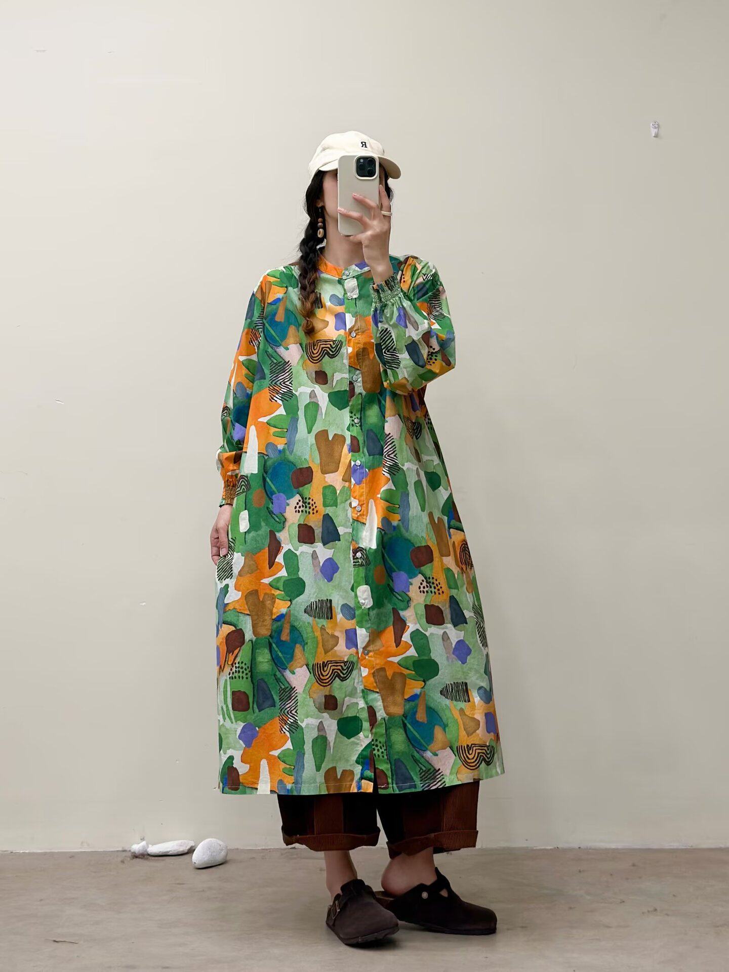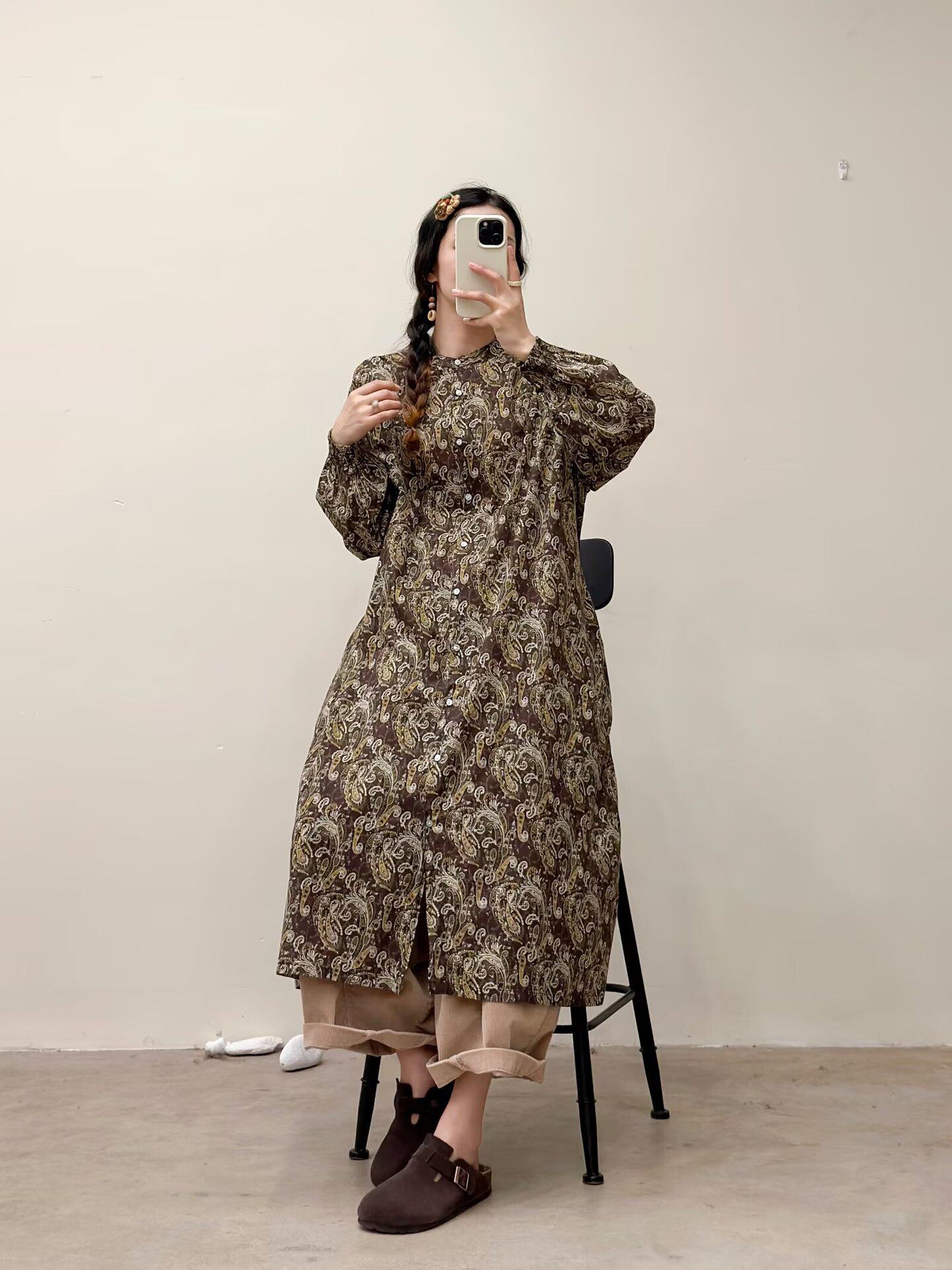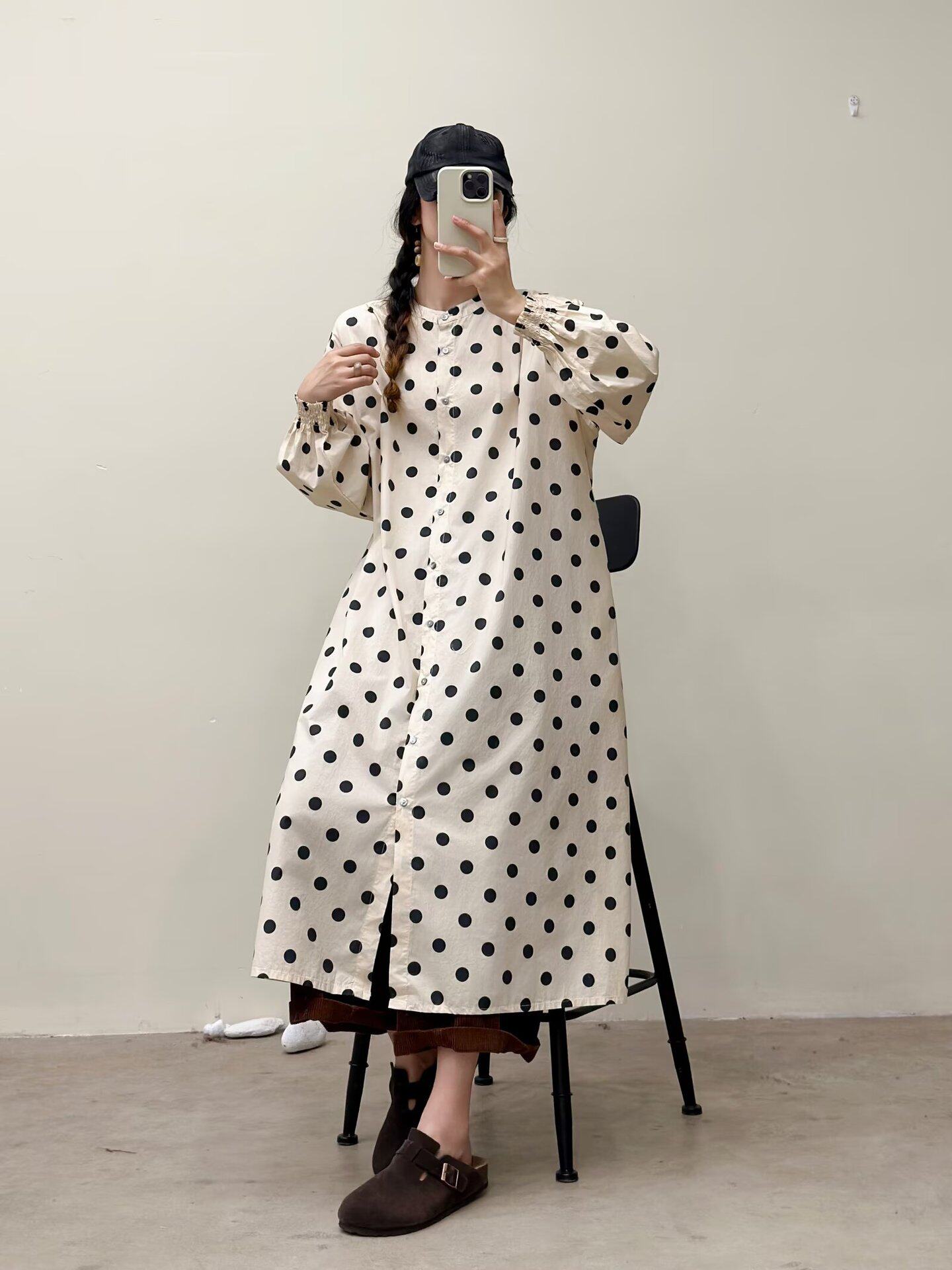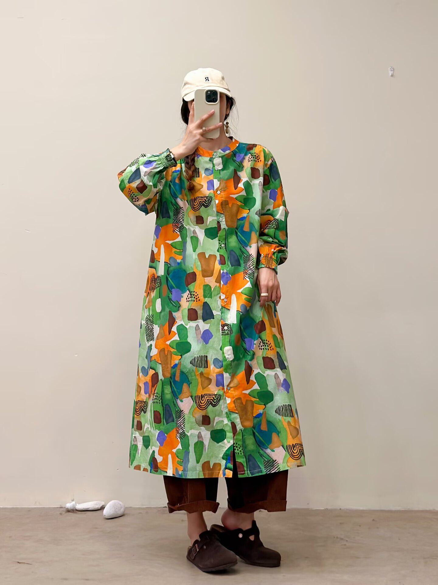 選べる7柄!【ワンピース】🎀カジュアルかわいい丸首プリントワンピース 長袖 シングルボタン 春新作 韓国風ウエストシェイプ レディース【SHシリーズ】