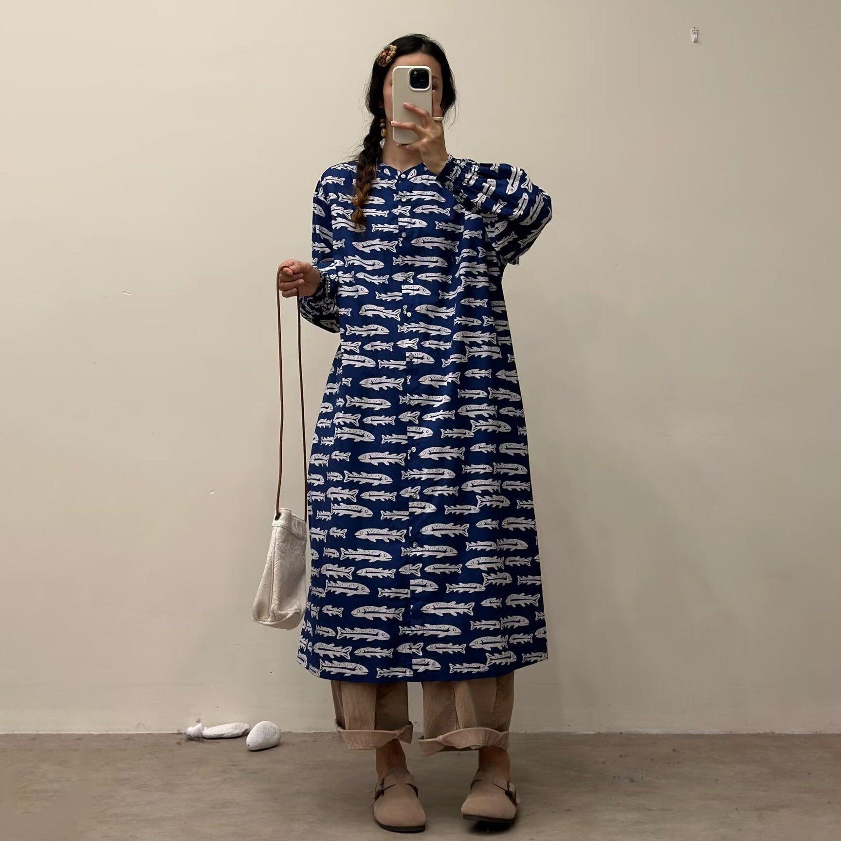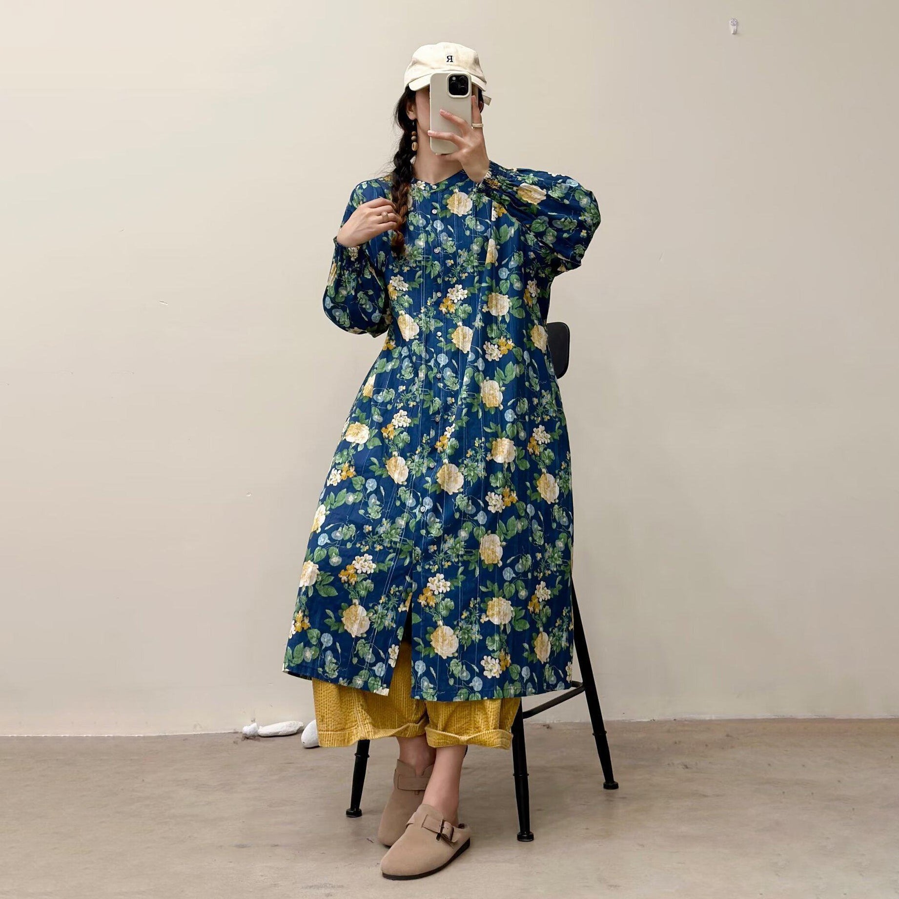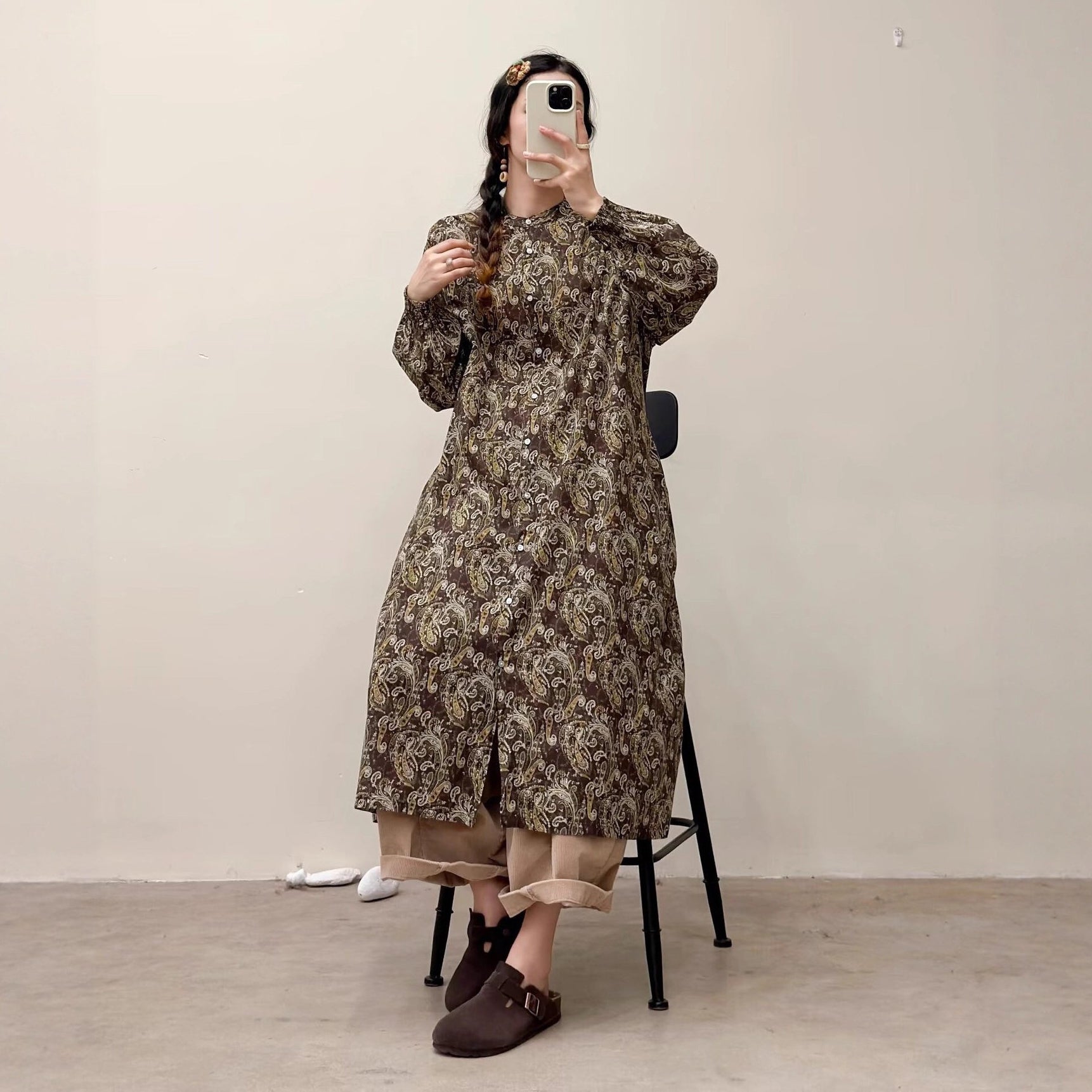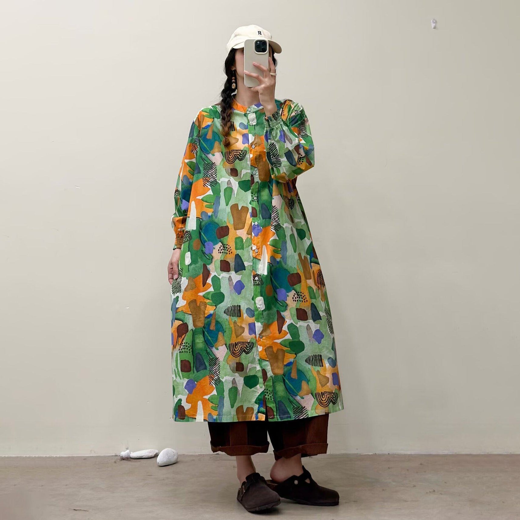 選べる7柄!【ワンピース】🎀カジュアルかわいい丸首プリントワンピース 長袖 シングルボタン 春新作 韓国風ウエストシェイプ レディース【SHシリーズ】