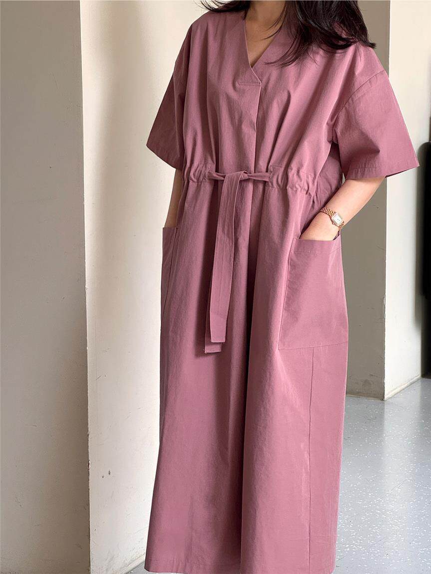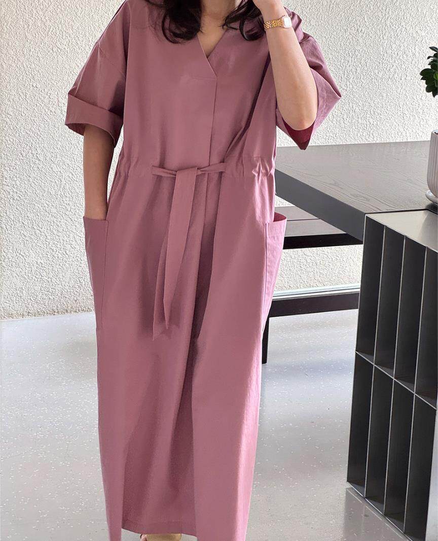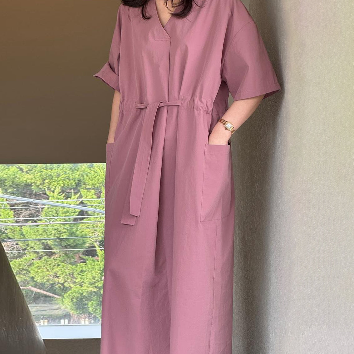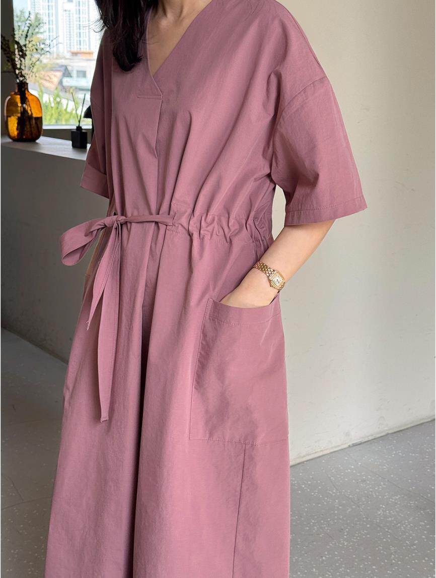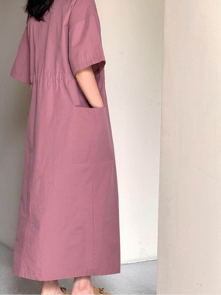 【ワンピース】🌼韓国風 春夏 大きいサイズ ワンピース 半袖 カジュアル ゆったり ポケット付き ウエストシェイプ レディース【JZシリーズ】