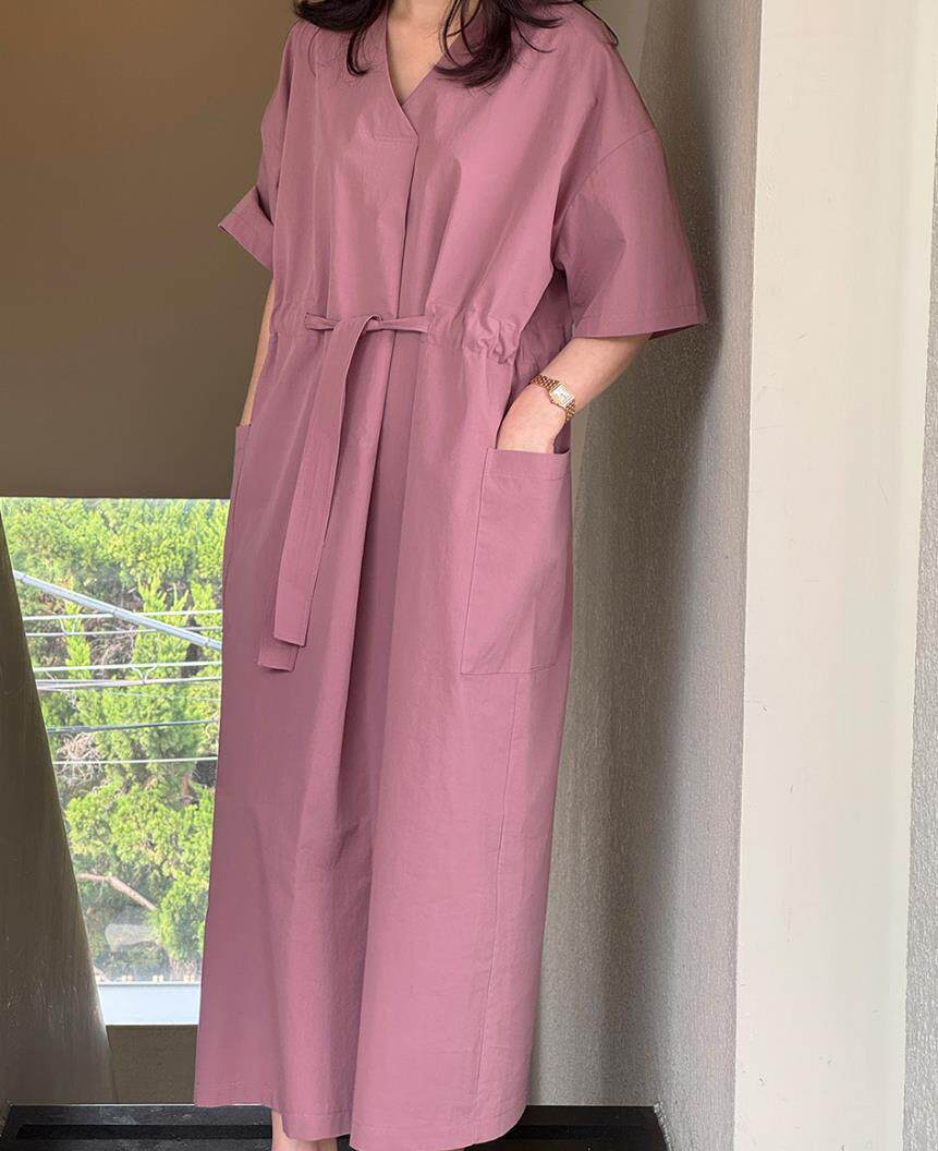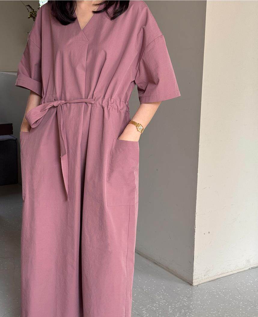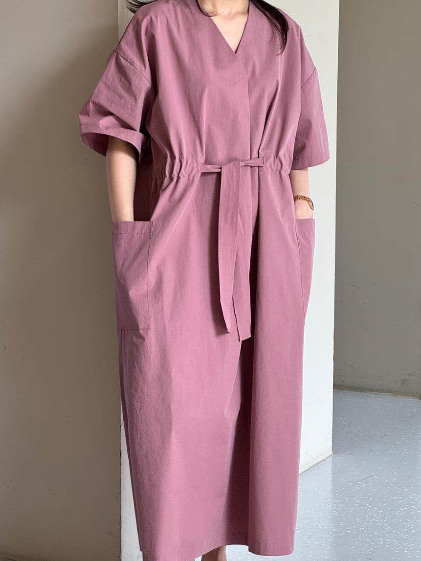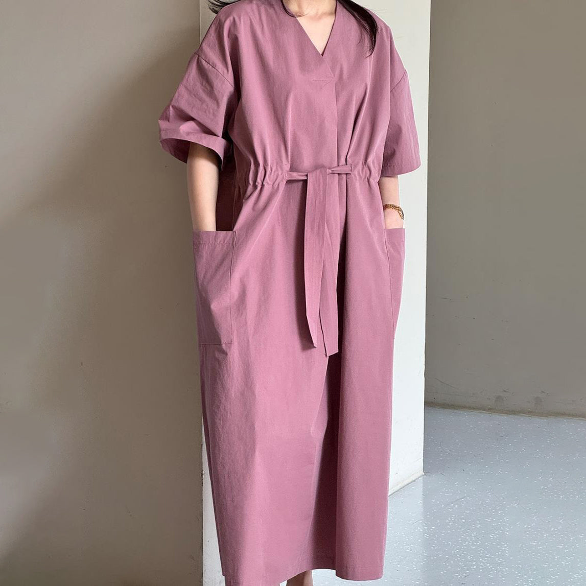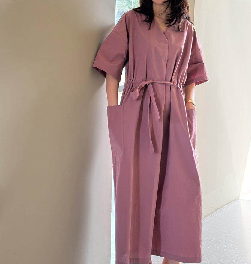 【ワンピース】🌼韓国風 春夏 大きいサイズ ワンピース 半袖 カジュアル ゆったり ポケット付き ウエストシェイプ レディース【JZシリーズ】