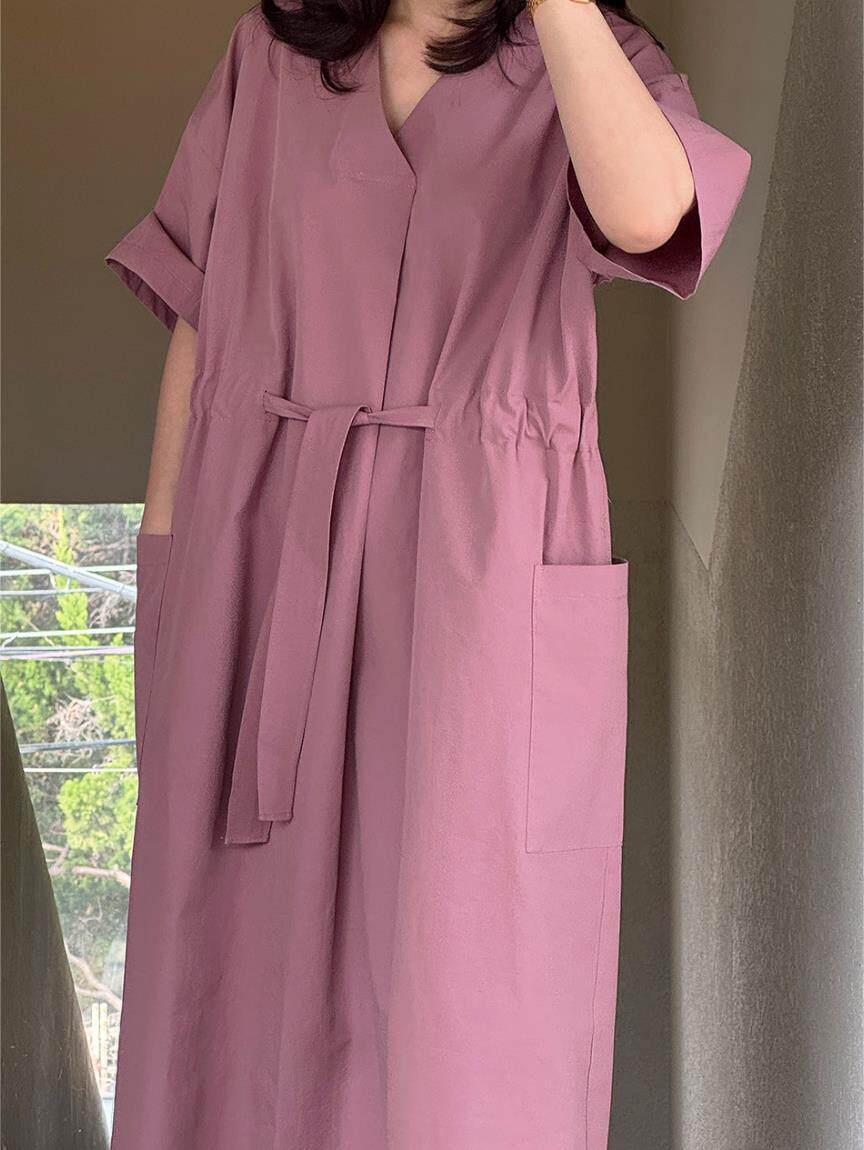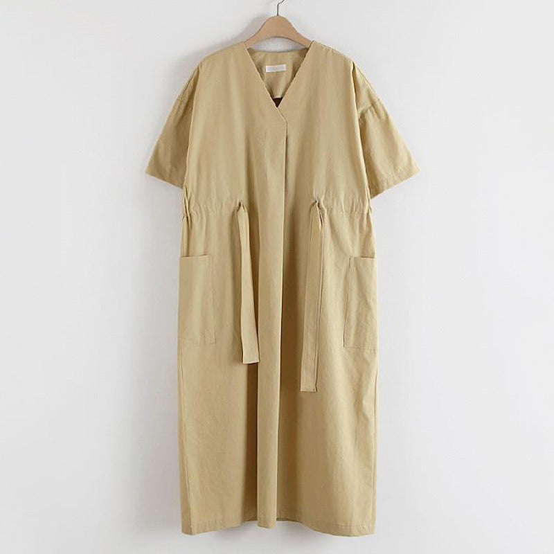 【商品名】【ワンピース】🌼韓国風 春夏 大きいサイズ ワンピース 半袖 カジュアル ゆったり ポケット付き ウエストシェイプ レディース【JZシリーズ】