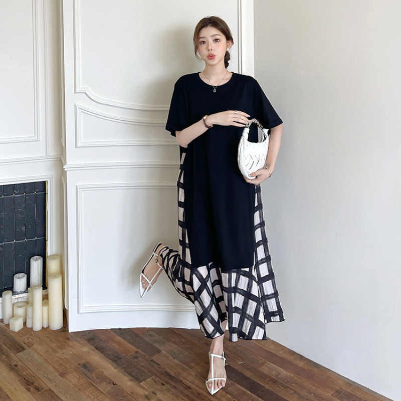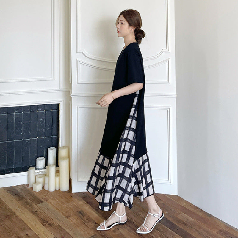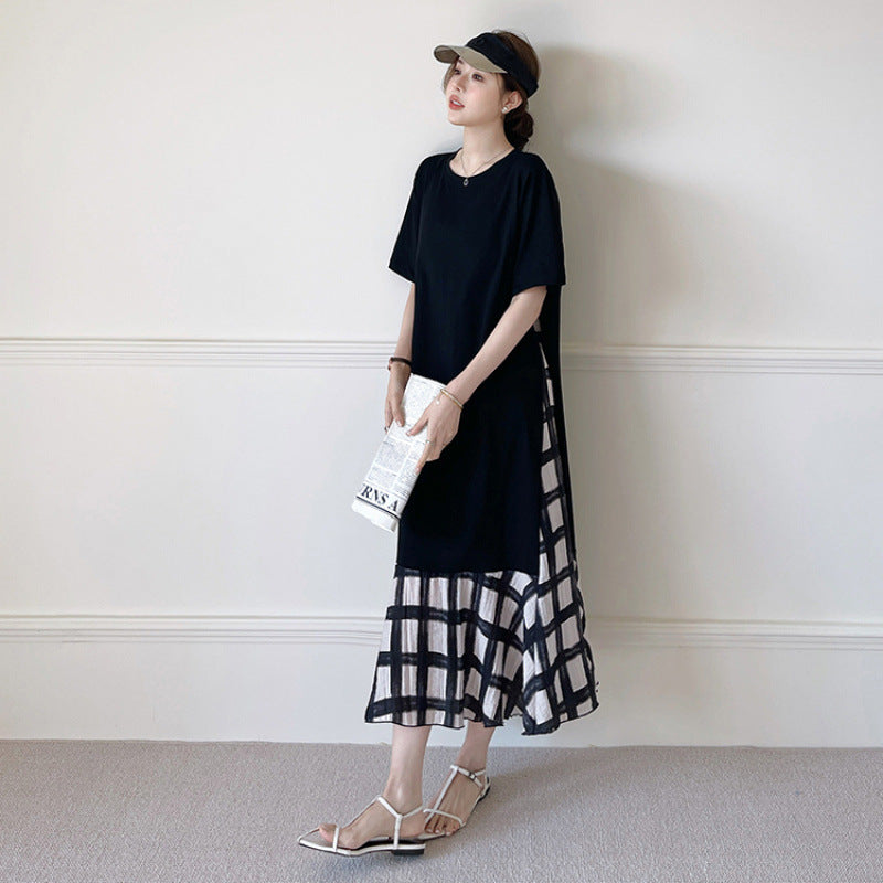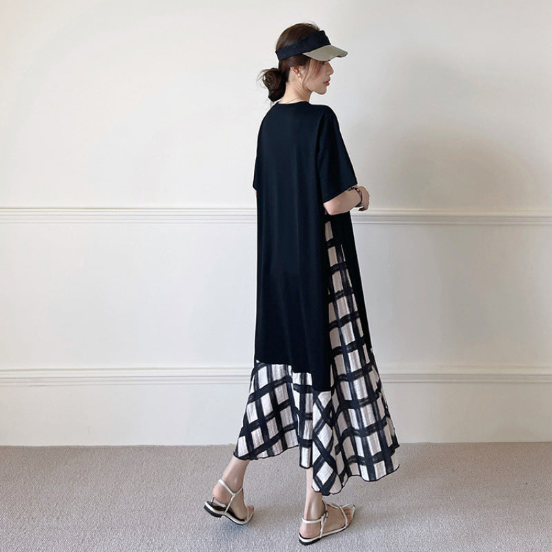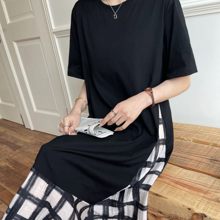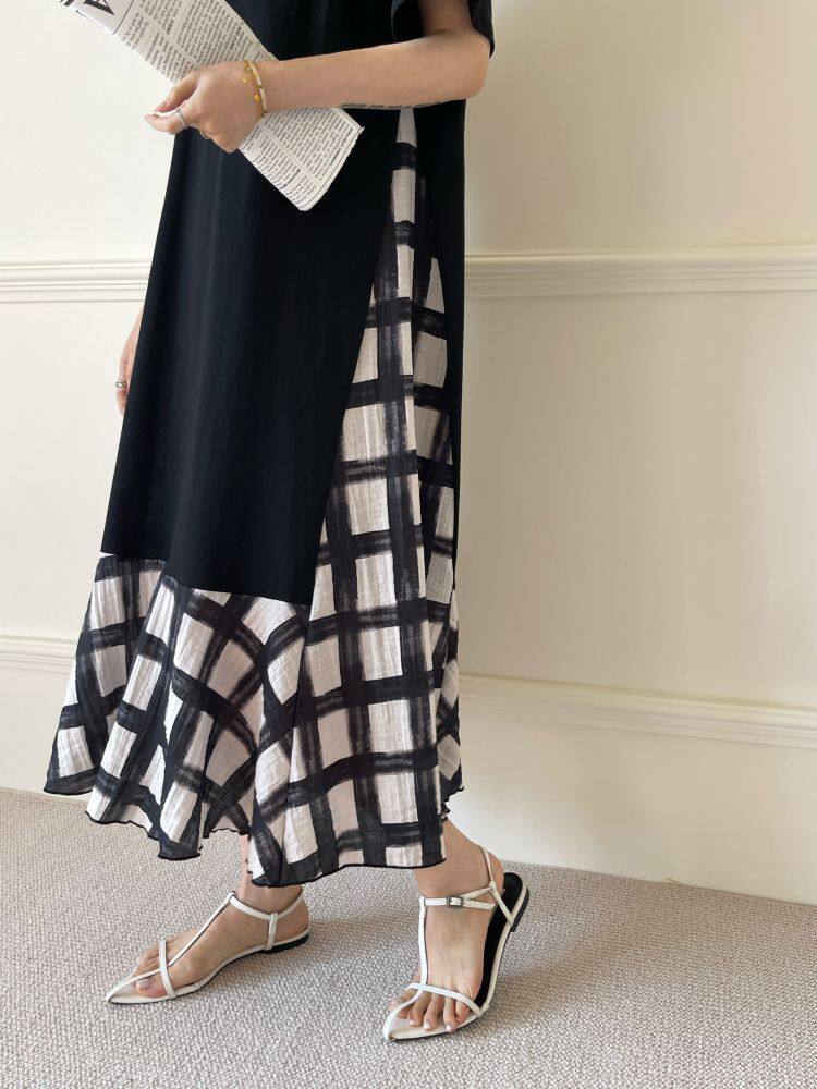【ワンピース】☀️夏 新作 大きいサイズ レディース チェック柄 重ね着風 半袖ワンピース ゆったり 体型カバー【SHシリーズ】