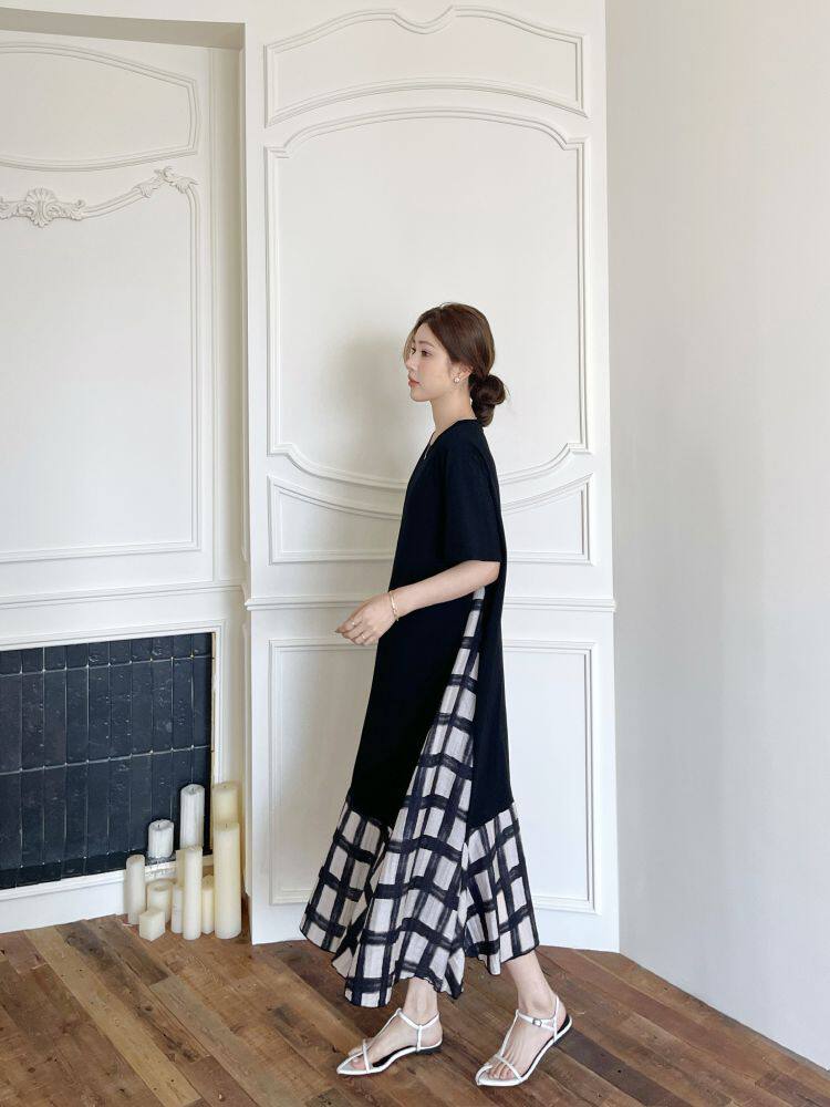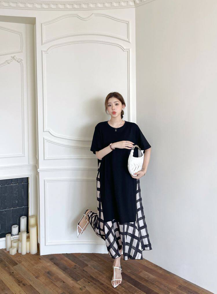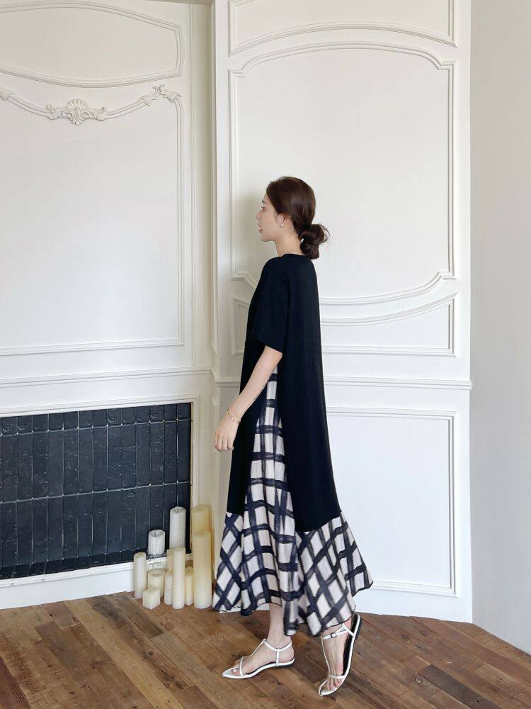 【商品名】【ワンピース】☀️夏 新作 大きいサイズ レディース チェック柄 重ね着風 半袖ワンピース ゆったり 体型カバー【SHシリーズ】
