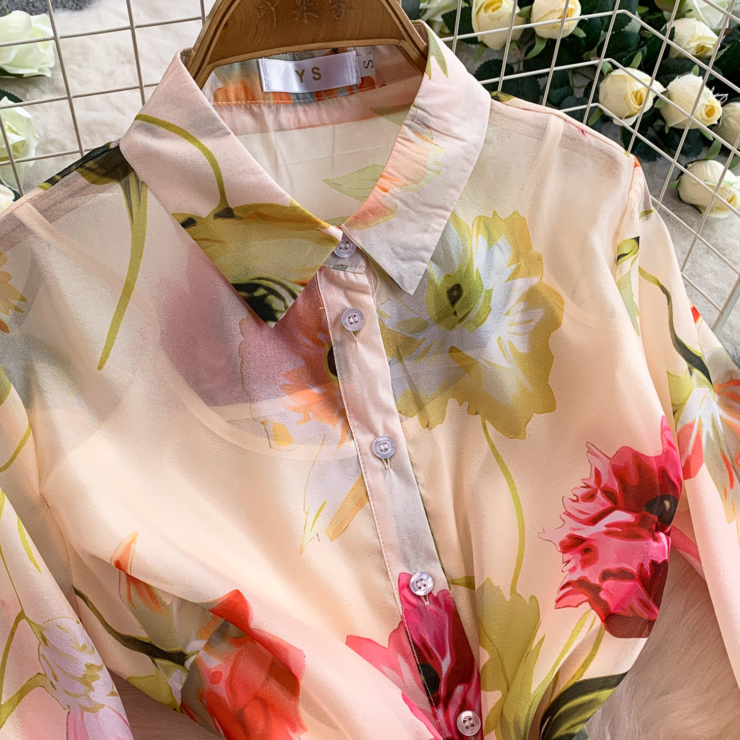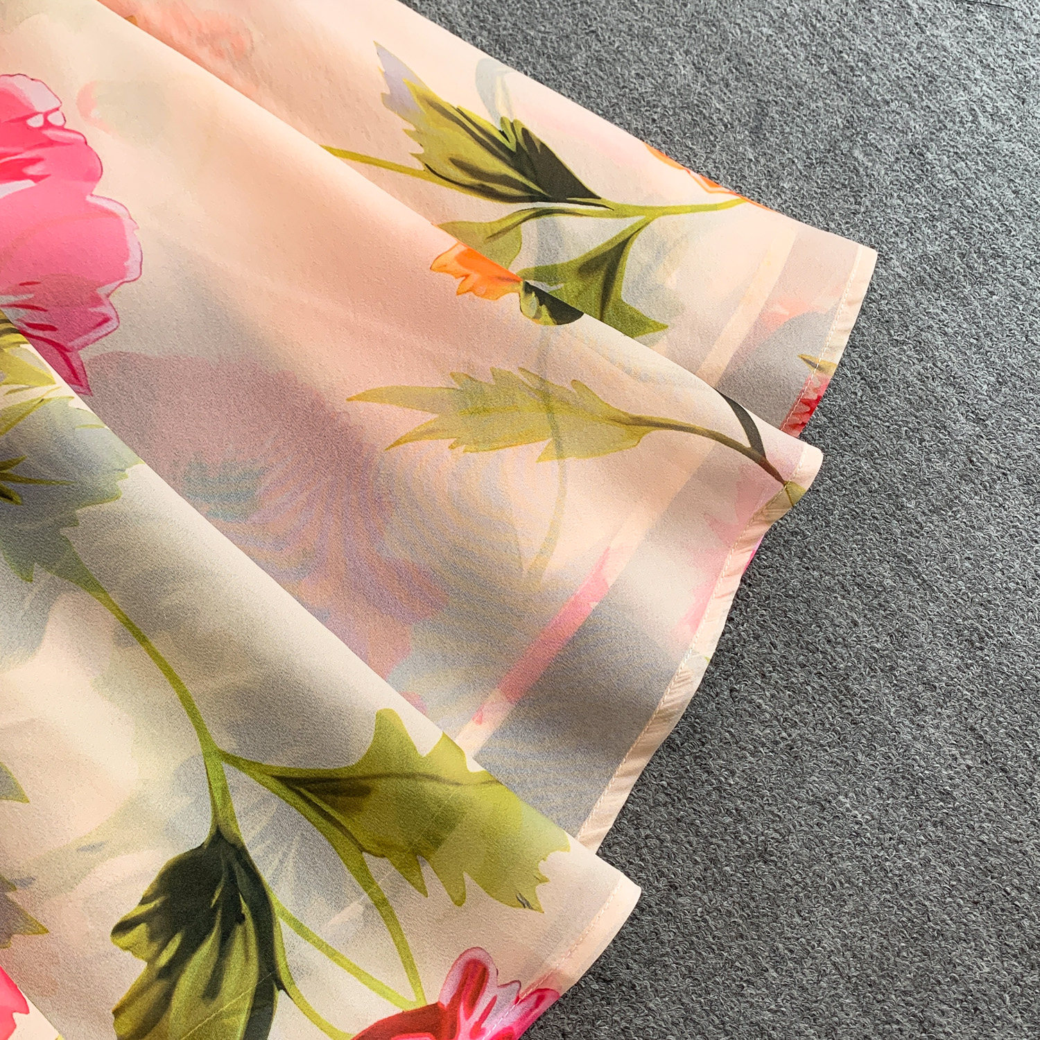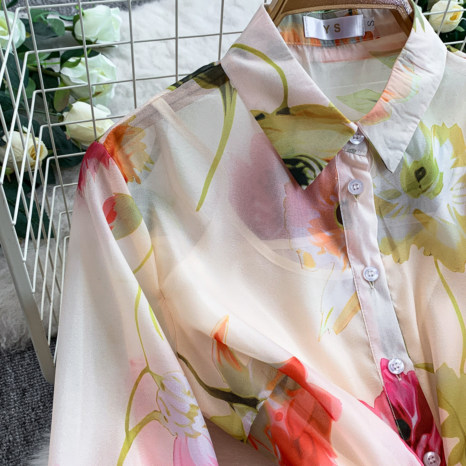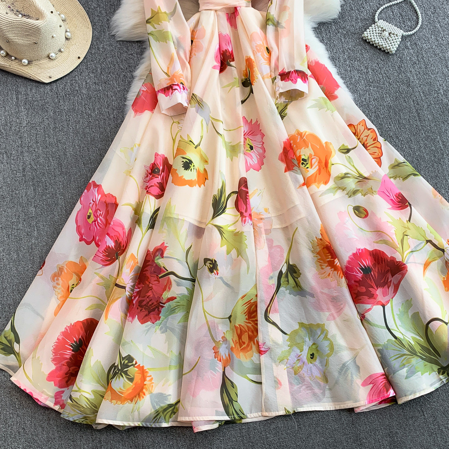 【ワンピース】長袖 花柄ワンピース 襟付き ウエストリボン フレアロング アシンメトリー 着痩せ エレガント リゾートワンピ【SHシリーズ】