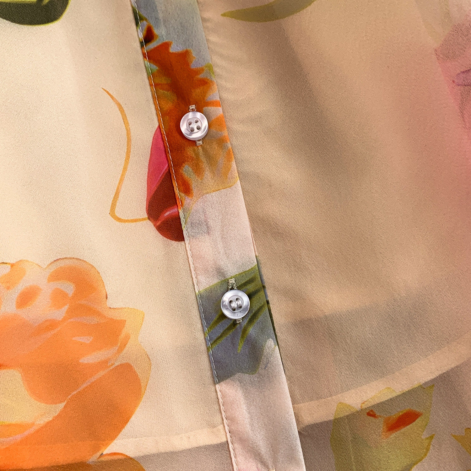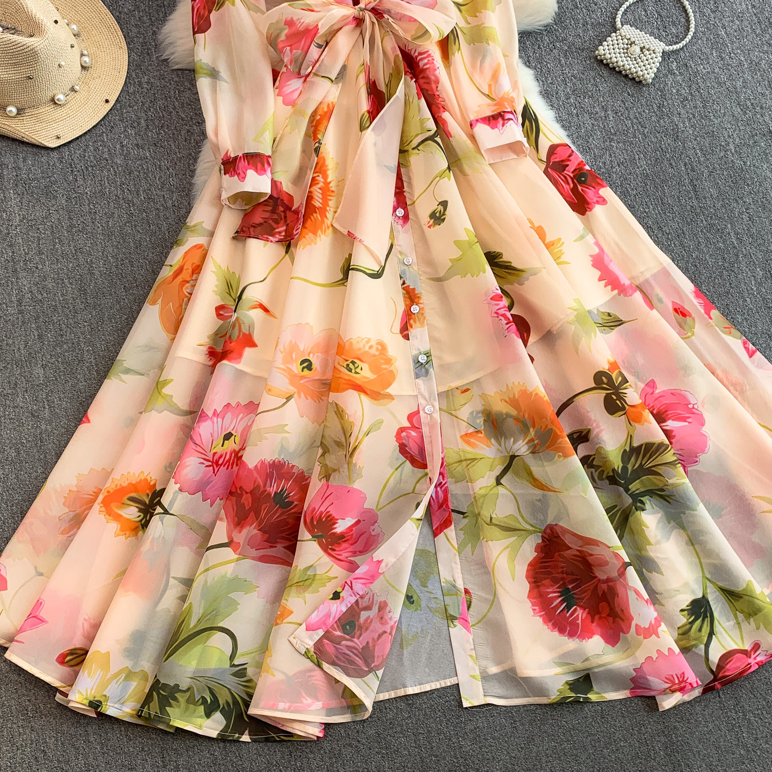 【商品名】【ワンピース】長袖 花柄ワンピース 襟付き ウエストリボン フレアロング アシンメトリー 着痩せ エレガント リゾートワンピ【SHシリーズ】