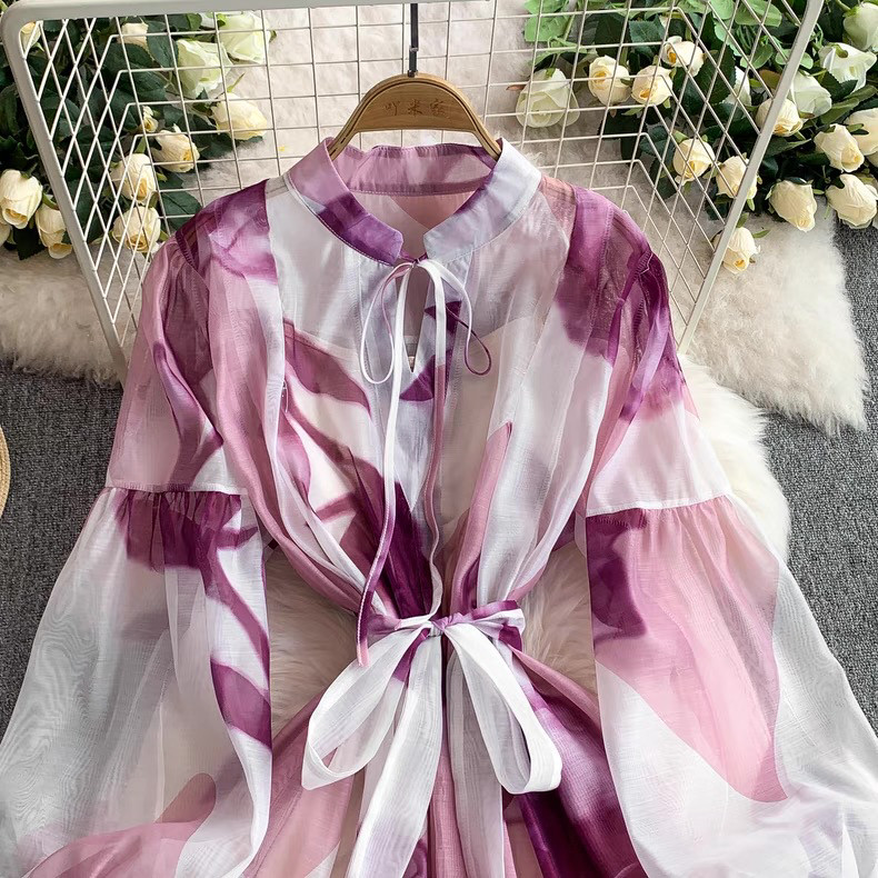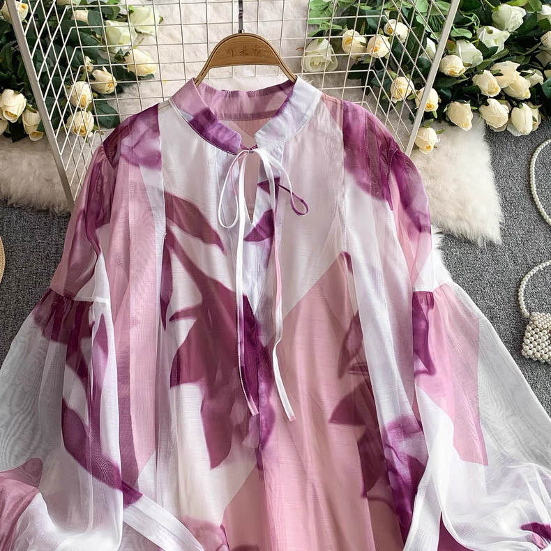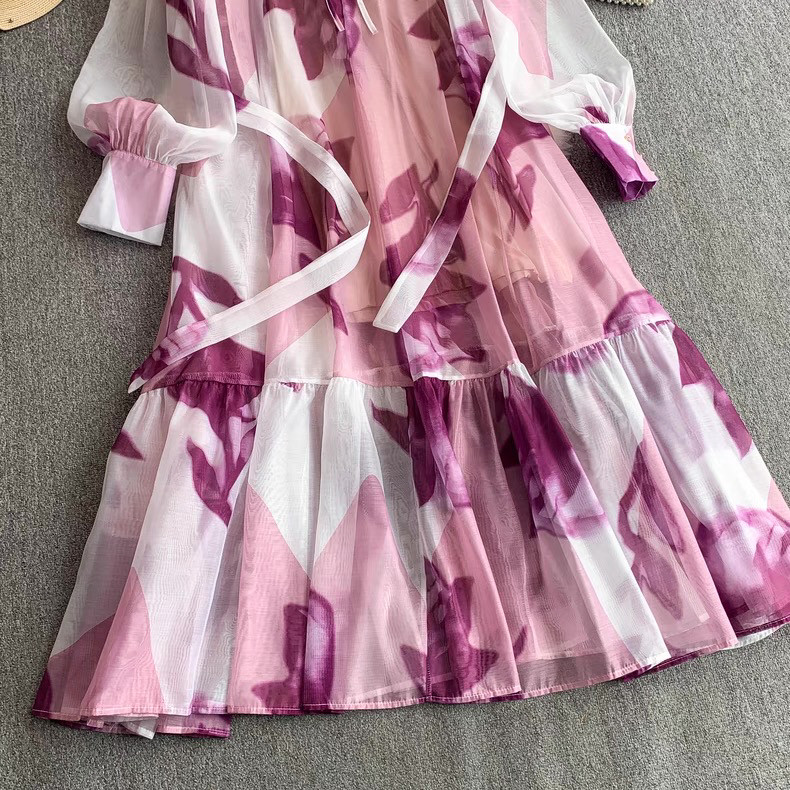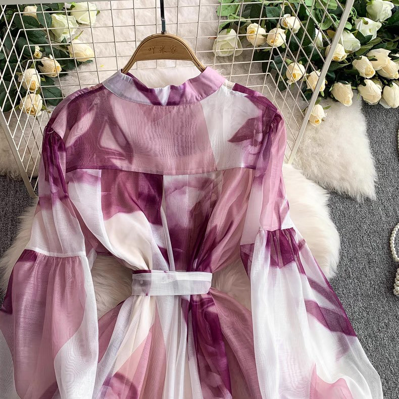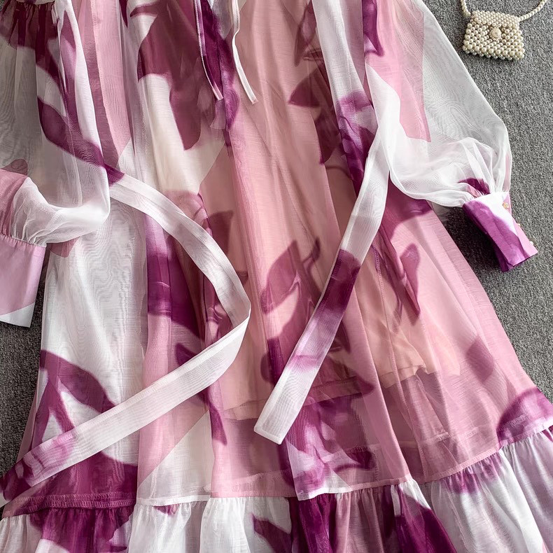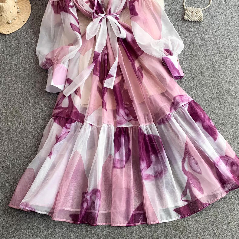 【ワンピース】5カラー フレンチレトロ 花柄ワンピース 長袖 ウエストマーク ゆったり着痩せ ロング丈 上品エレガント 万能ワンピ【SHシリーズ】