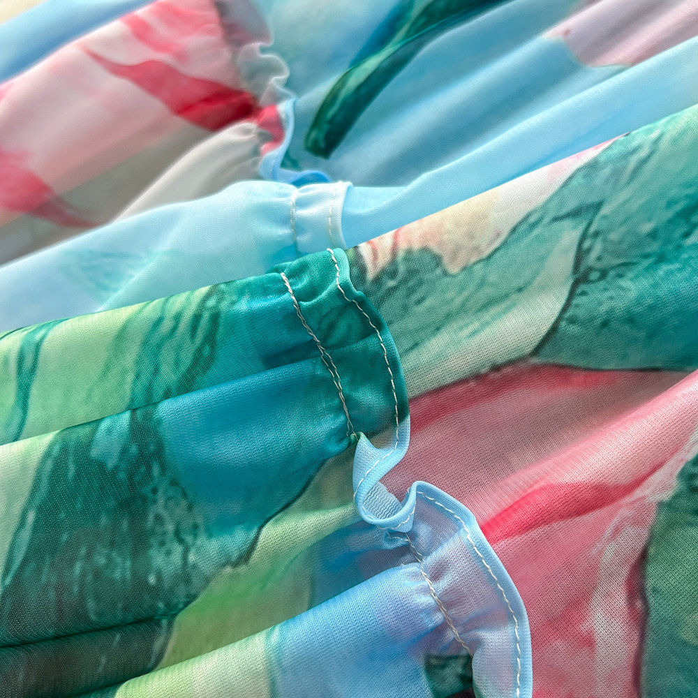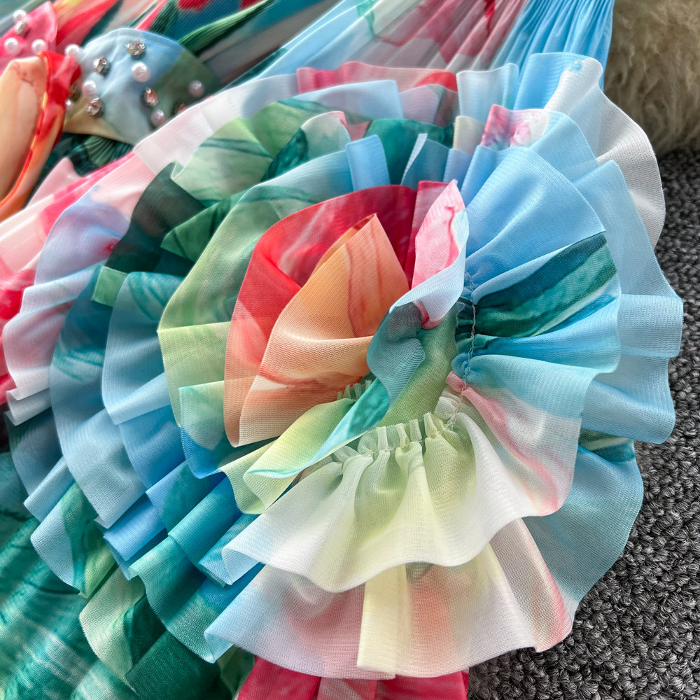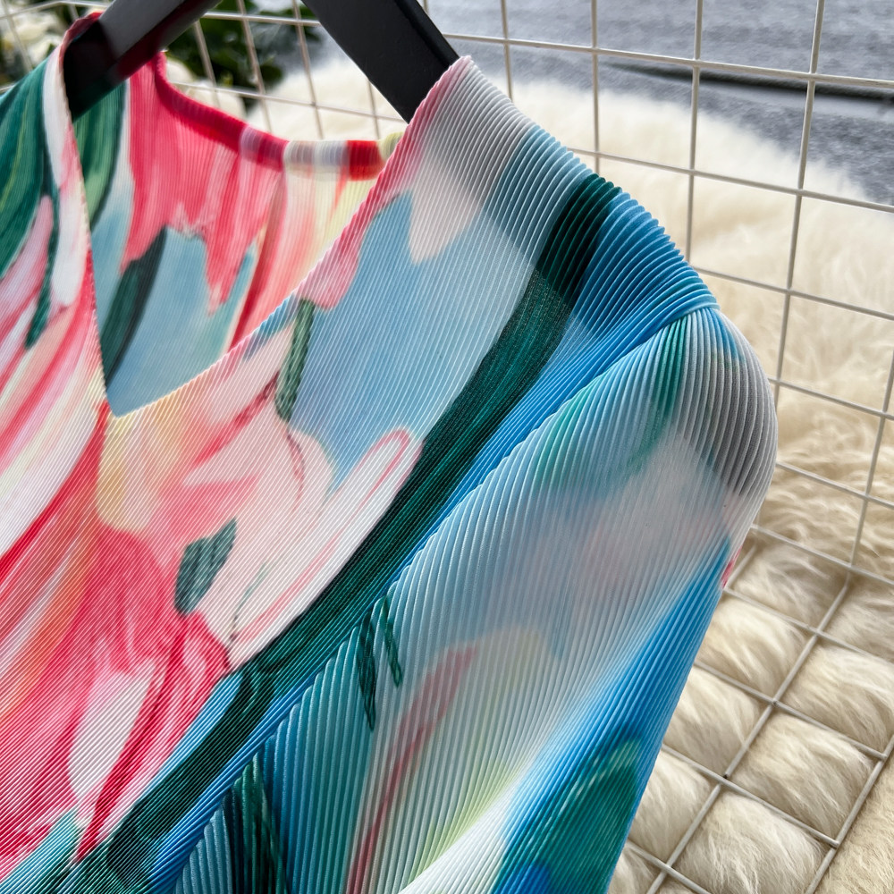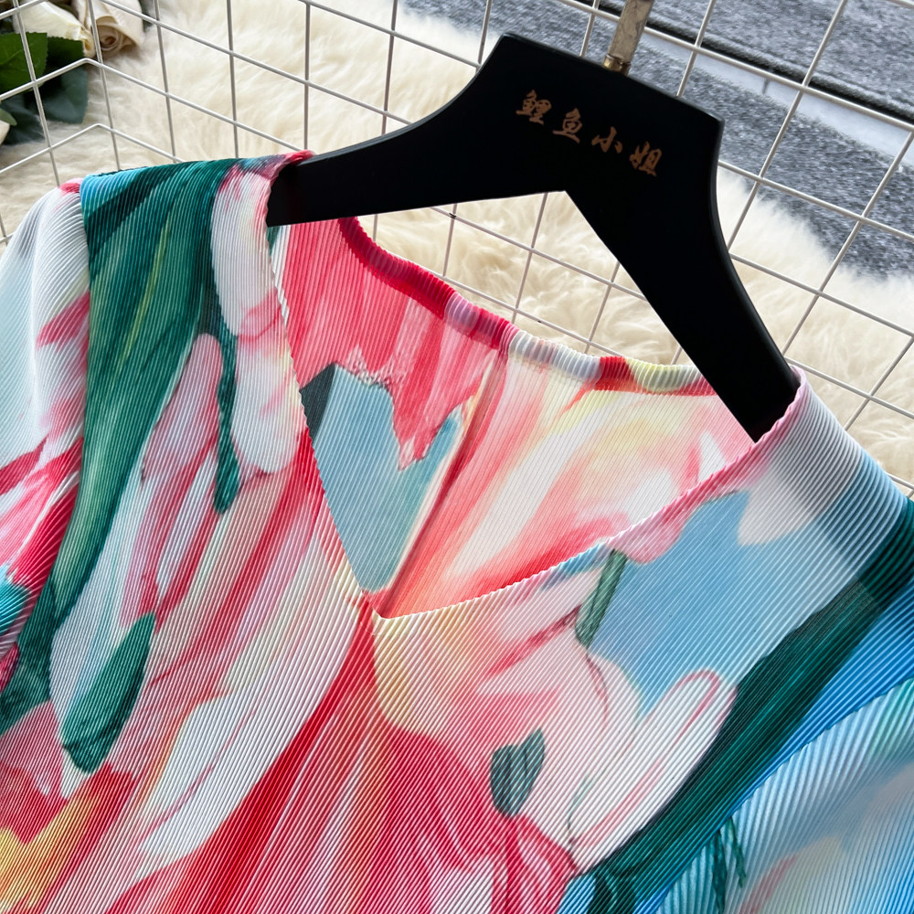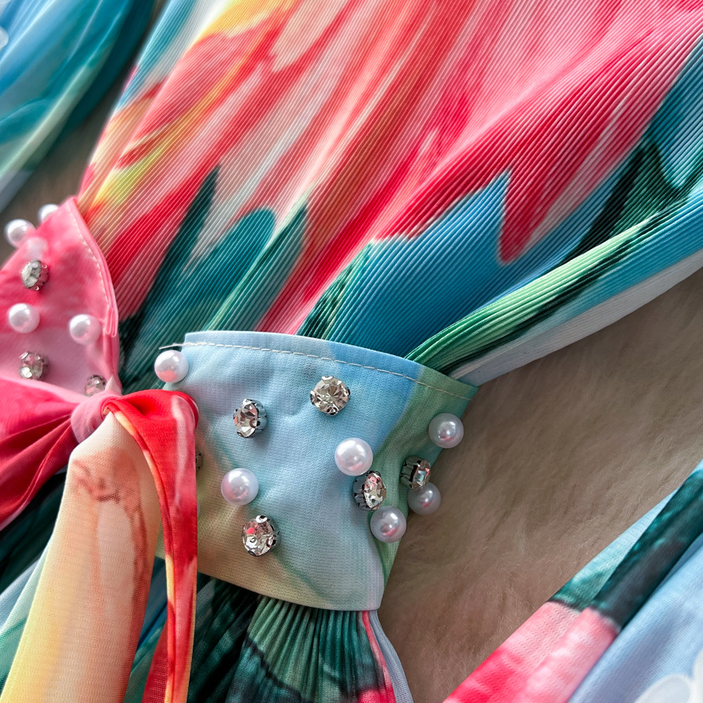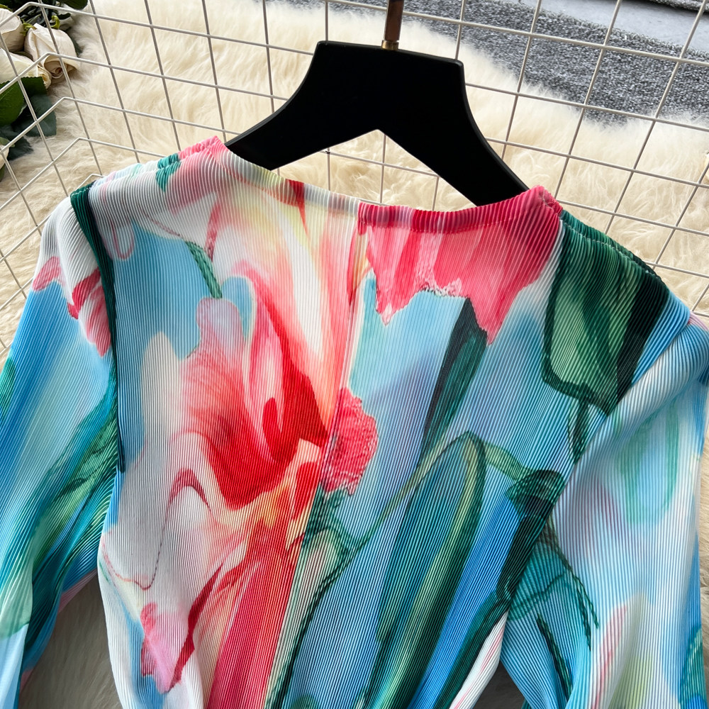 【ワンピース】フレンチ花柄ワンピース Vネック 長袖 立体フラワー フレアロング 着痩せ エレガント リゾートワンピ【SHシリーズ】