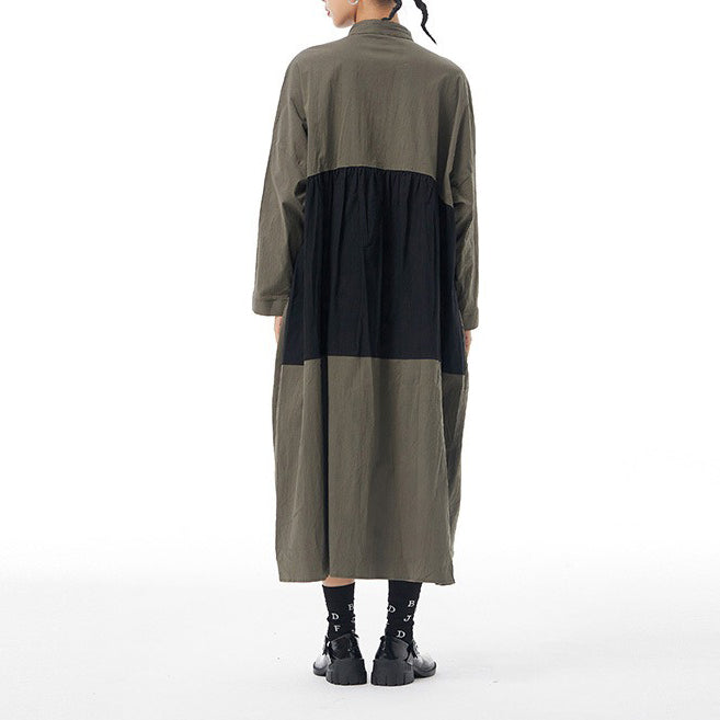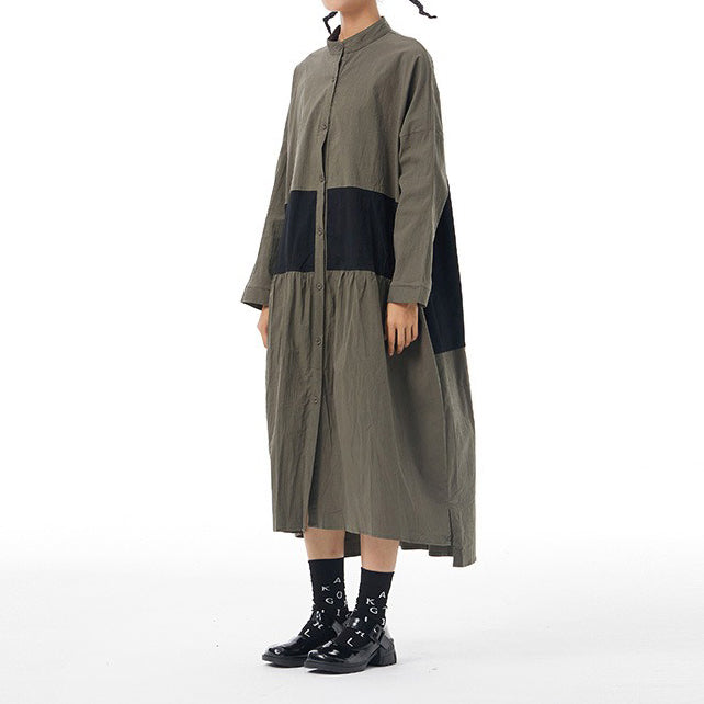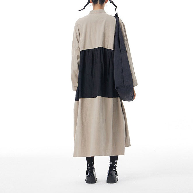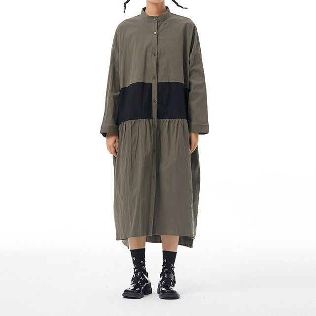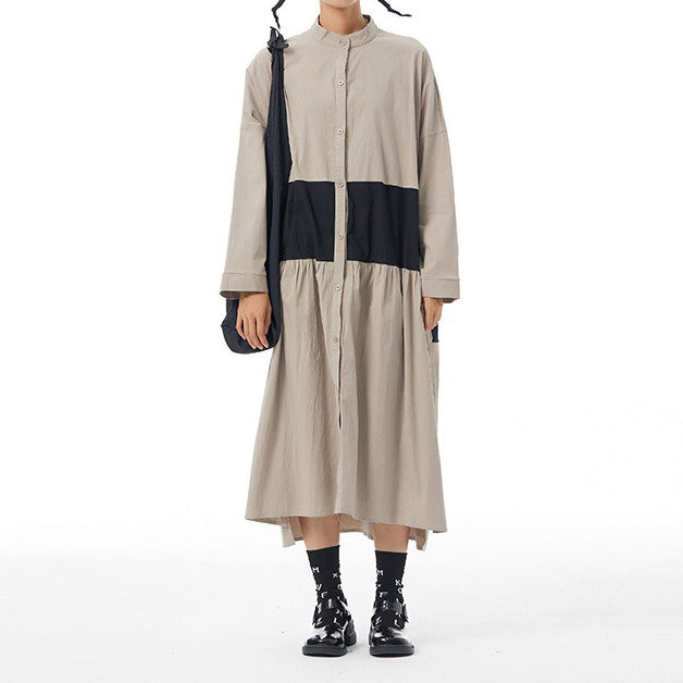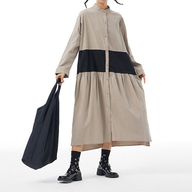 【商品名】【ワンピース】春新作 ファッション ゆったり 長袖 ワンピース オリジナルデザイン 大きいサイズ レディース 配色切替 カーディガン風 ワンピース 【JZシリーズ】