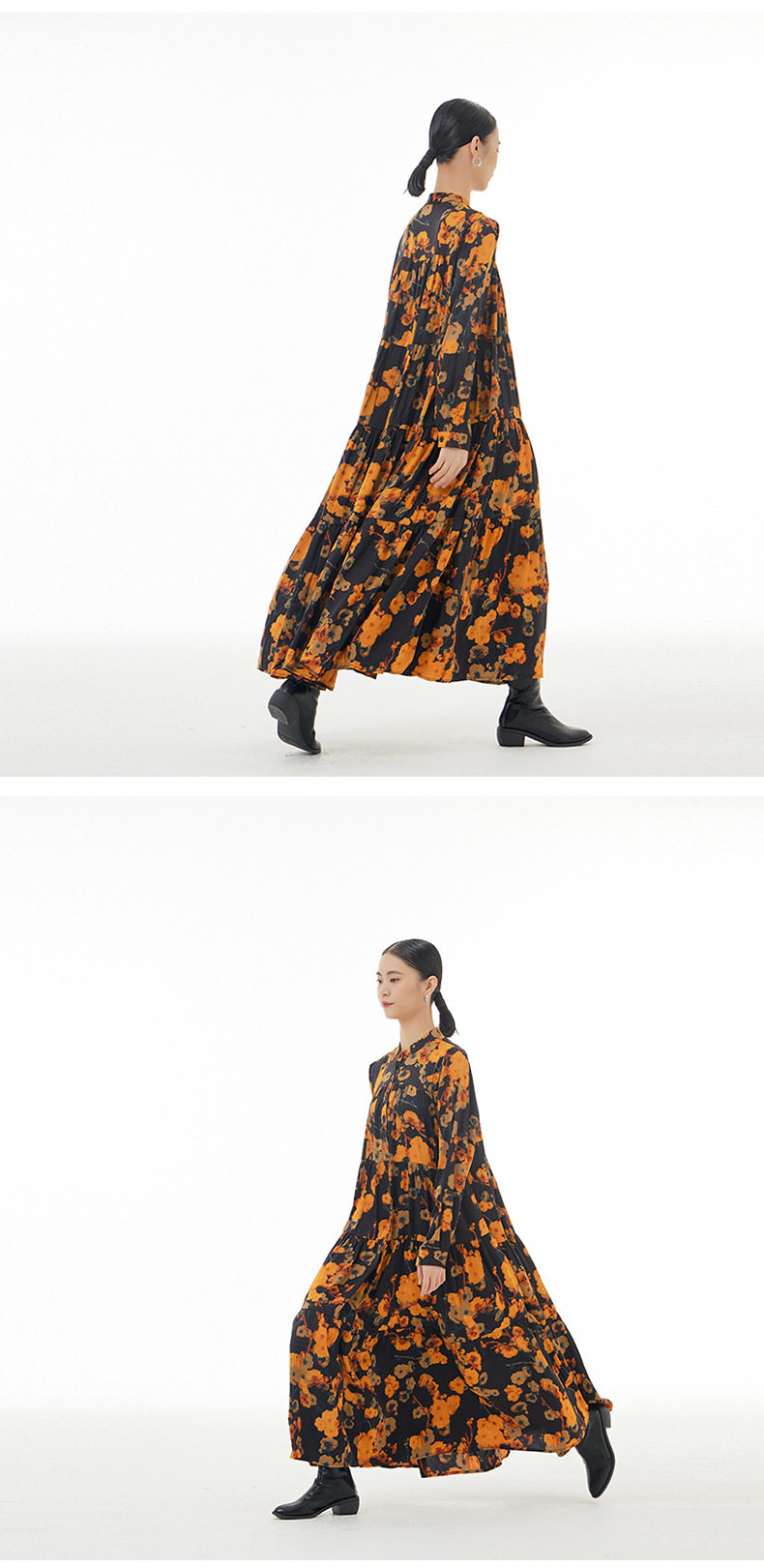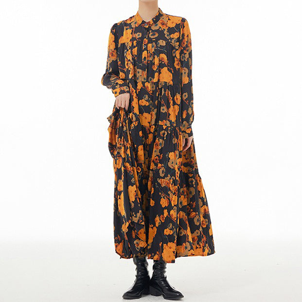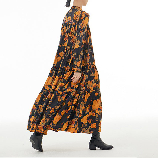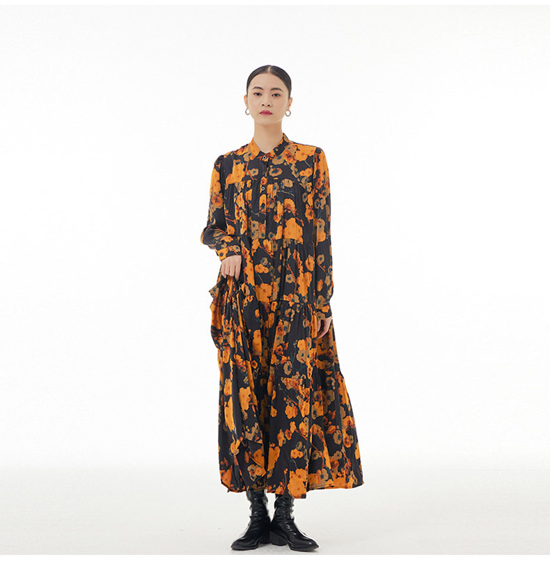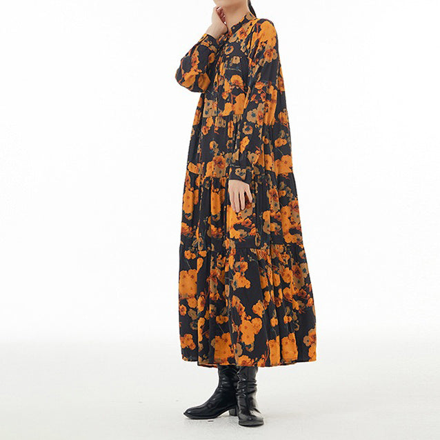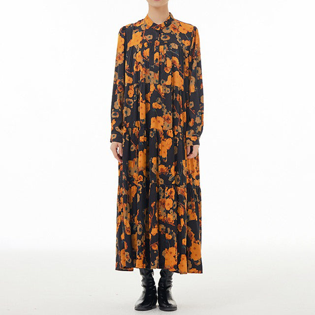【ワンピース】ボヘミアン風 超フレア 長袖 ロングワンピース 春新作 大きいサイズ レディース ゆったり 体型カバー トレンドワンピース【SHシリーズ】