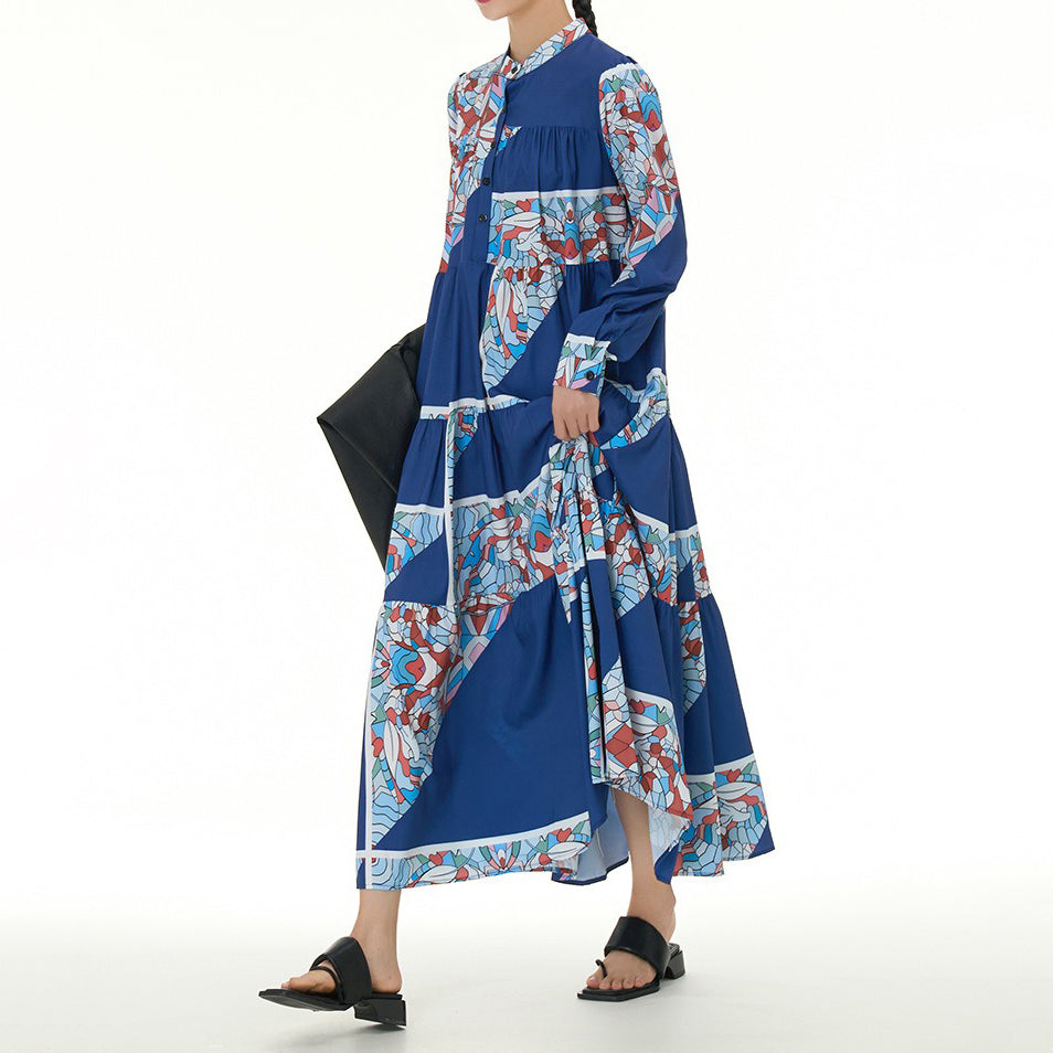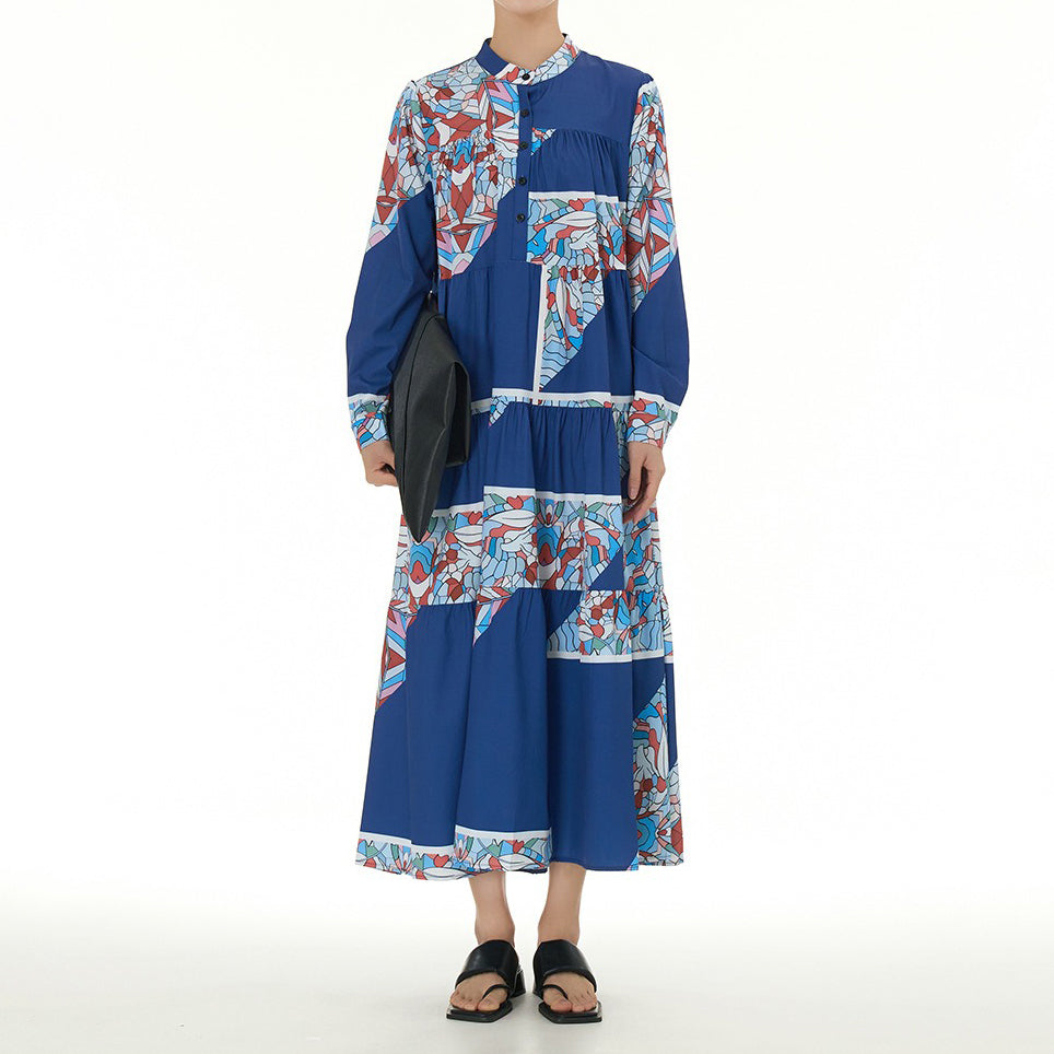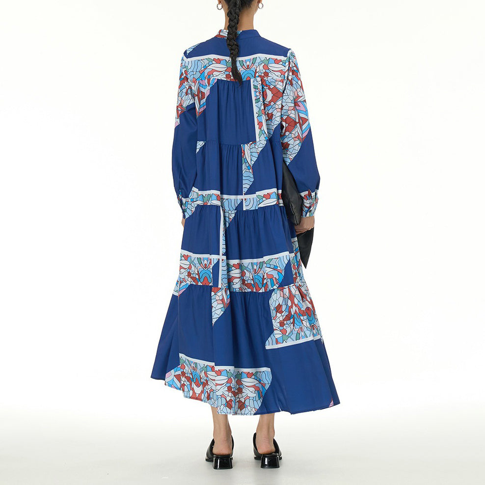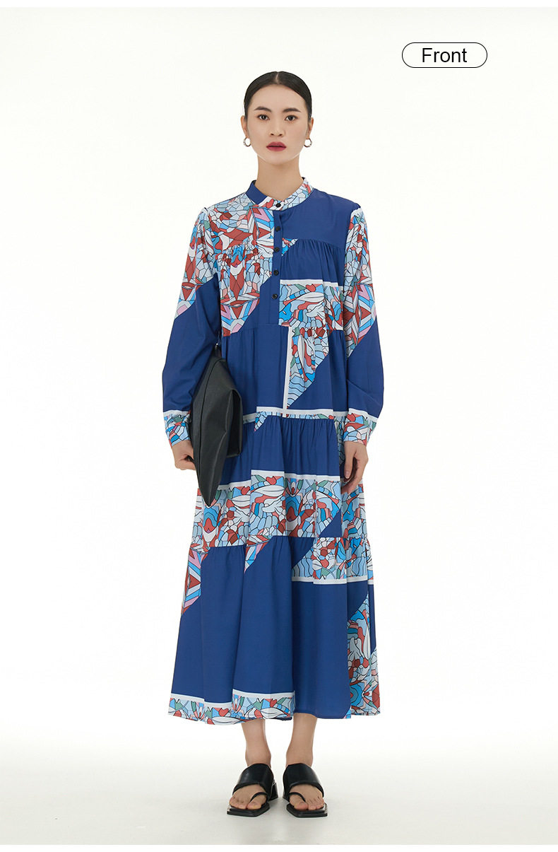 【商品名】【ワンピース】民族風 ティアードワンピース 長袖 春新作 大きいサイズ レディース ゆったり 体型カバー ロングワンピース【SHシリーズ】