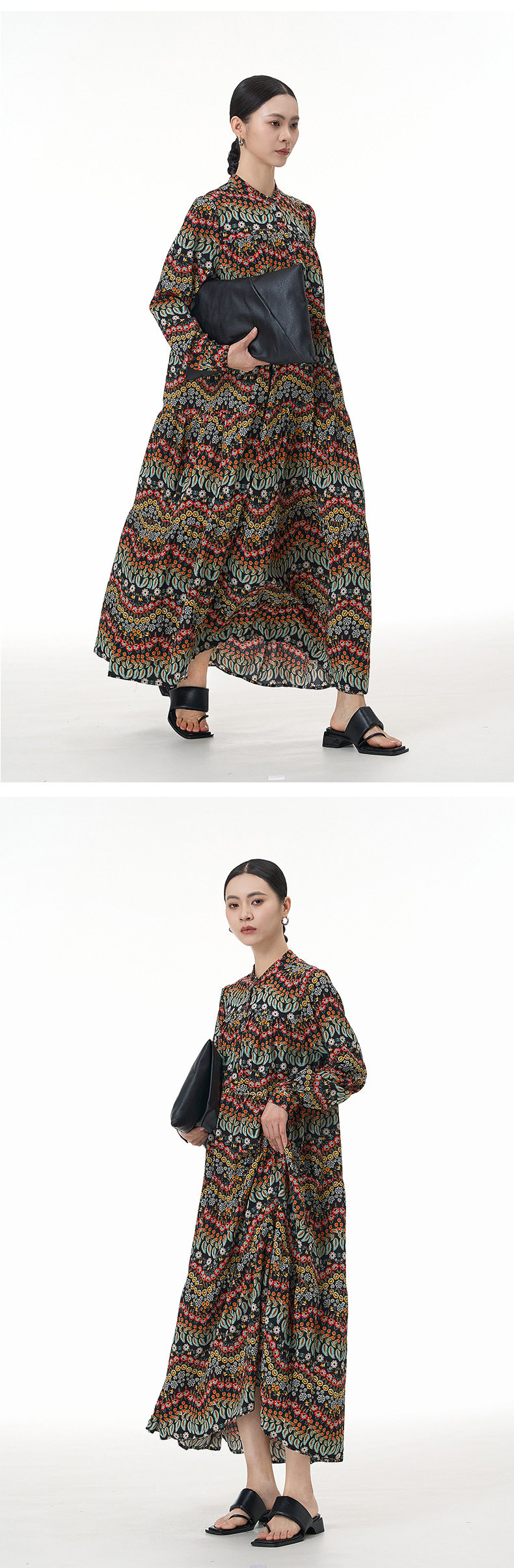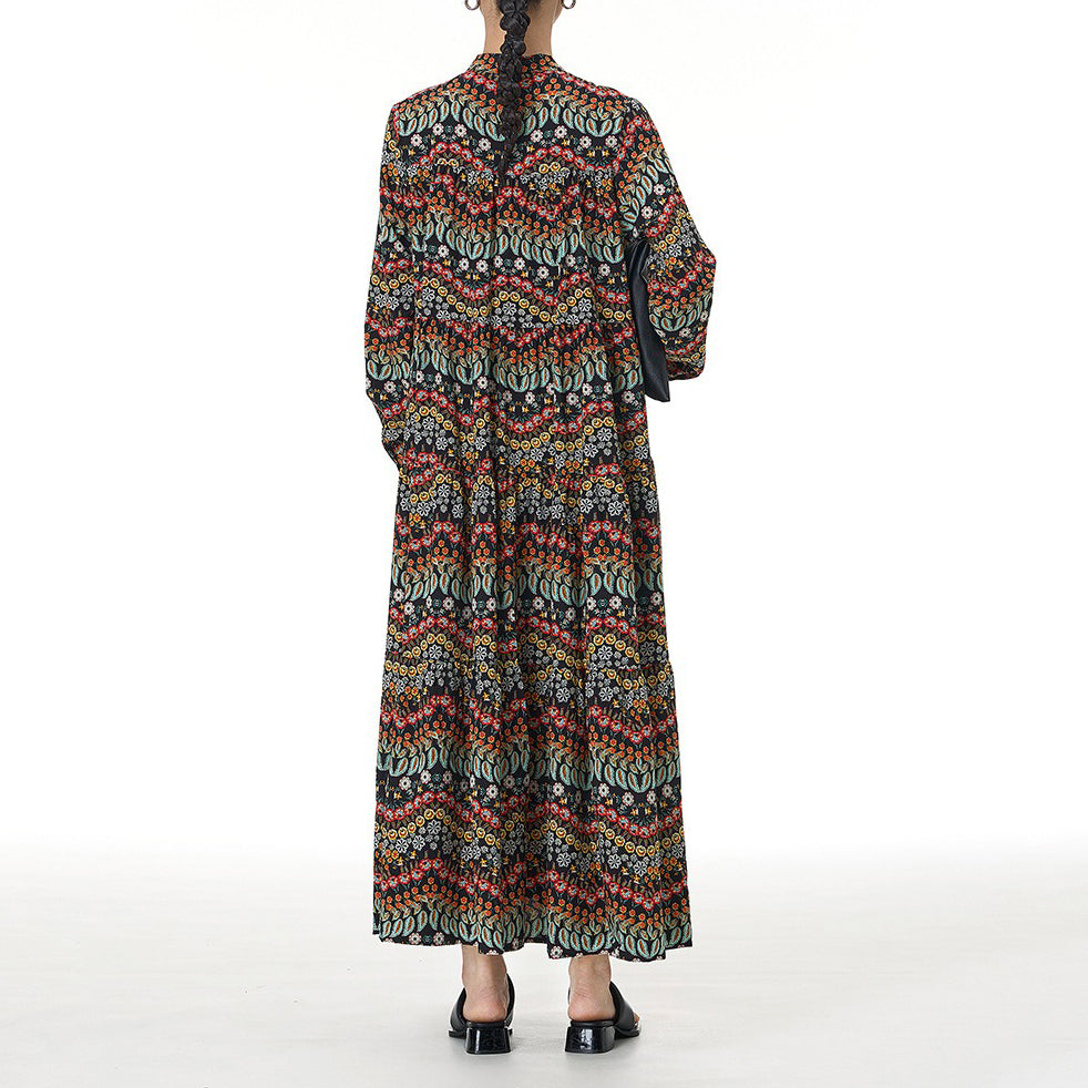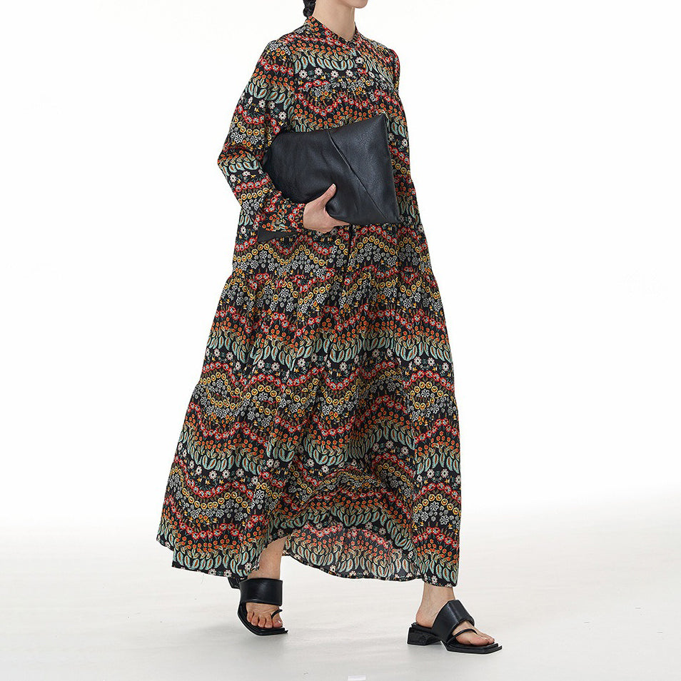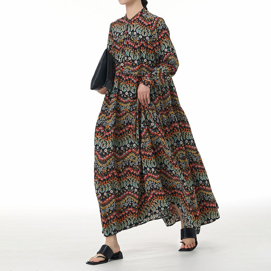 【商品名】【ワンピース】ボヘミアン風 レトロ ティアードワンピース 春夏新作 大きいサイズ レディース ゆったり 長袖 体型カバー ロングワンピース【SHシリーズ】