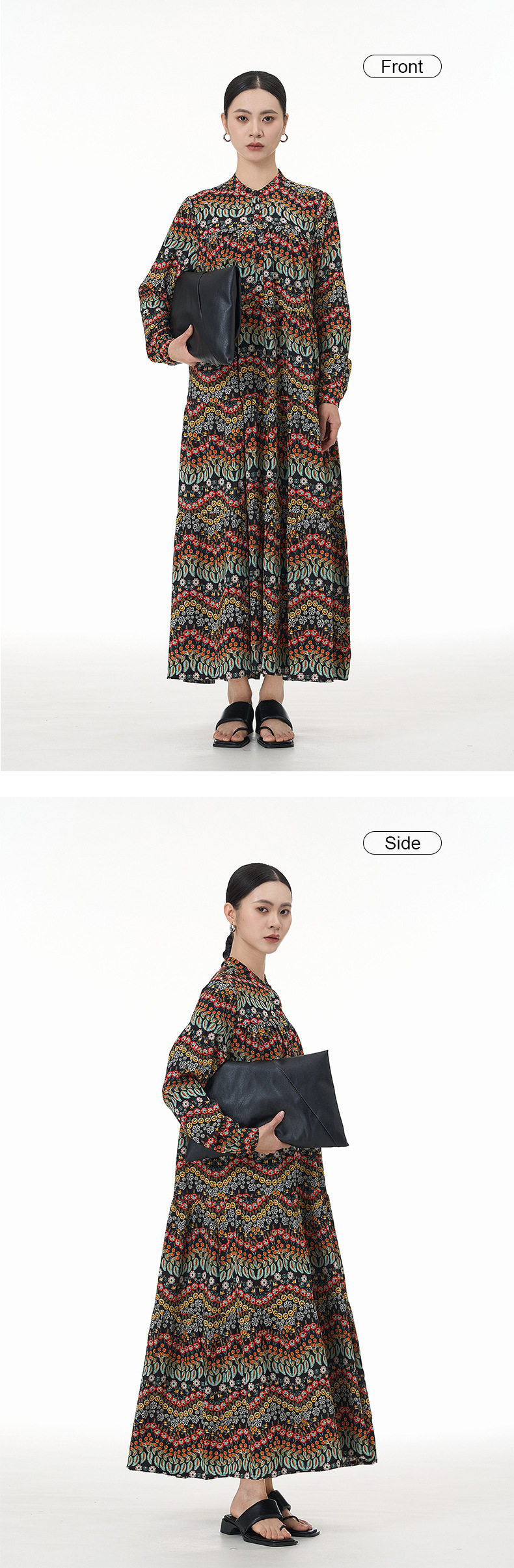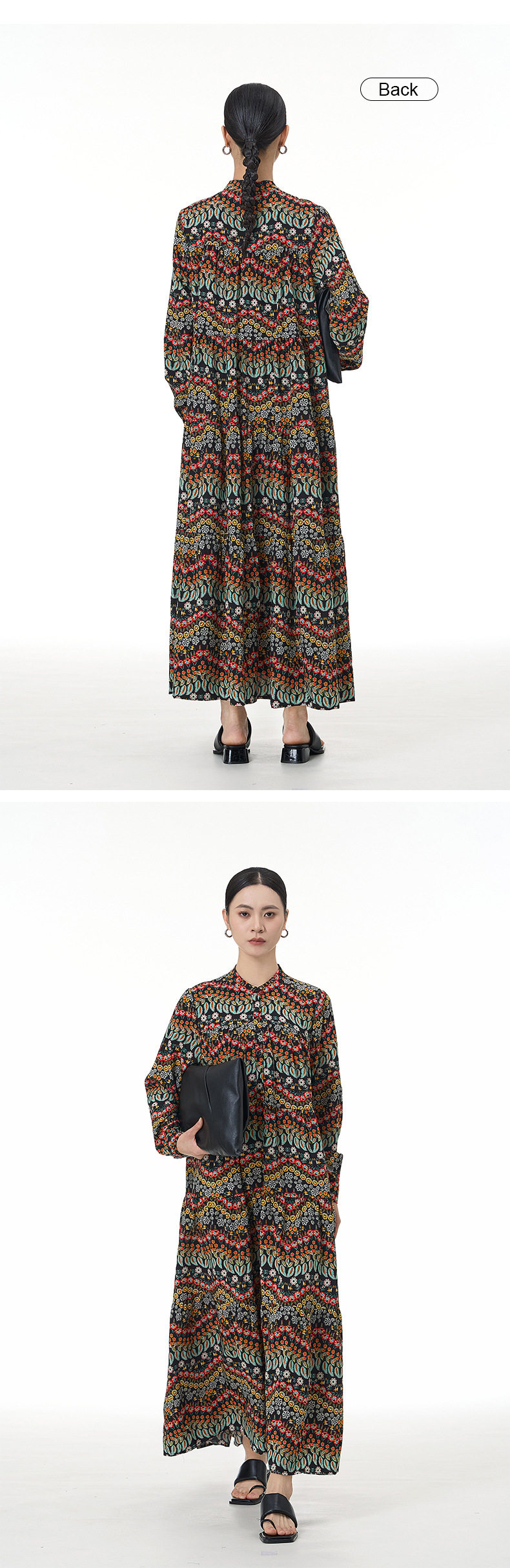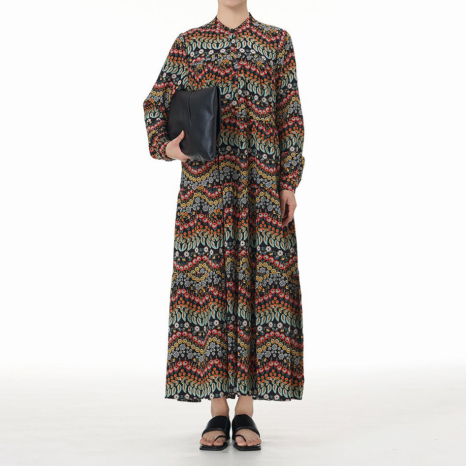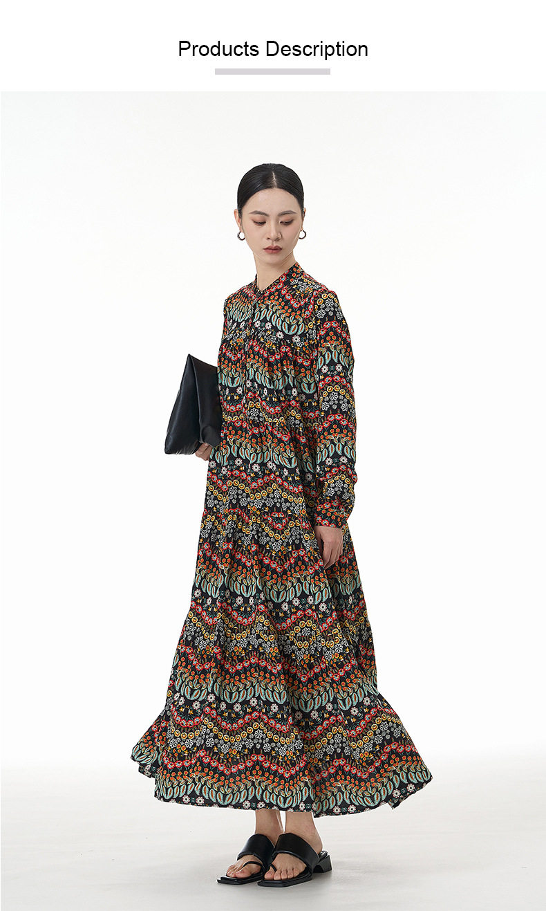 【商品名】【ワンピース】ボヘミアン風 レトロ ティアードワンピース 春夏新作 大きいサイズ レディース ゆったり 長袖 体型カバー ロングワンピース【SHシリーズ】