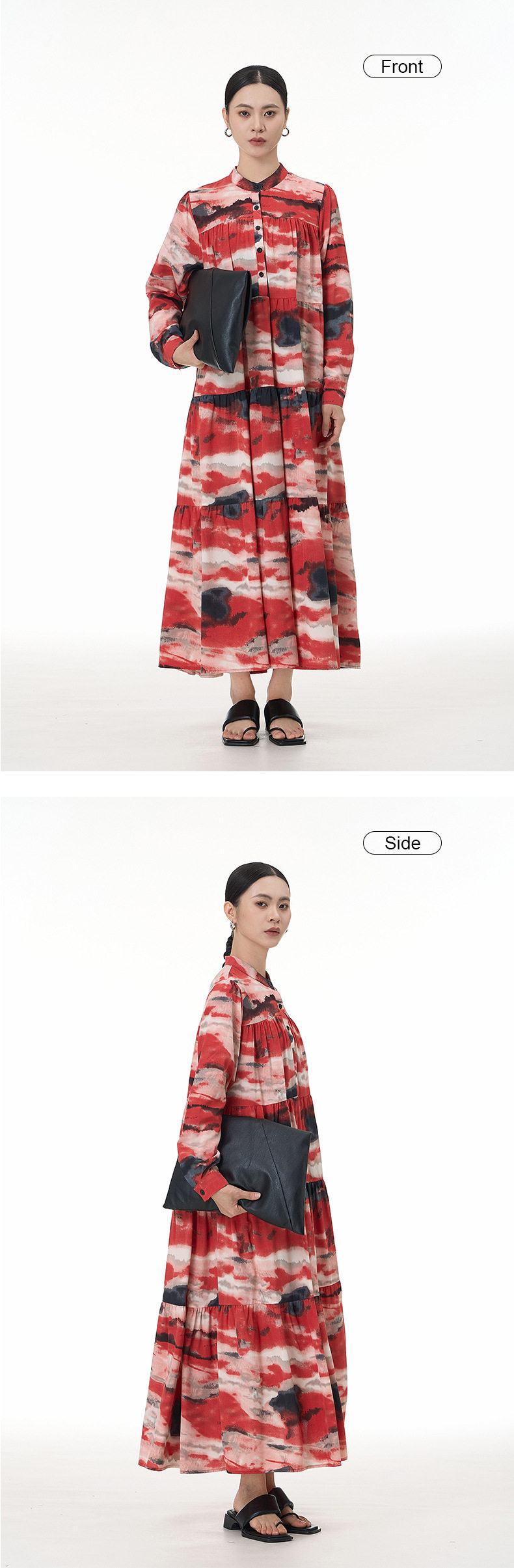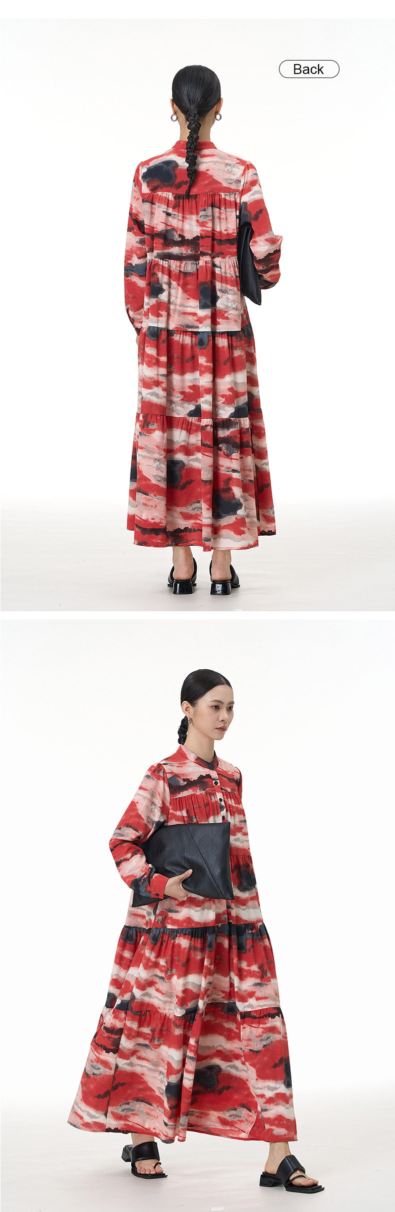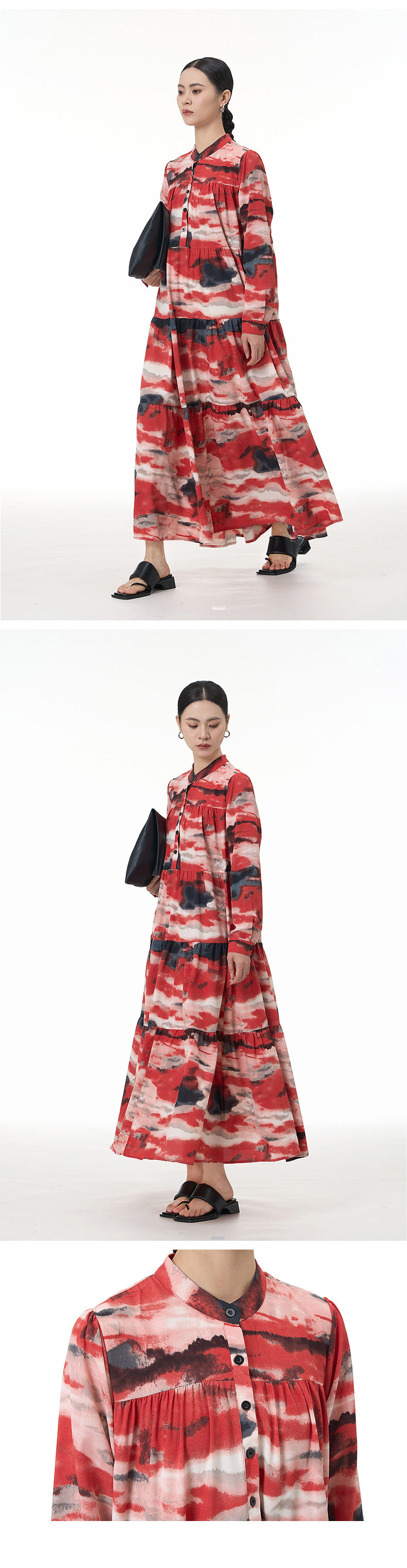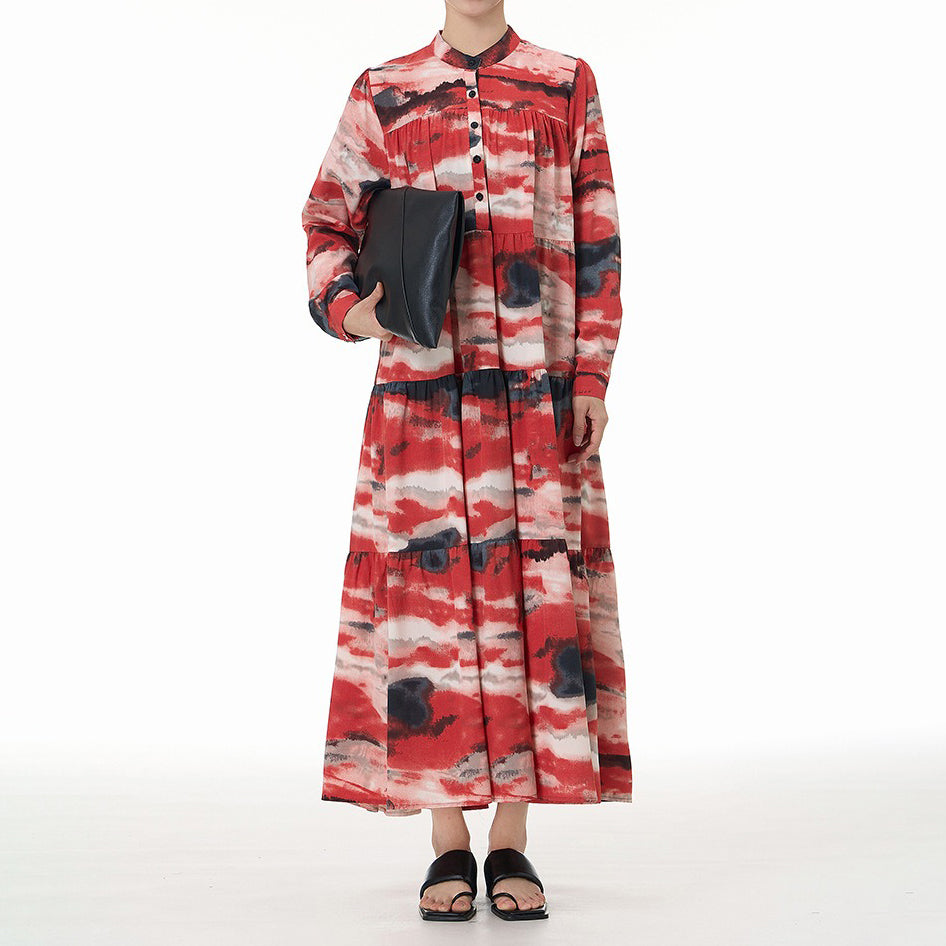 【ワンピース】ヴィンテージ風 ティアードワンピース 春夏新作 大きいサイズ レディース ルーズシルエット 長袖 着痩せ効果 バカンス・お出かけ向け ロングワンピース【SHシリーズ】