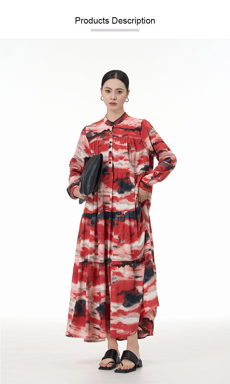 【商品名】【ワンピース】ヴィンテージ風 ティアードワンピース 春夏新作 大きいサイズ レディース ルーズシルエット 長袖 着痩せ効果 バカンス・お出かけ向け ロングワンピース【SHシリーズ】