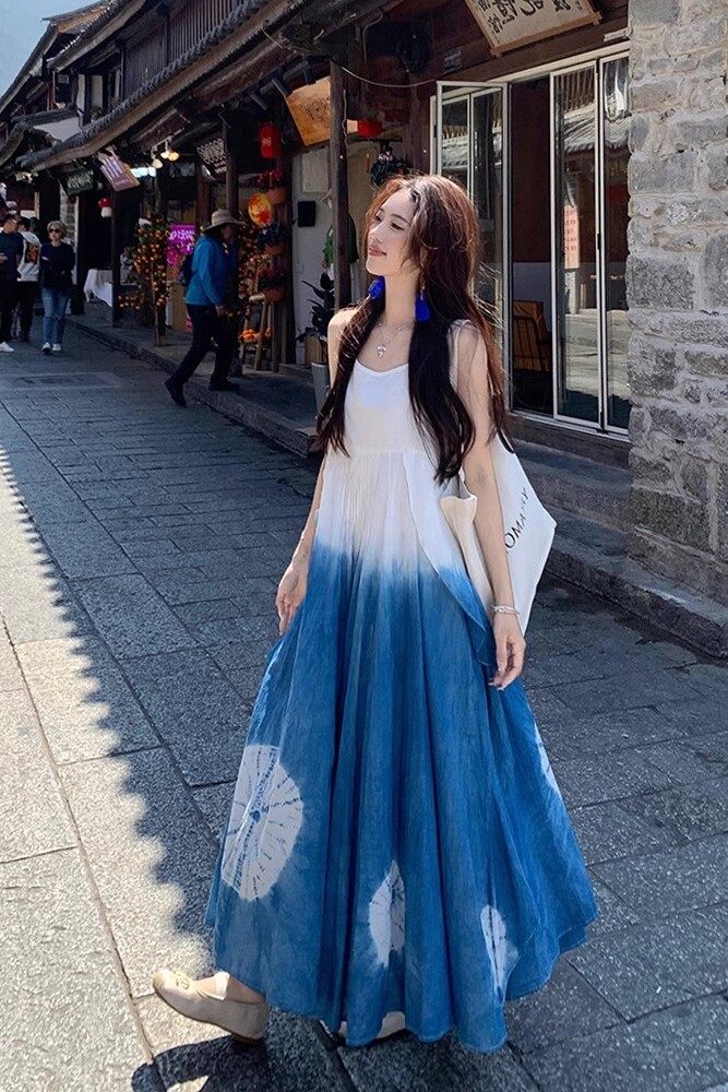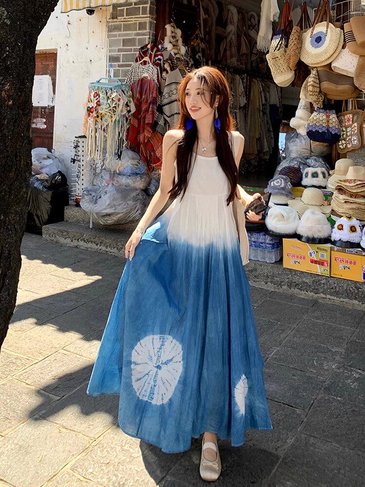 期間限定⭐️60%OFF【ワンピース】海辺 リゾート風 上品 新作 絞り染め Aライン ワンピース【SHシリーズ】