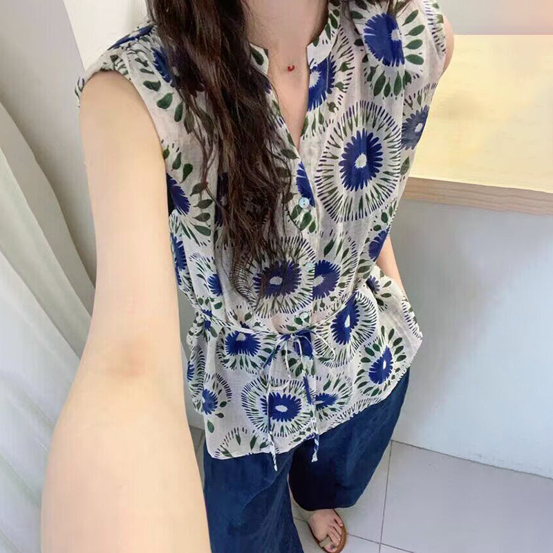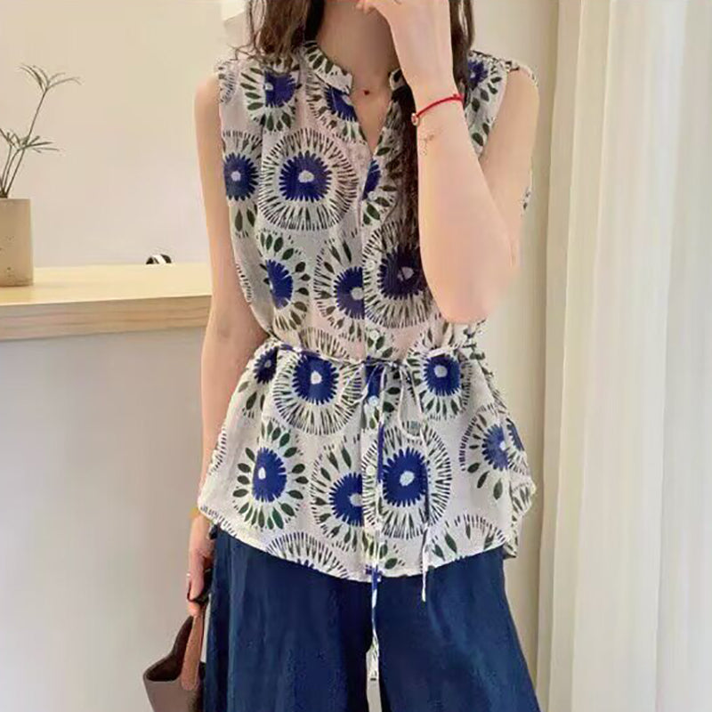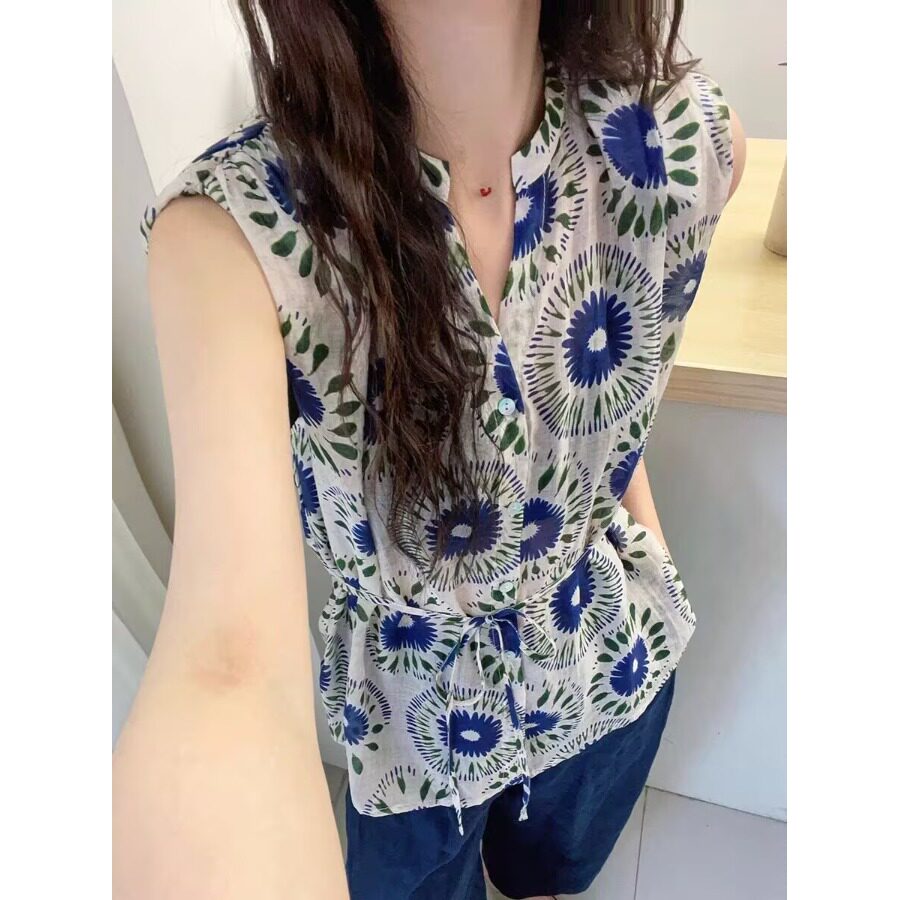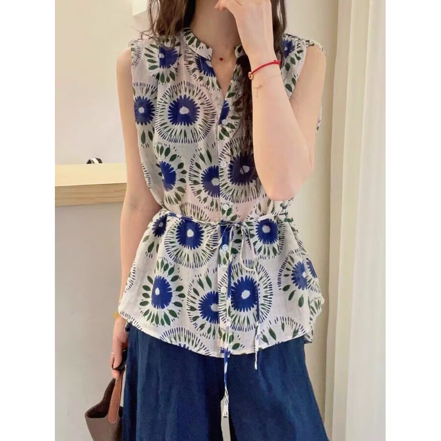 期間限定⭐️60%OFF【トップス】ボヘミアン リゾート風 レトロ ノースリーブシャツ レディース 夏新作 軽量 通気性 ウエストマーク 体型カバー ナチュラル カジュアル サマートップス【SHシリーズ】