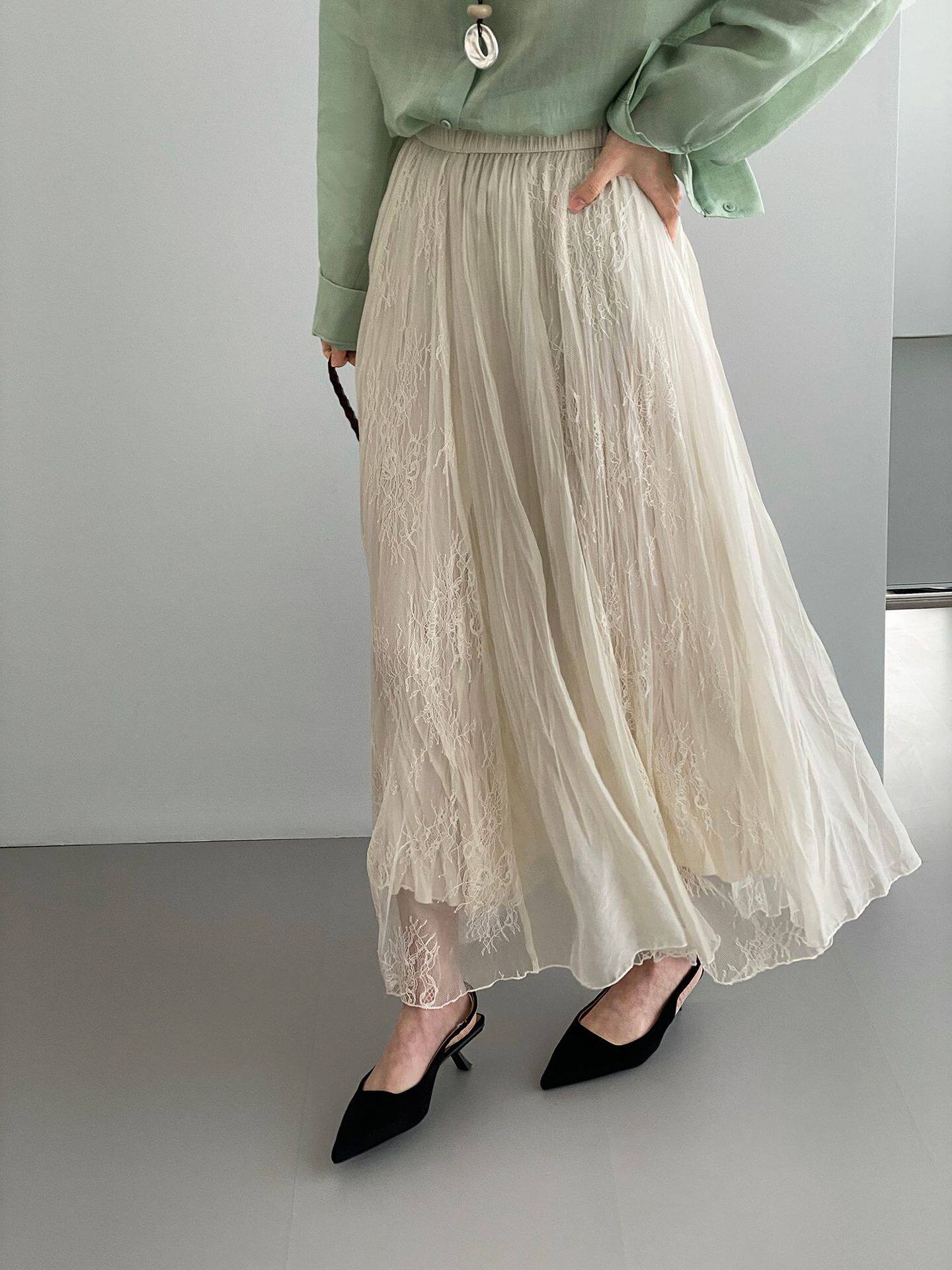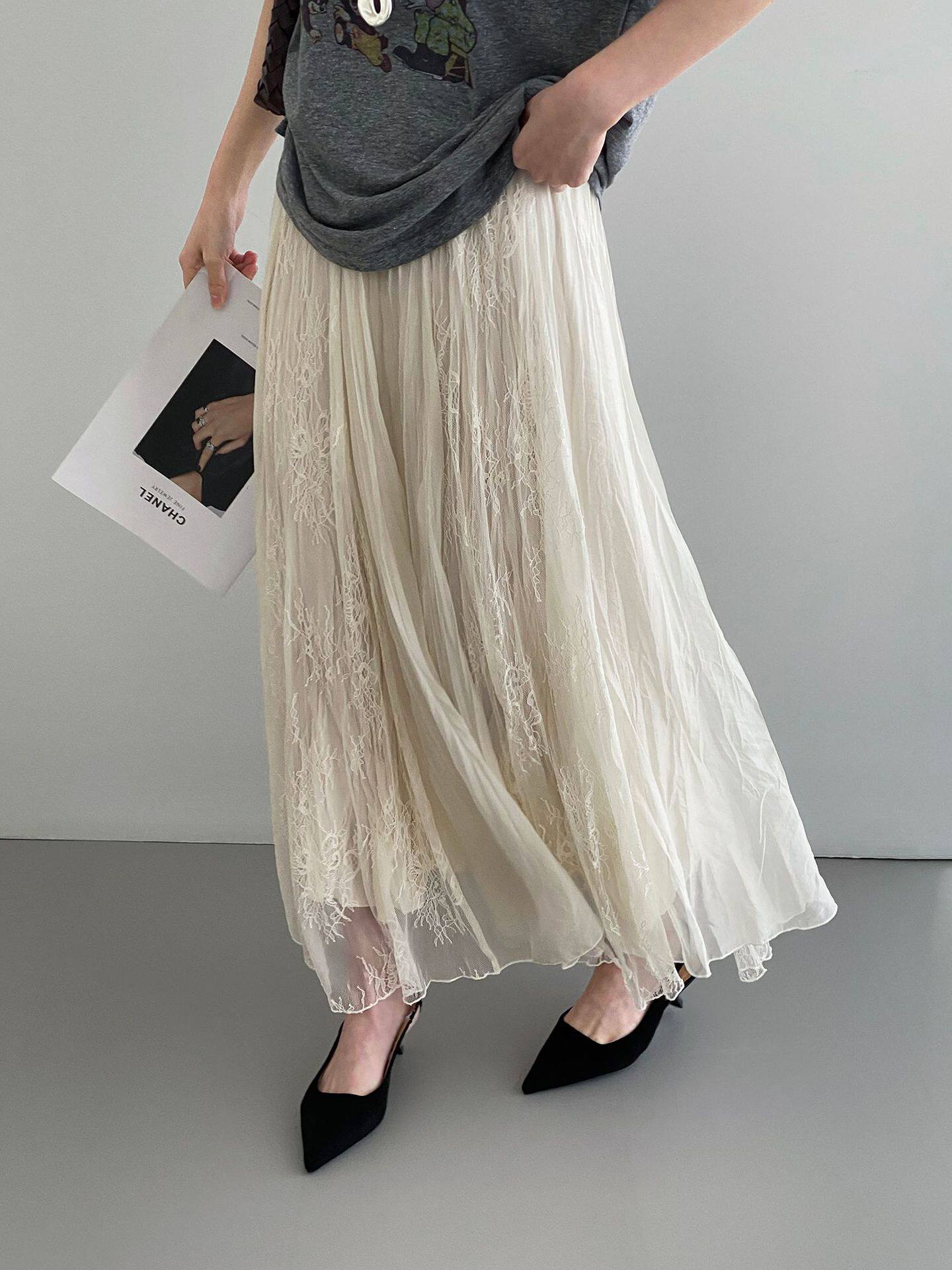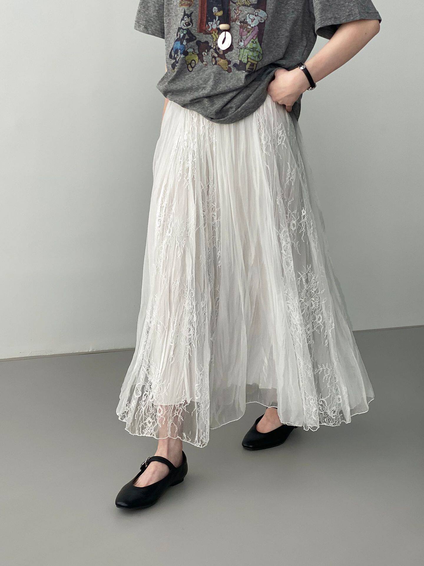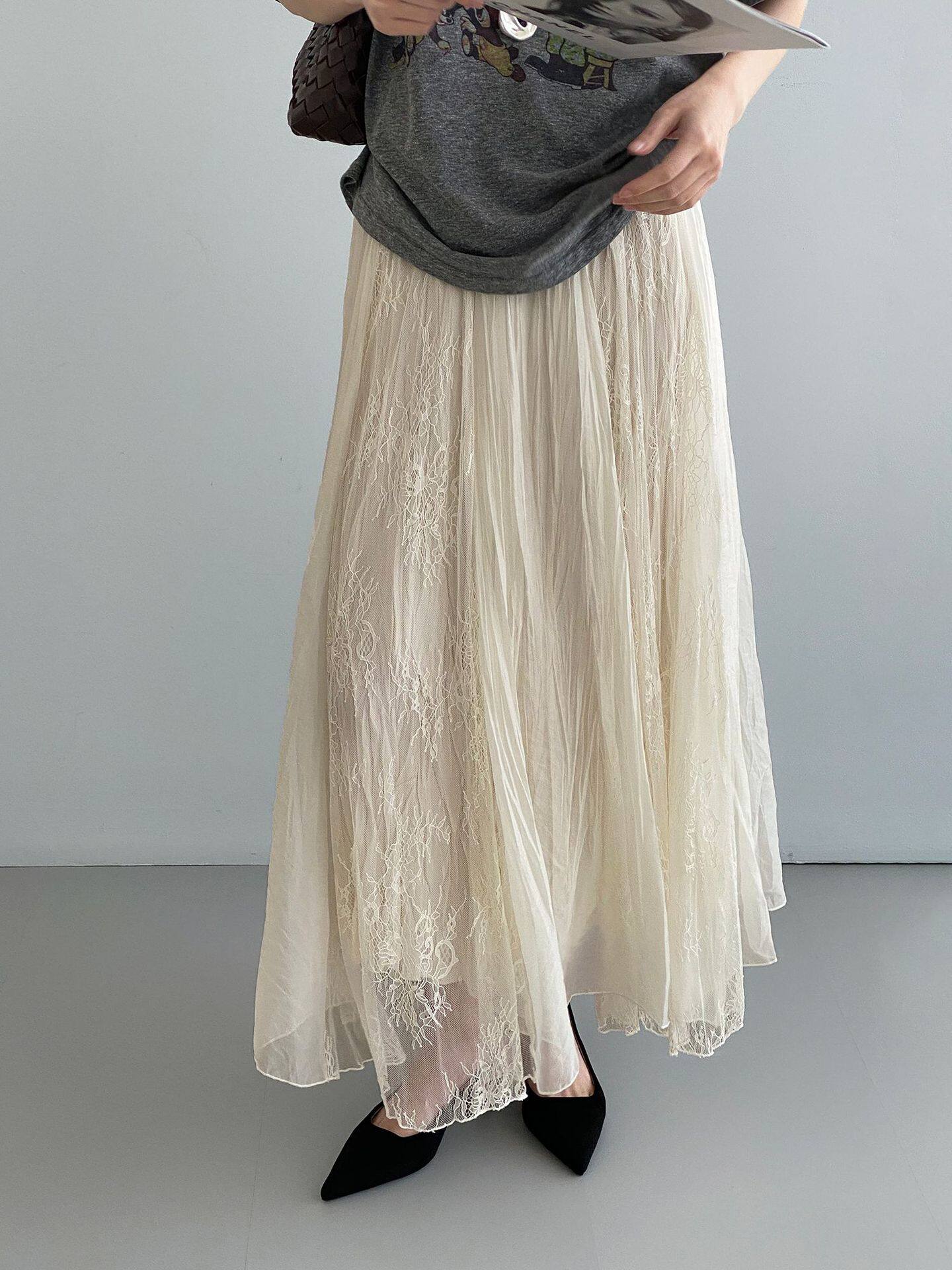 【ボトムス】シークレットガーデン風 レース リゾート風 Aライン ヒップカバー ロングスカート 【JZシリーズ】