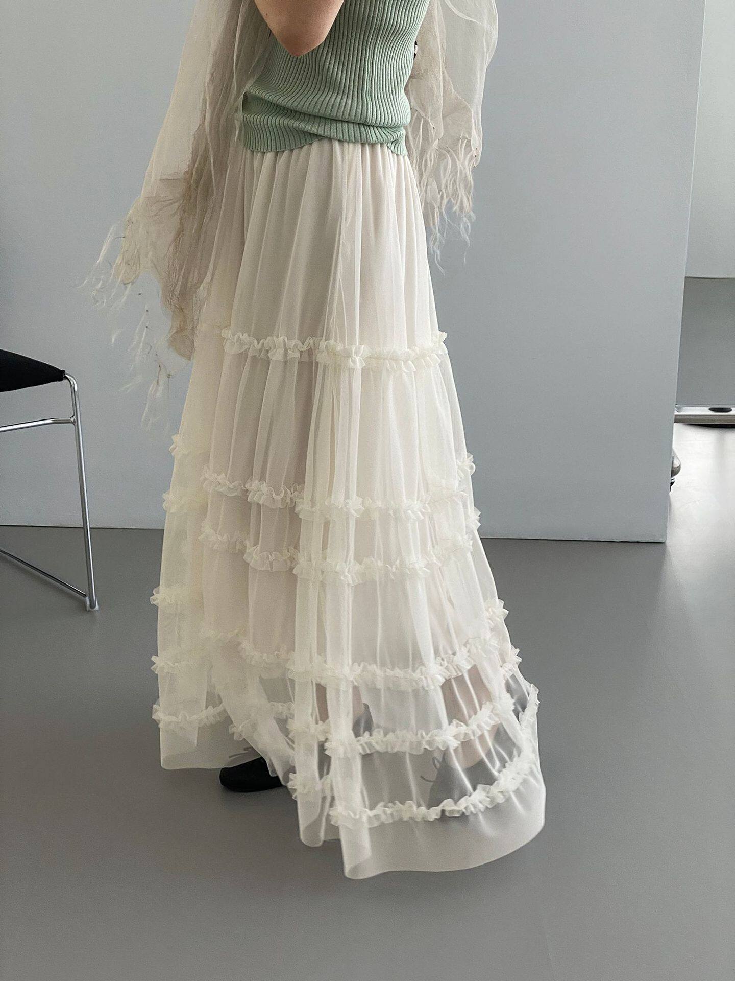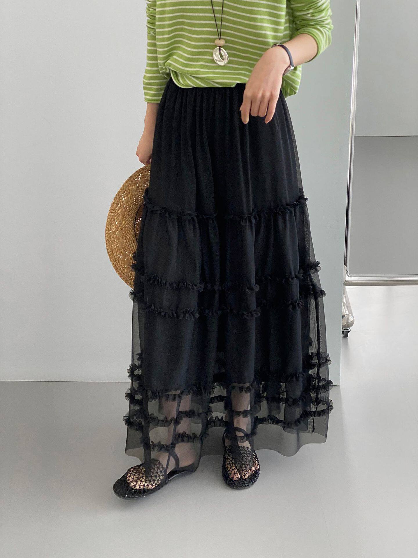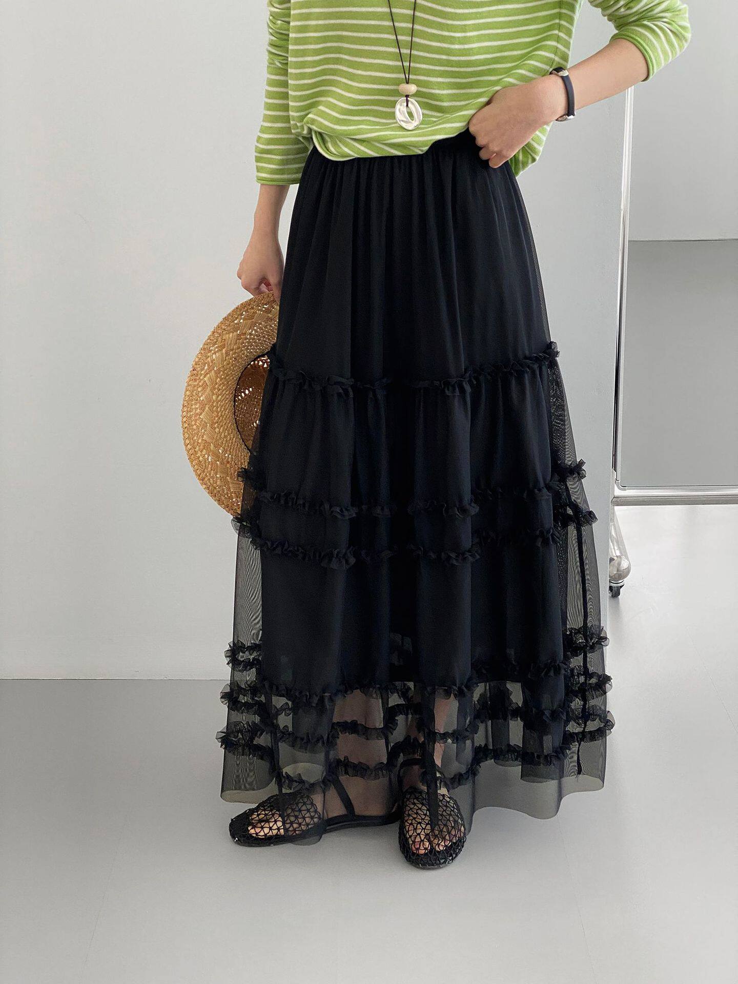 期間限定⭐️60%OFF【ボトムス】韓国風 フリル チュール切替 ロングスカート 【JZシリーズ】