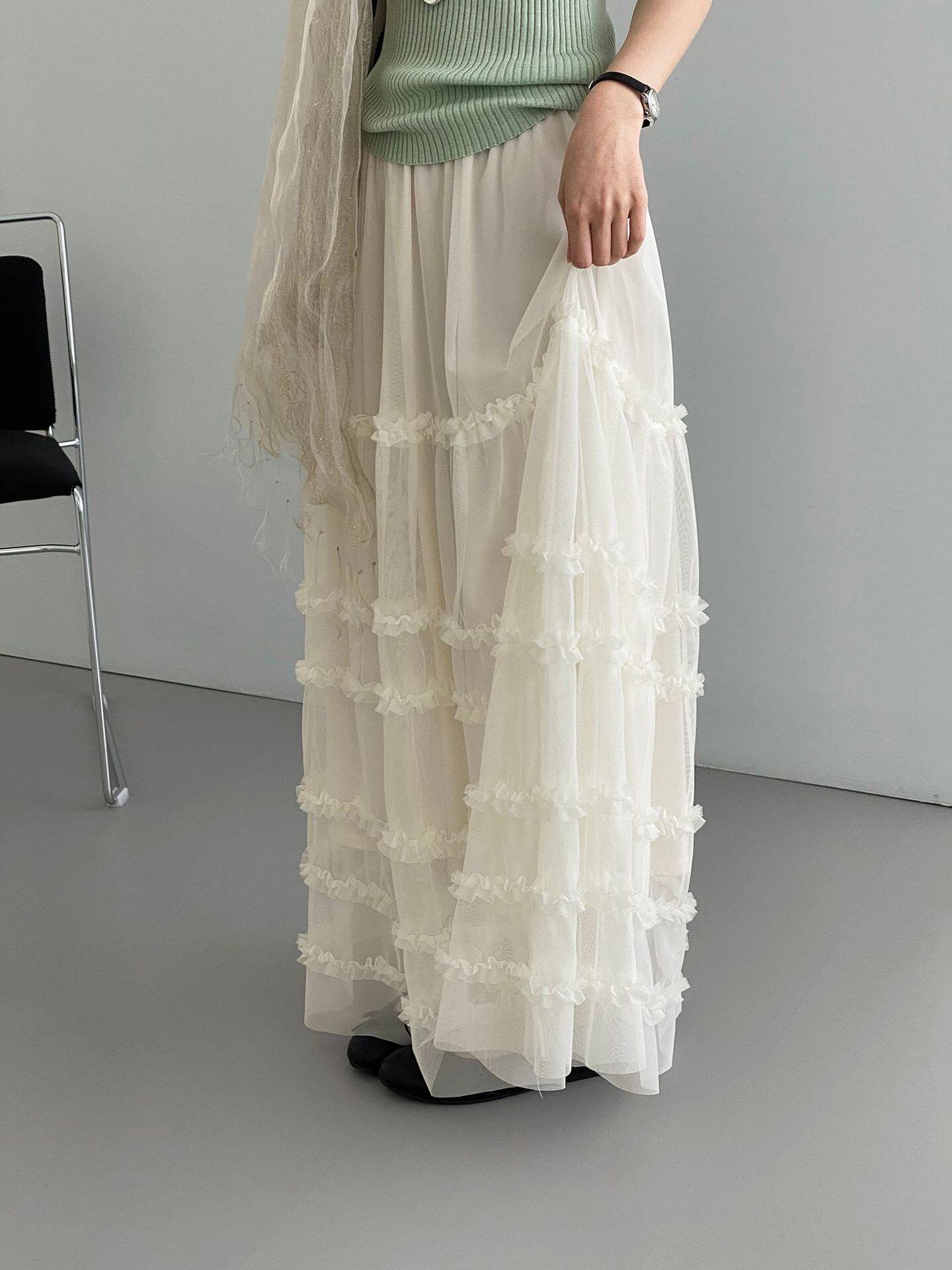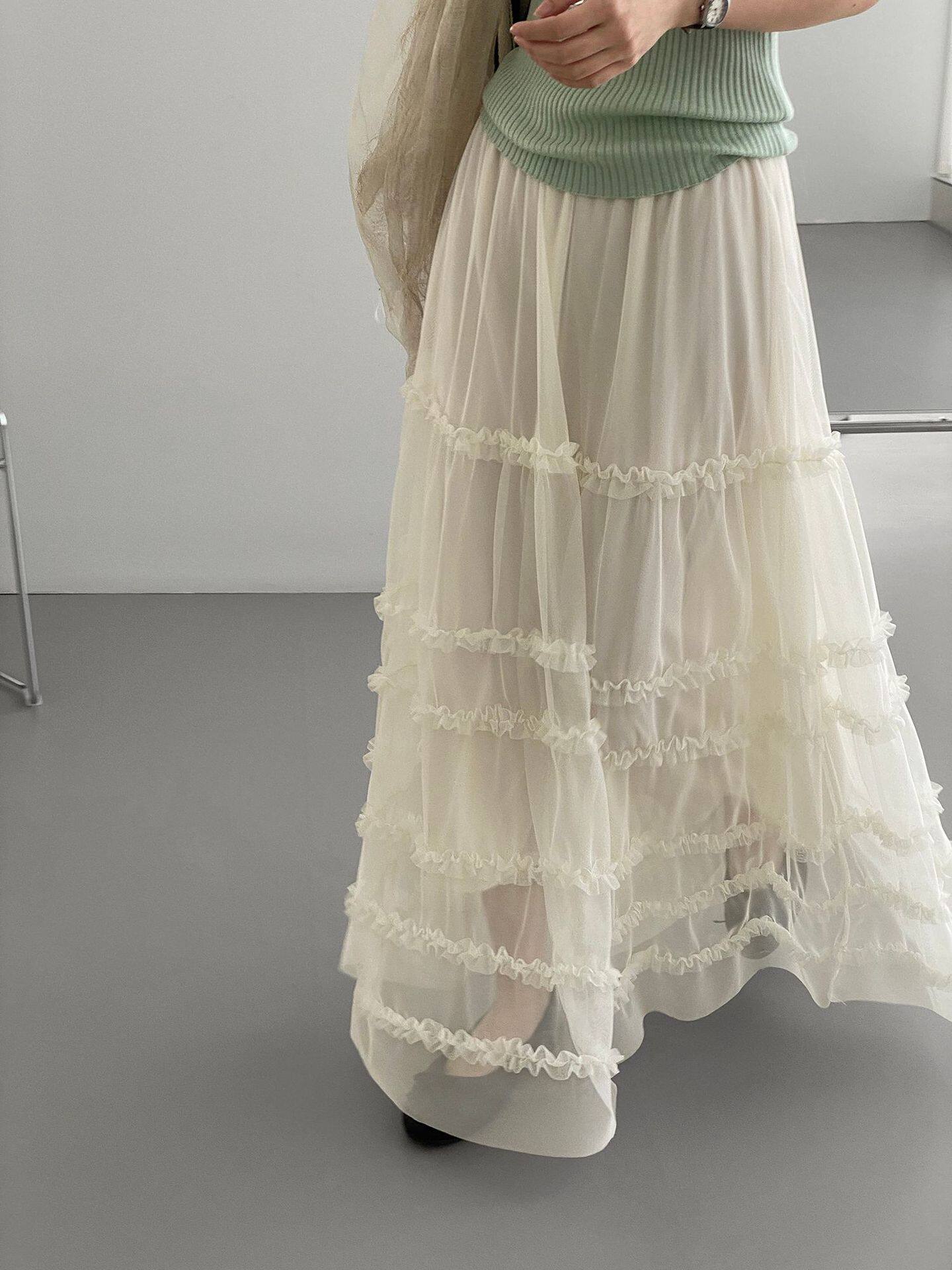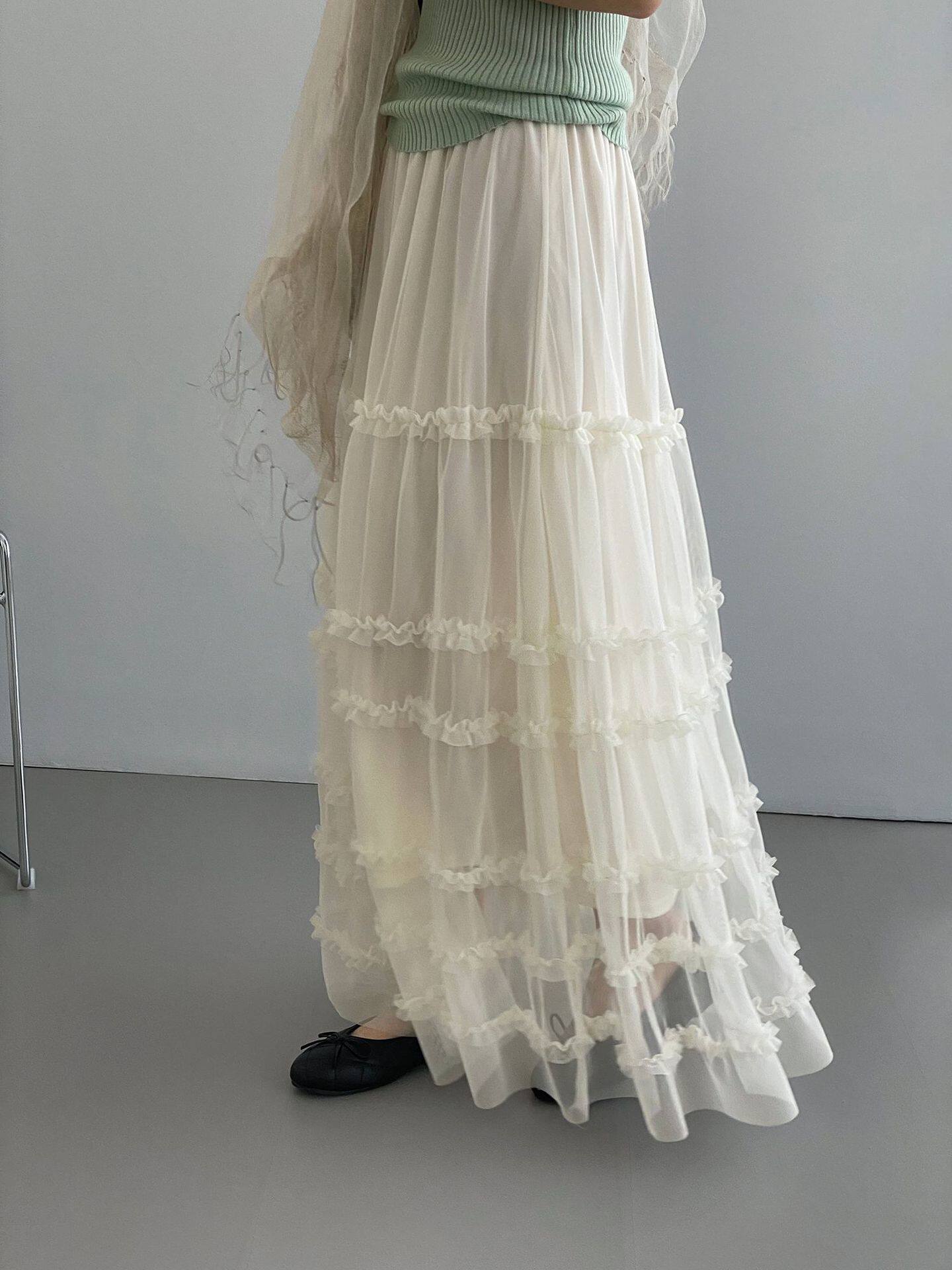 期間限定⭐️60%OFF【ボトムス】韓国風 フリル チュール切替 ロングスカート 【JZシリーズ】
