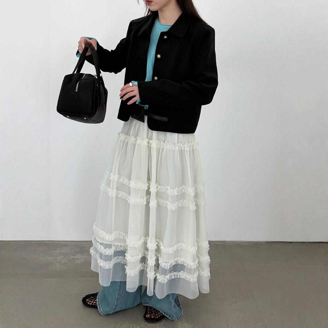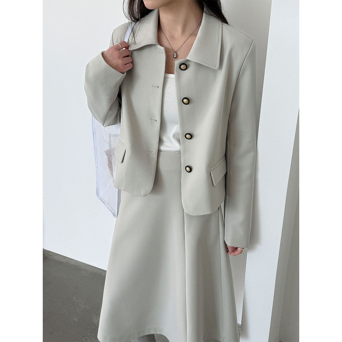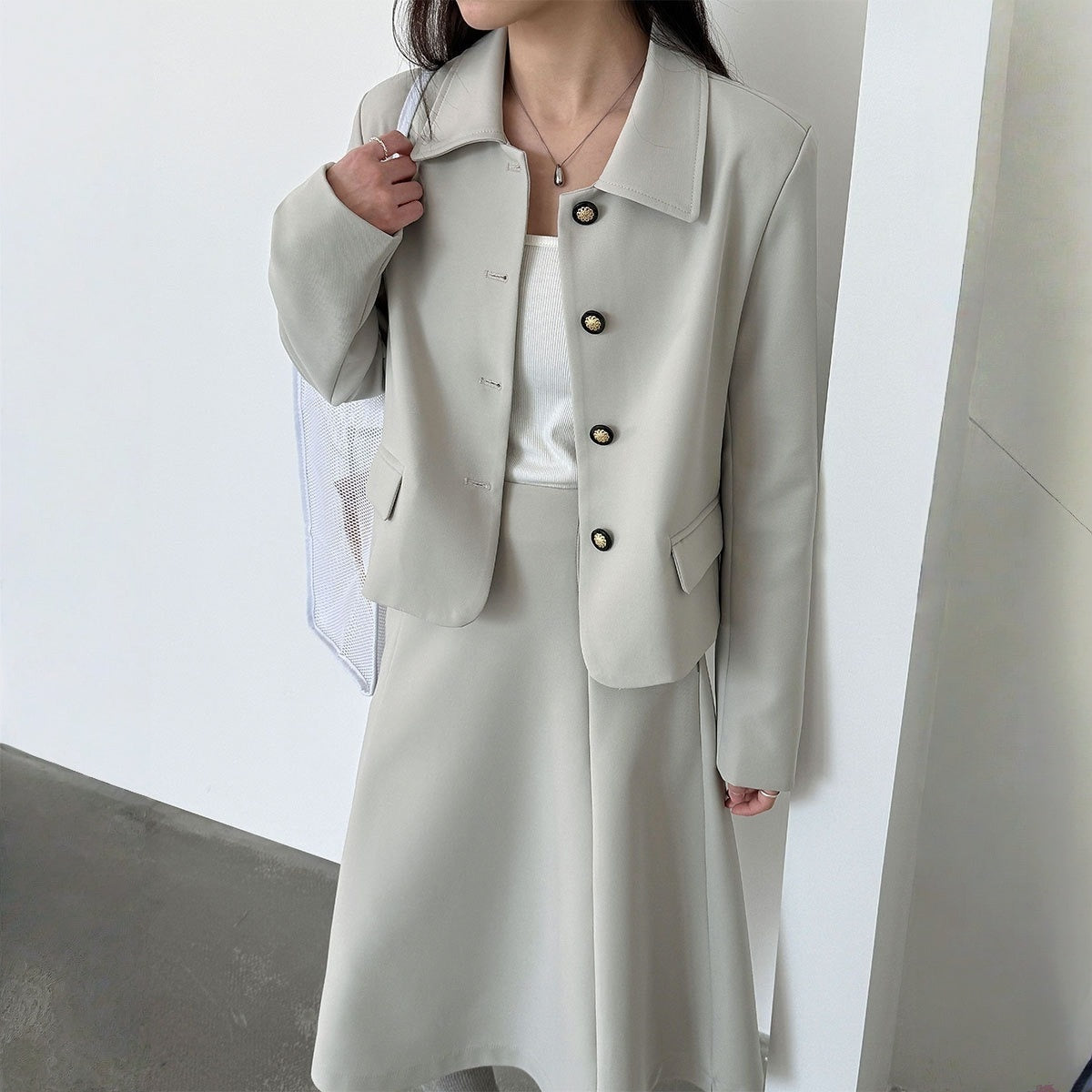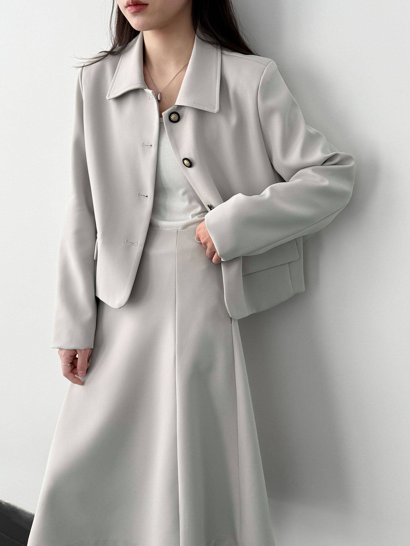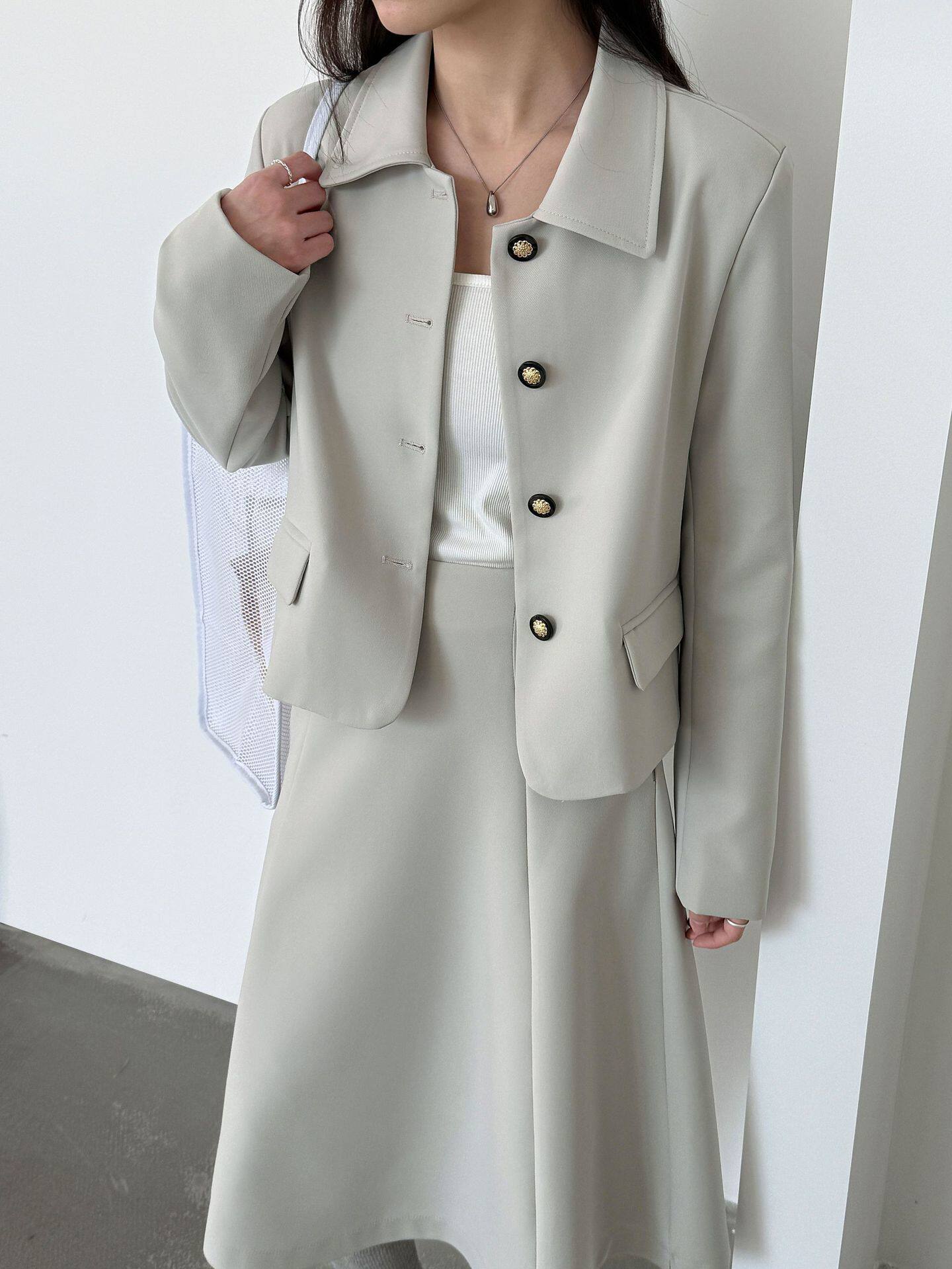 【アウター】韓国風 シャネル風 ジャケット+ プリーツスカート 2点上下セット 【JZシリーズ】