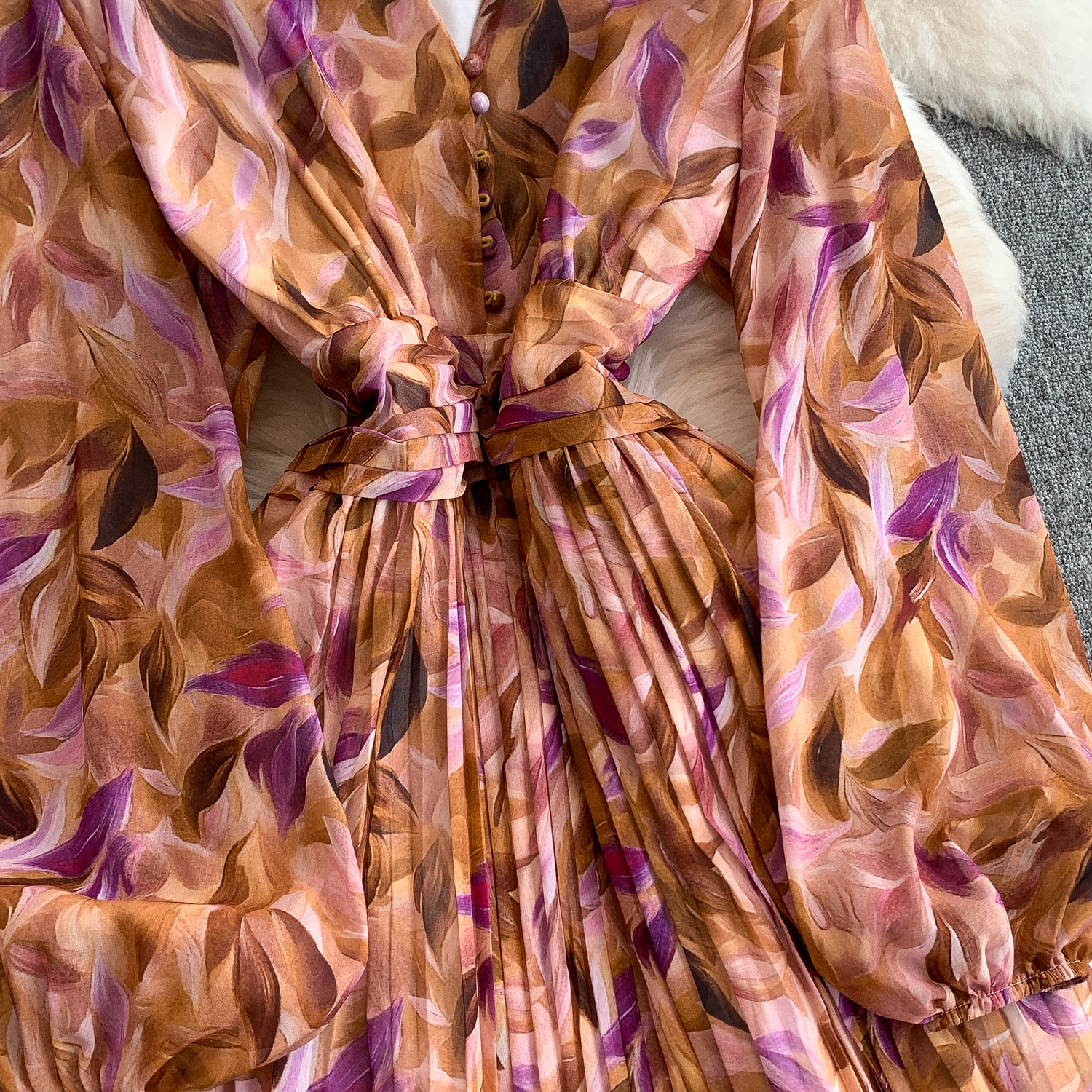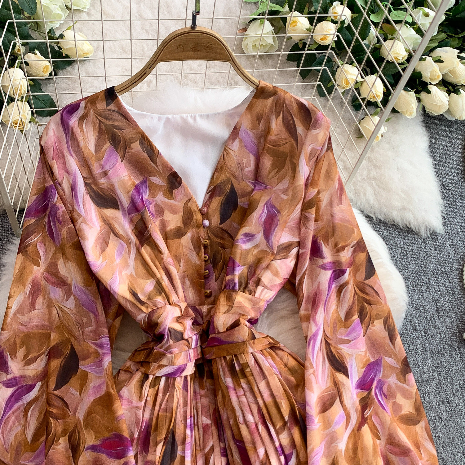 【ワンピース】大人フェミニン♡フレンチレトロ 長袖 花柄ワンピース|ウエストマーク&パフスリーブで細見え【SHシリーズ】
