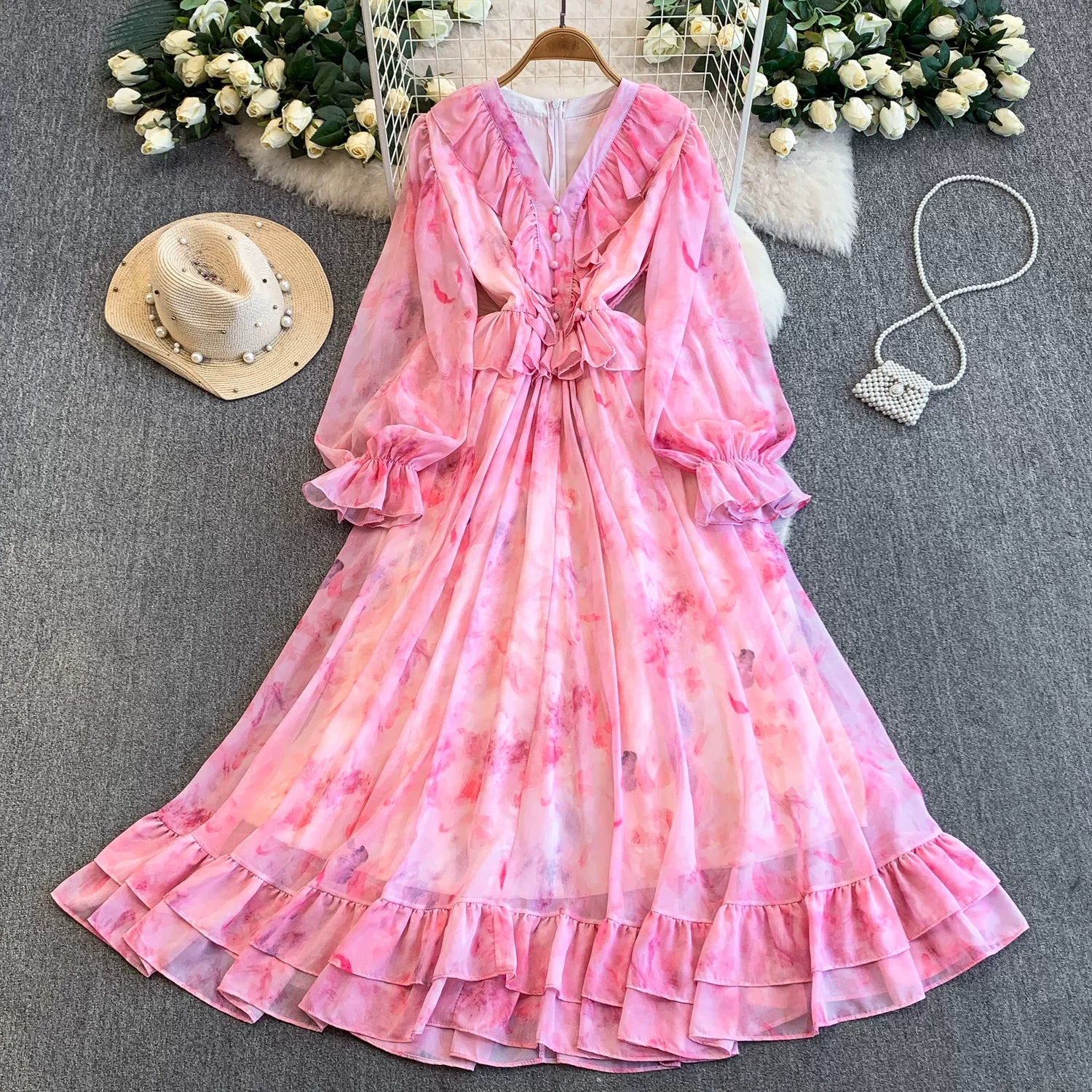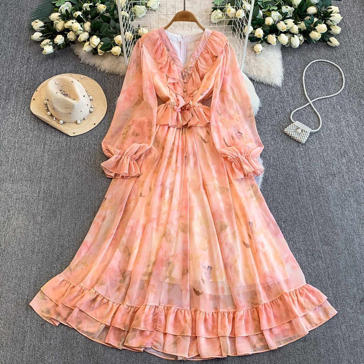 【商品名】【ワンピース】一歩先のお洒落♡ 大人フェミニン 長袖ワンピース|贅沢な揺れ感【SHシリーズ】