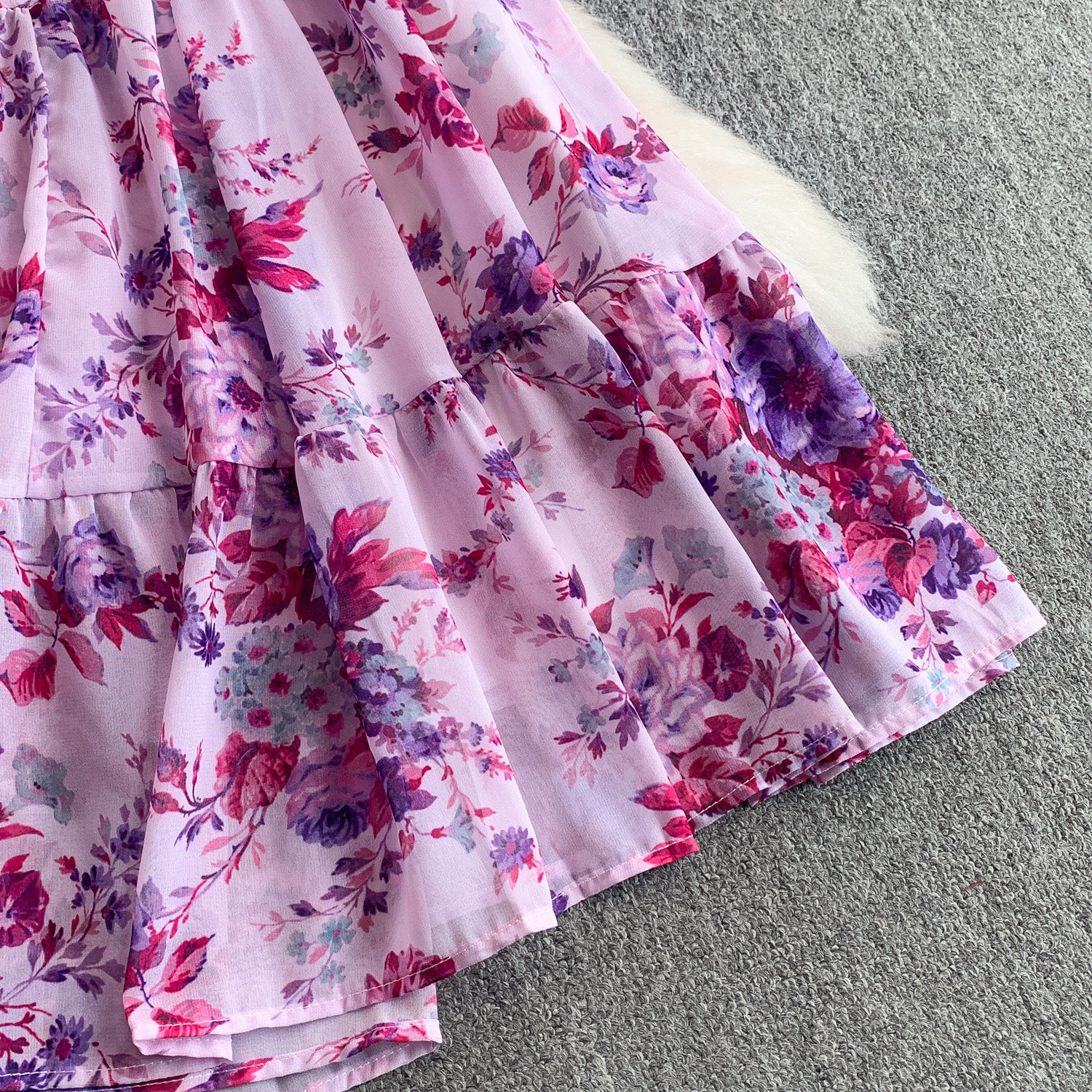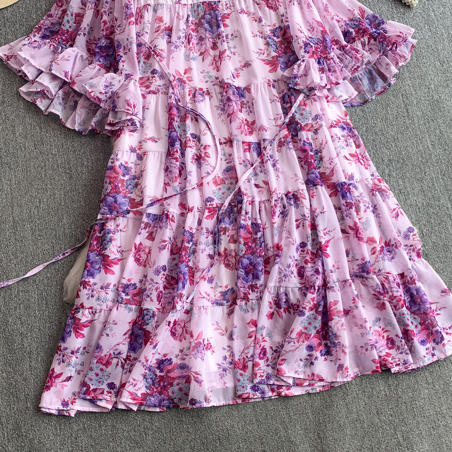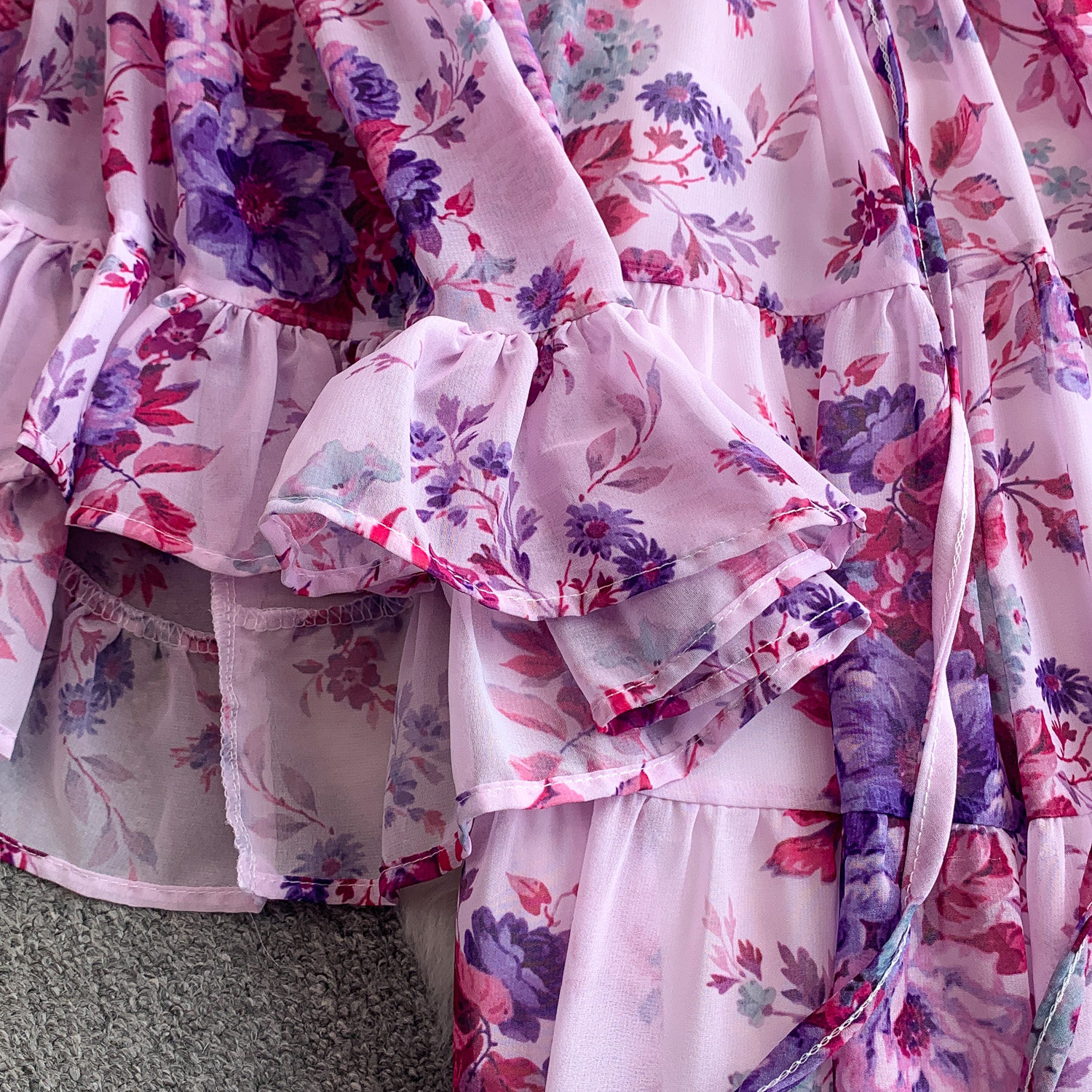 【商品名】【ワンピース】褒められ確定!フレンチ小衆 長袖 プリントロングワンピース|シフォン&ベルスリーブ【SHシリーズ】