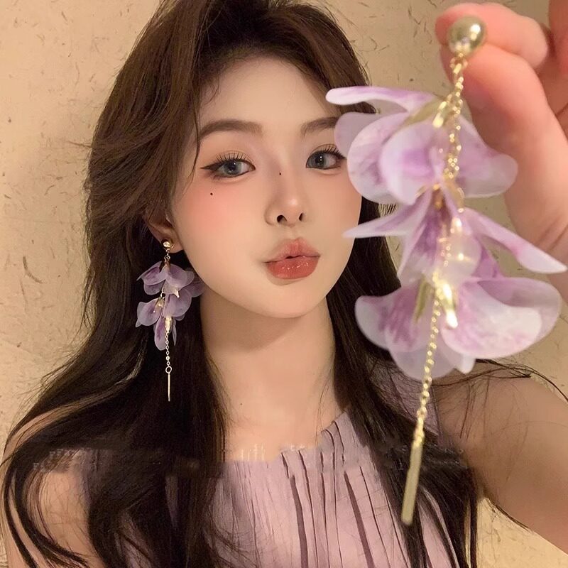 【商品名】【グッズ】S925銀針 チュールフラワー ロングピアス 上品華やか レディース アクセサリー【SHシリーズ】
