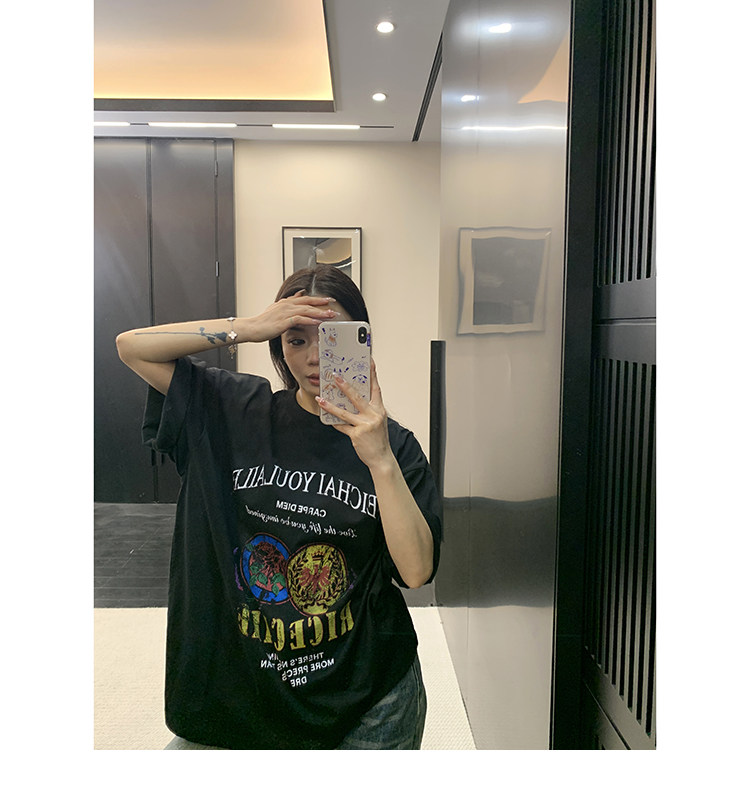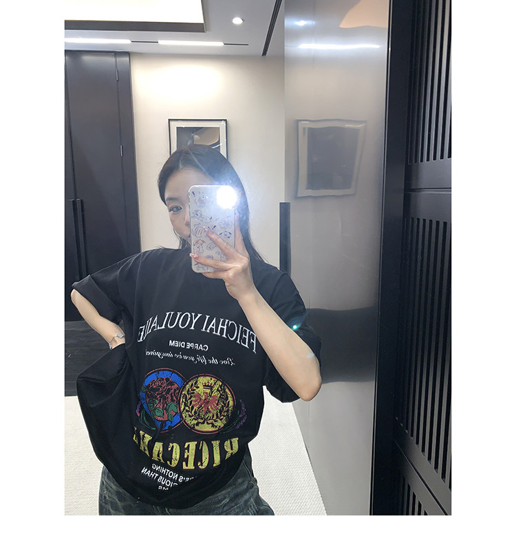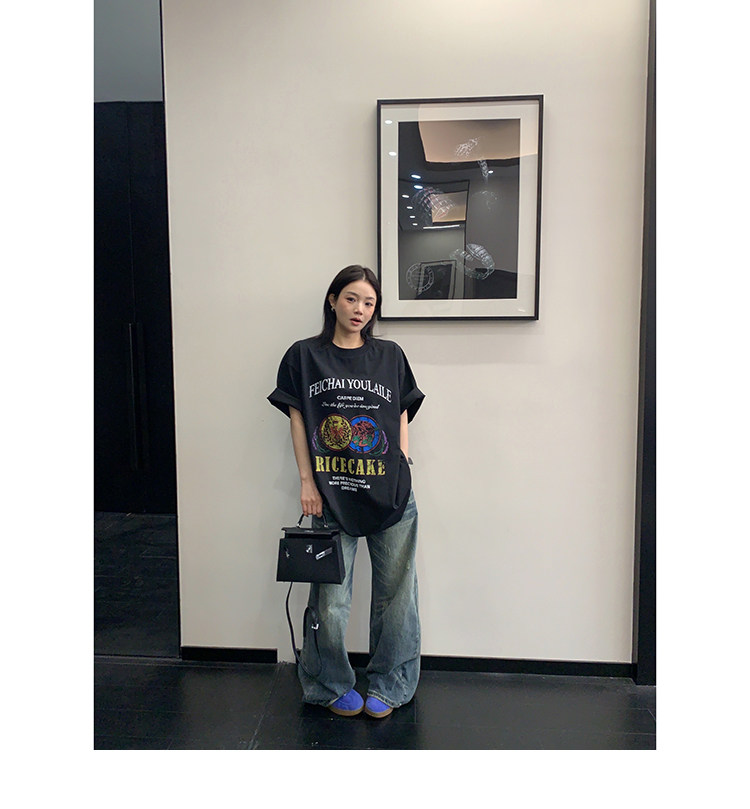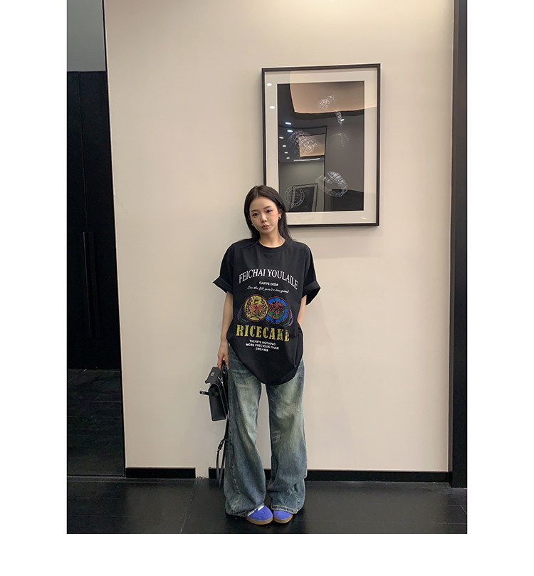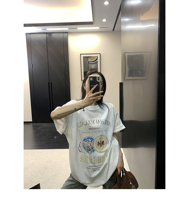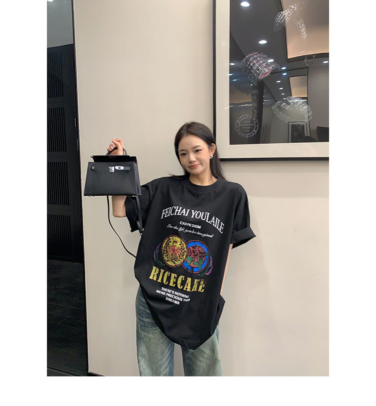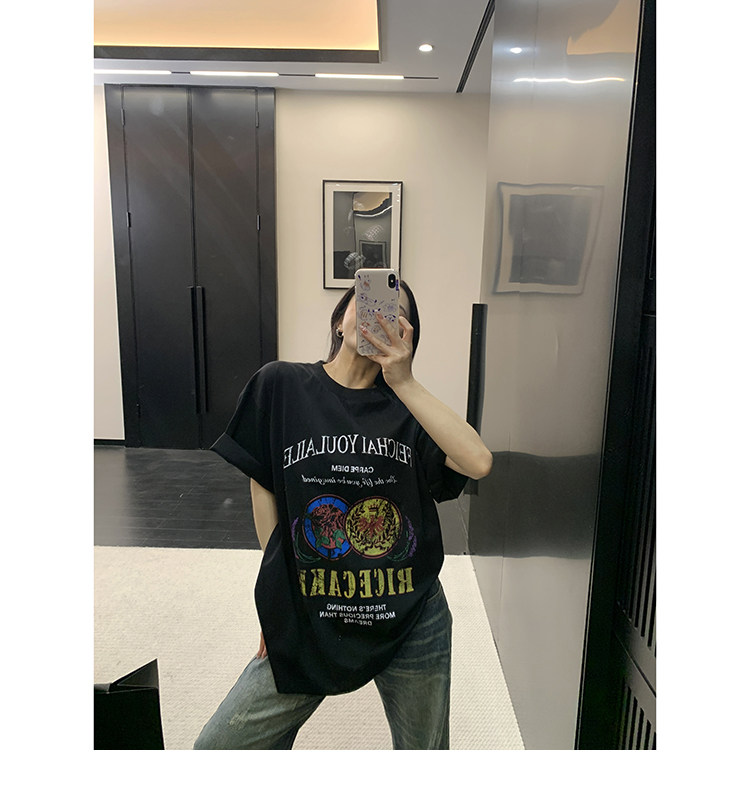 【商品名】【トップス】デザイン感 カートゥーングラフィックTシャツ 薄手 半袖 オーバーサイズ ルーズシルエット 個性派カジュアル【FCシリーズ】