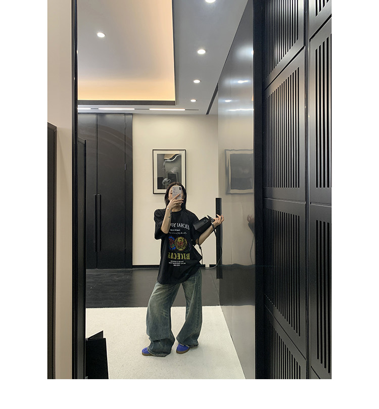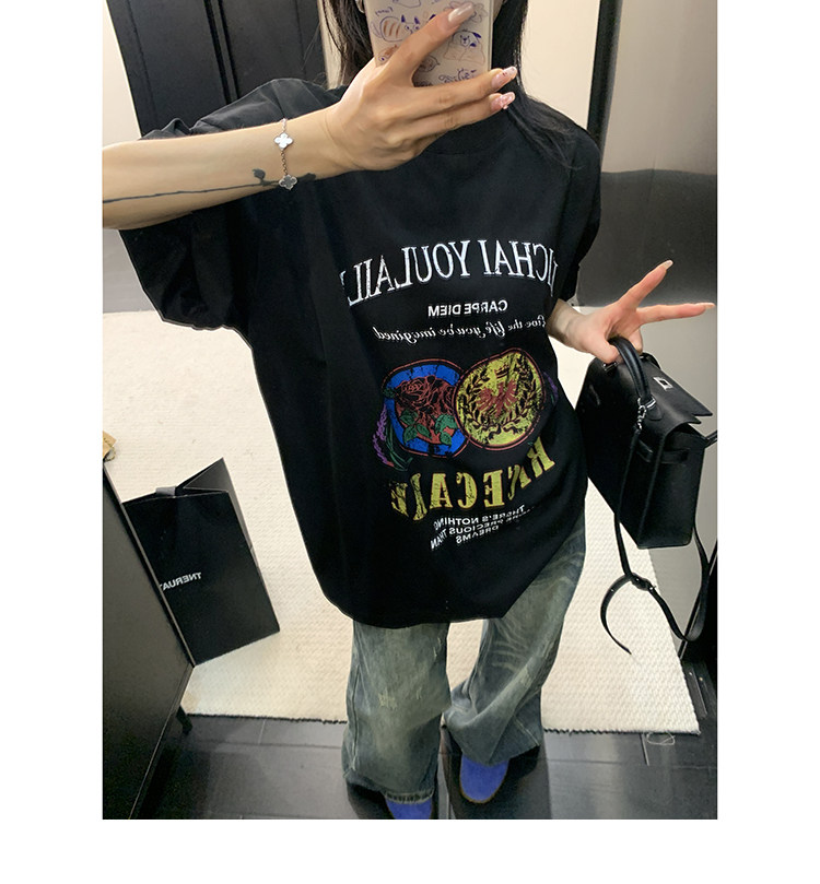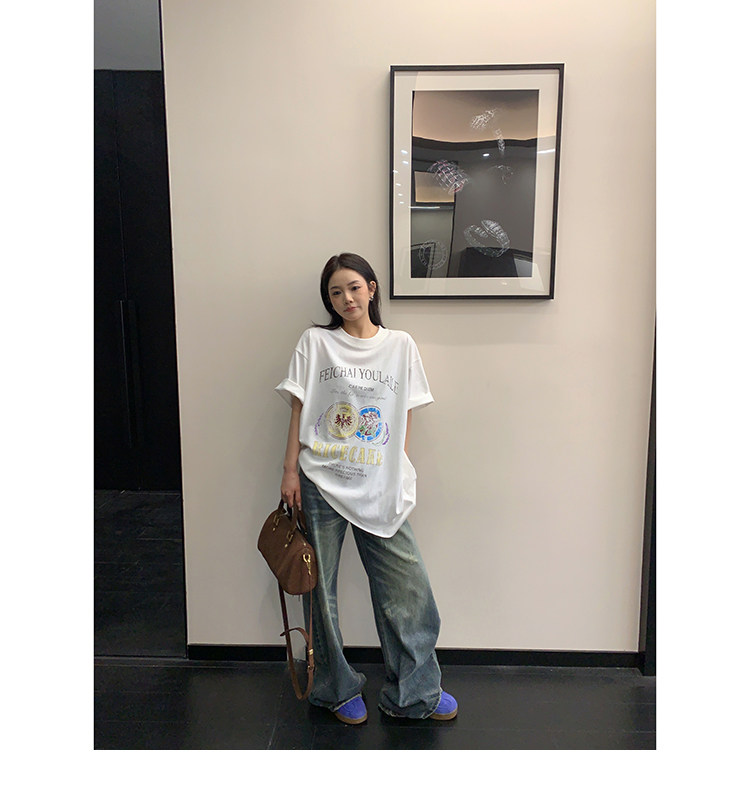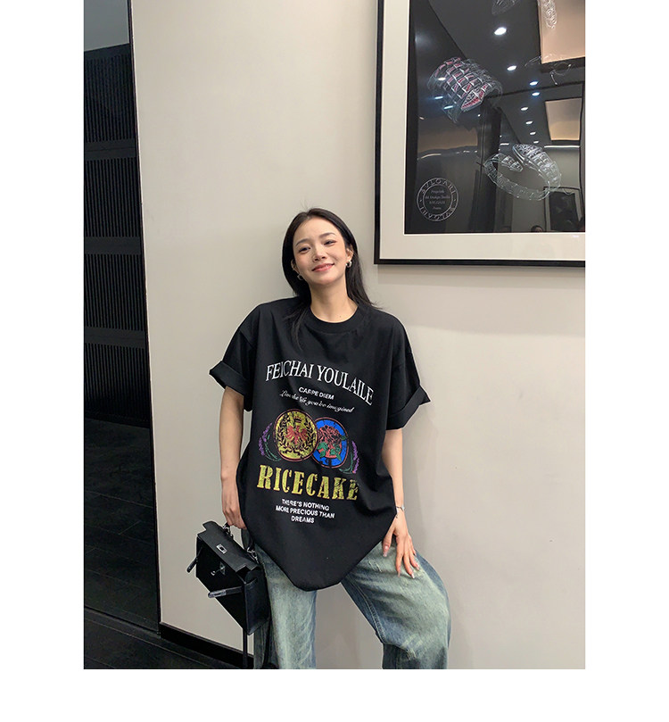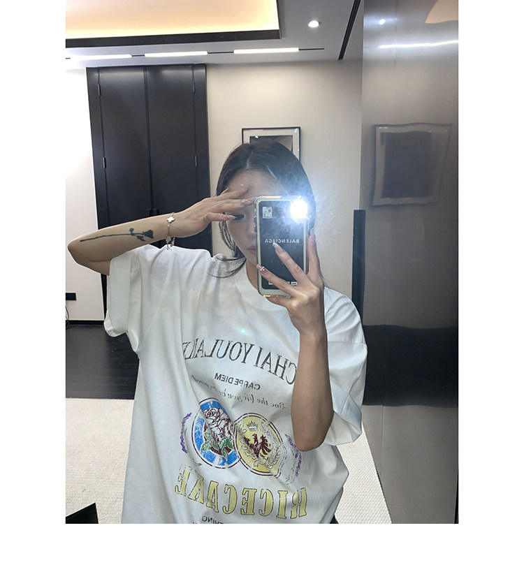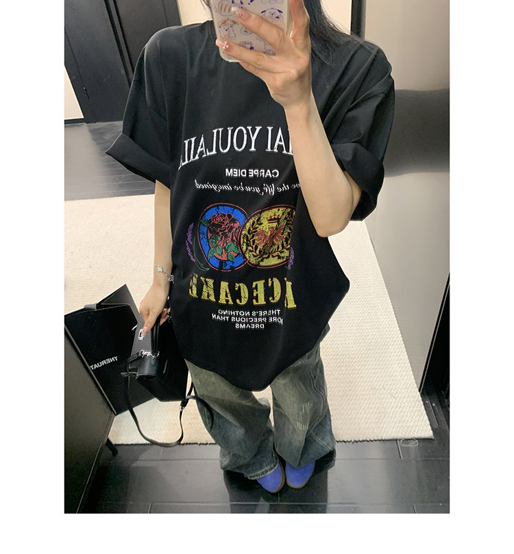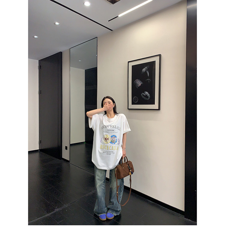 【商品名】【トップス】デザイン感 カートゥーングラフィックTシャツ 薄手 半袖 オーバーサイズ ルーズシルエット 個性派カジュアル【FCシリーズ】