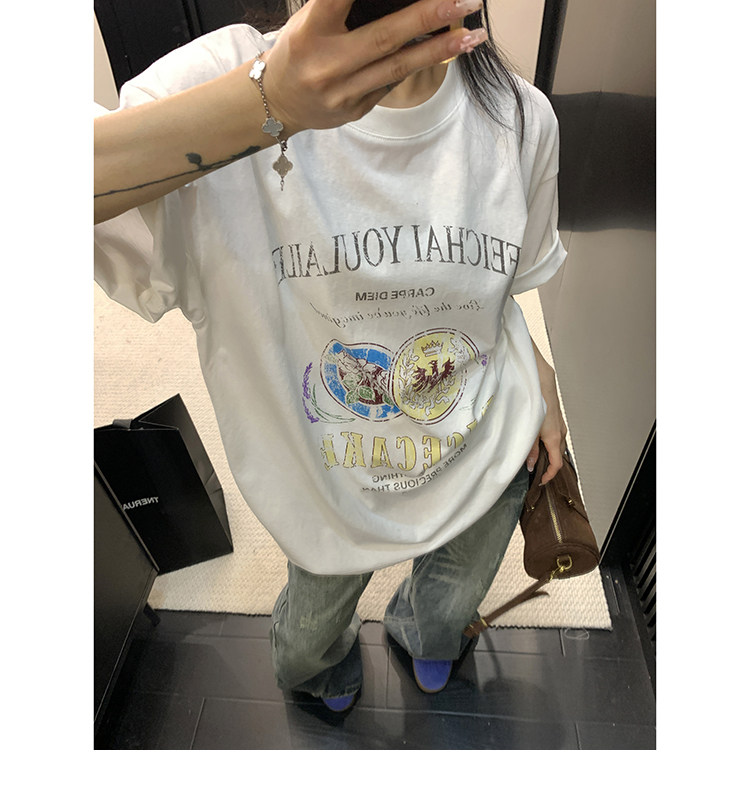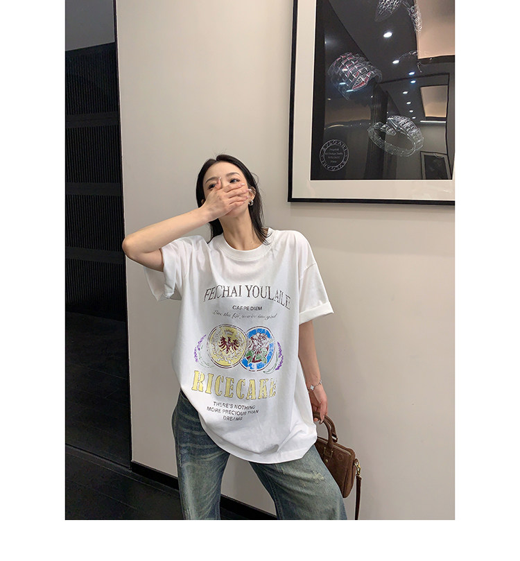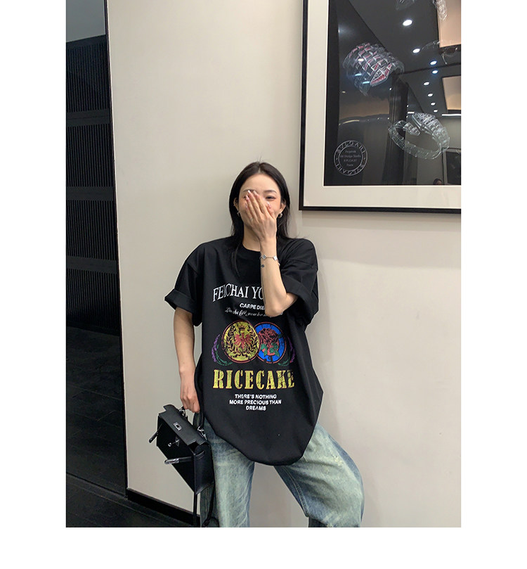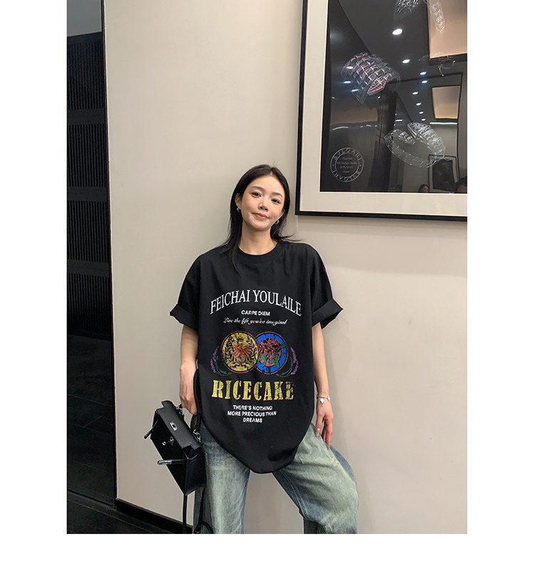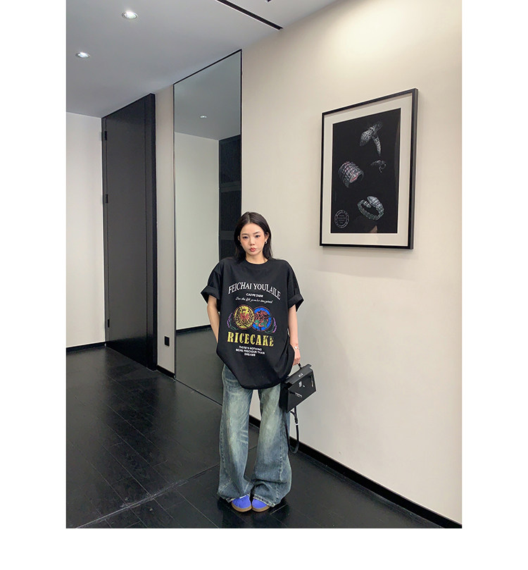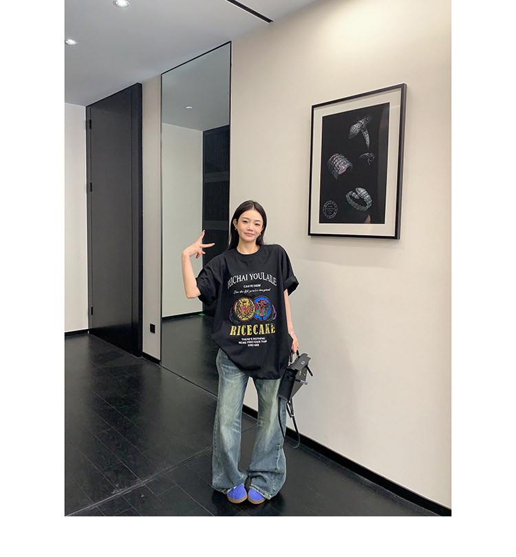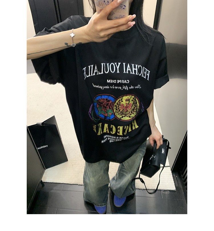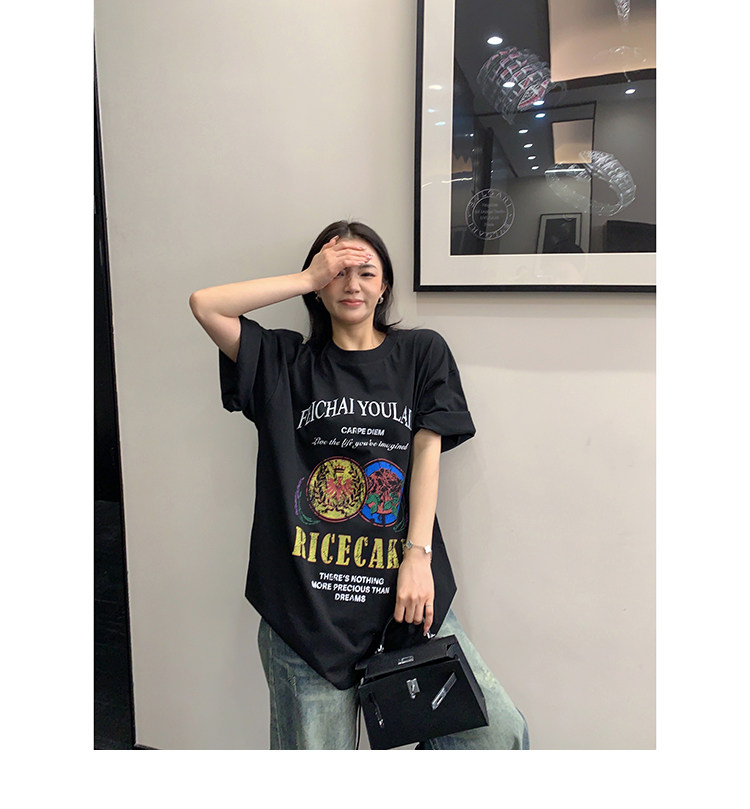 【トップス】デザイン感 カートゥーングラフィックTシャツ 薄手 半袖 オーバーサイズ ルーズシルエット 個性派カジュアル【FCシリーズ】
