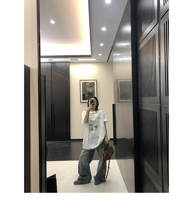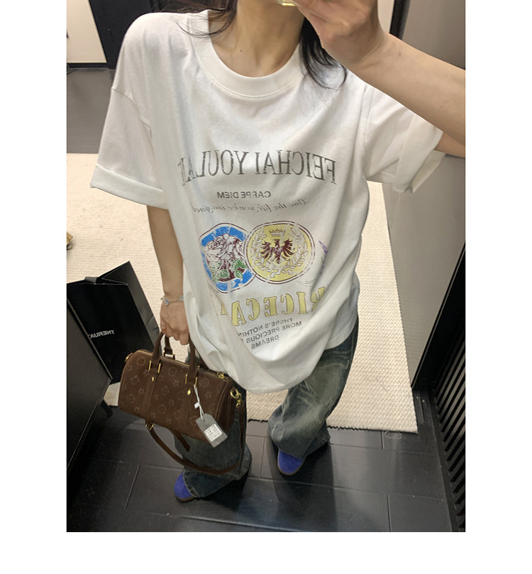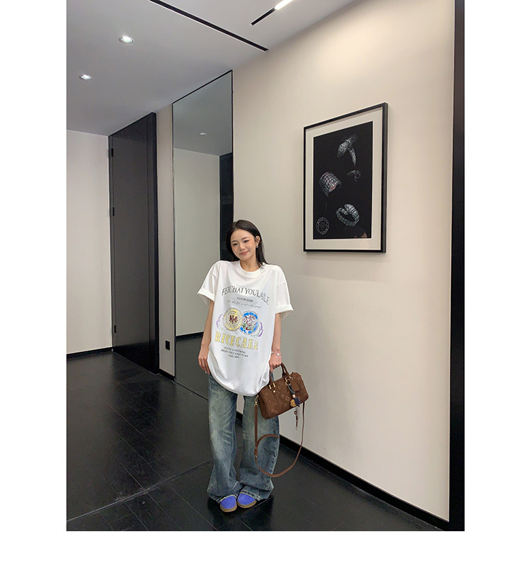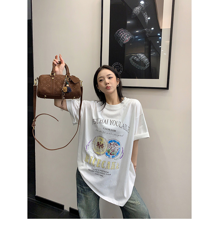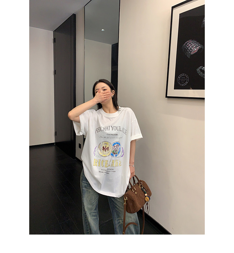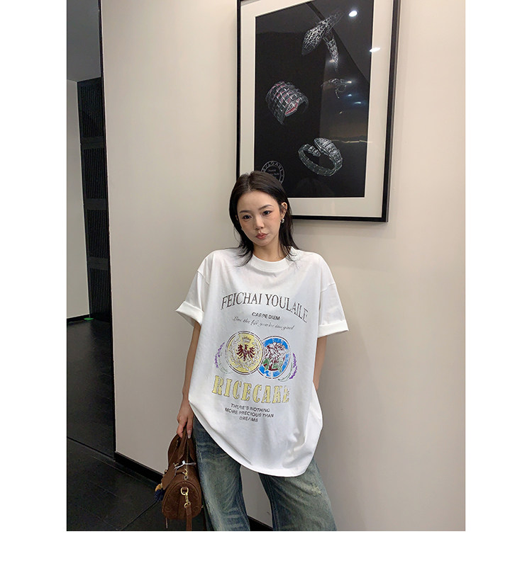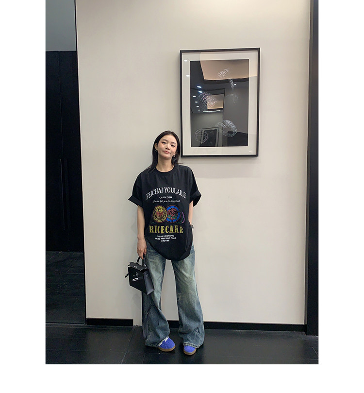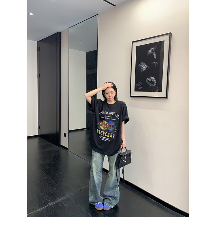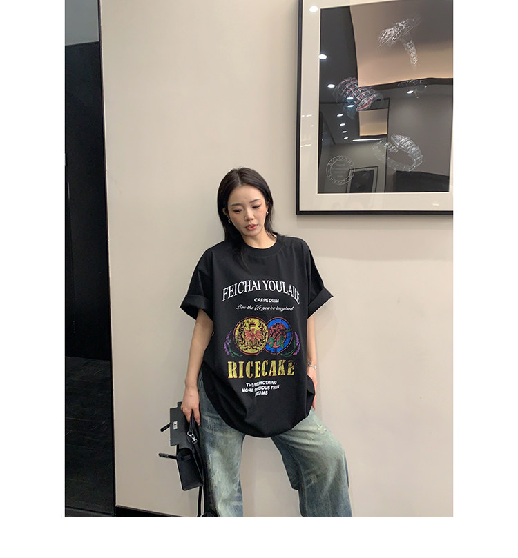 【トップス】デザイン感 カートゥーングラフィックTシャツ 薄手 半袖 オーバーサイズ ルーズシルエット 個性派カジュアル【FCシリーズ】